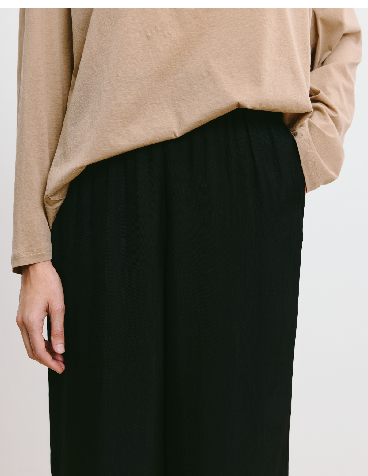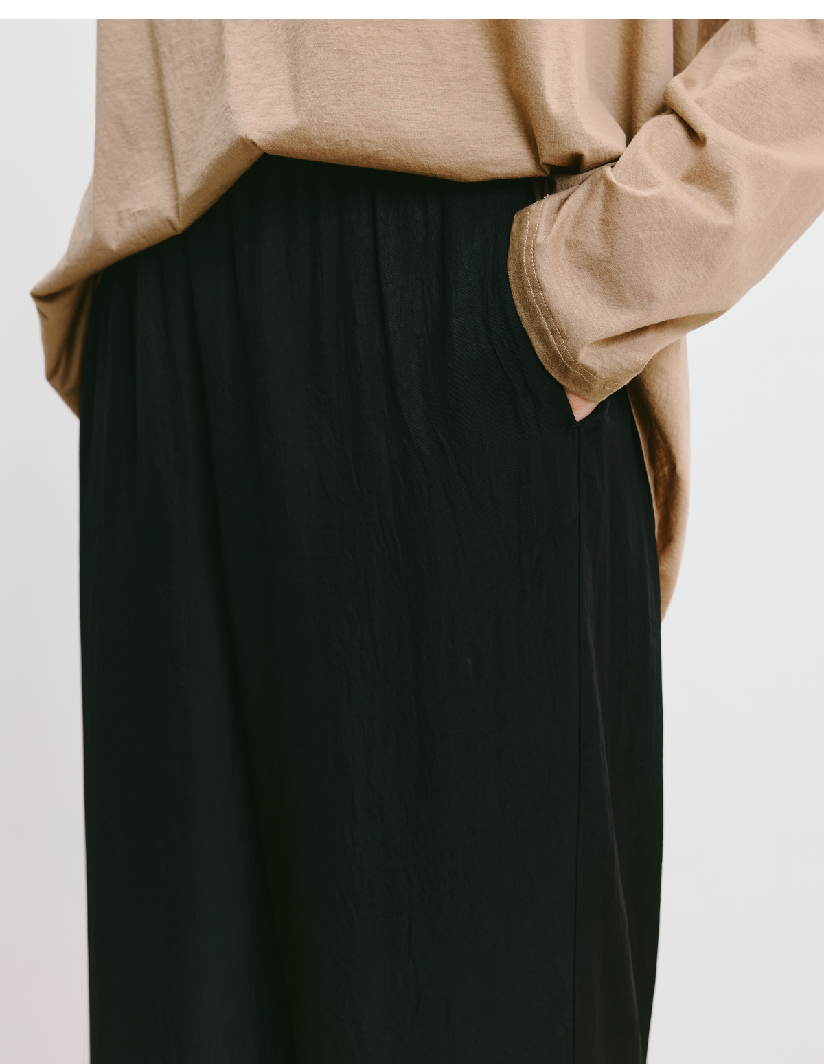 LIYIHAN织梦丨25春醋酸压褶肌理感半身裙女A摆黑色法式中长款长裙