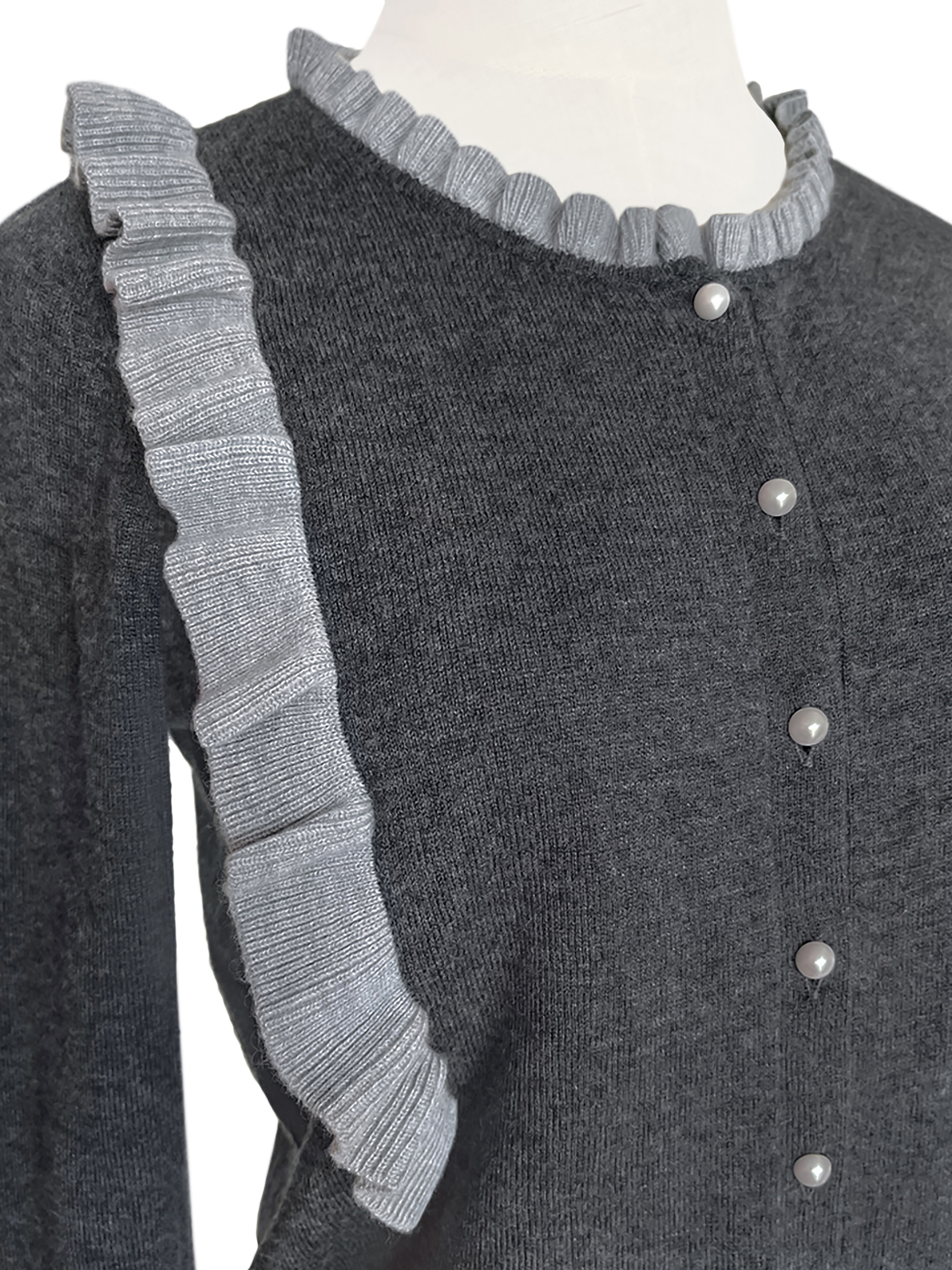 TYNVIE 细木耳边装饰羊绒混纺开衫 - 灰色 / 粉色 / 卡其色
