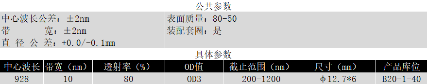 BP928/10K OD3@200-1200 T>80% Φ12.7*6 带通滤光片 (带套圈)