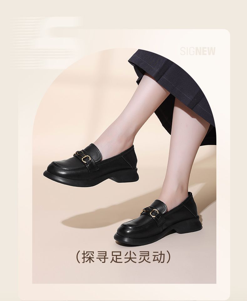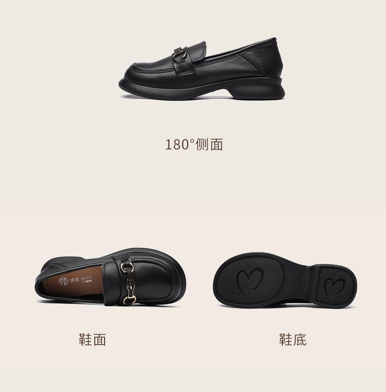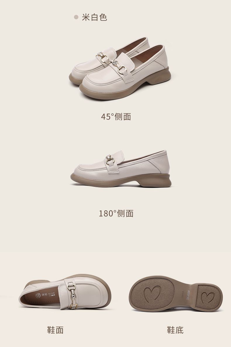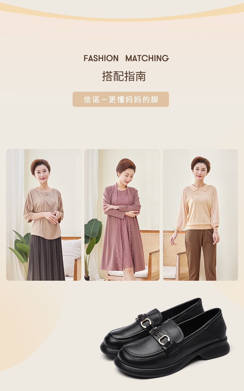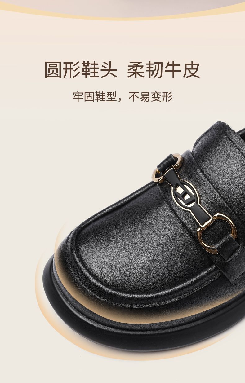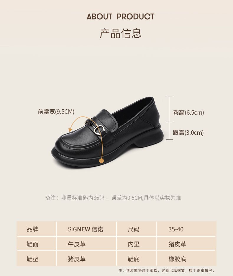 信诺真皮舒适女鞋2024新款秋季牛皮金属扣圆头小皮鞋中年妈妈单鞋X24Q118-36