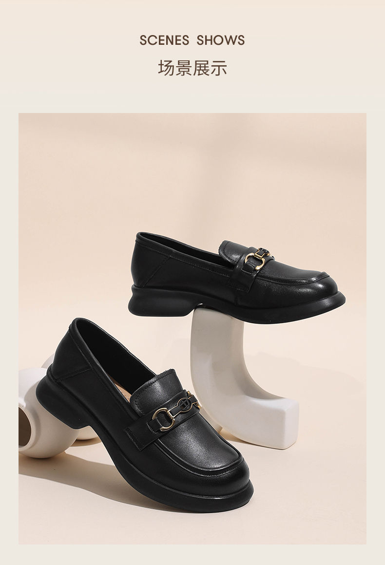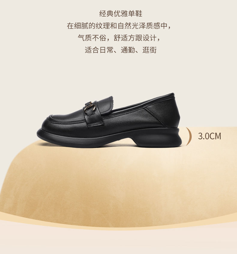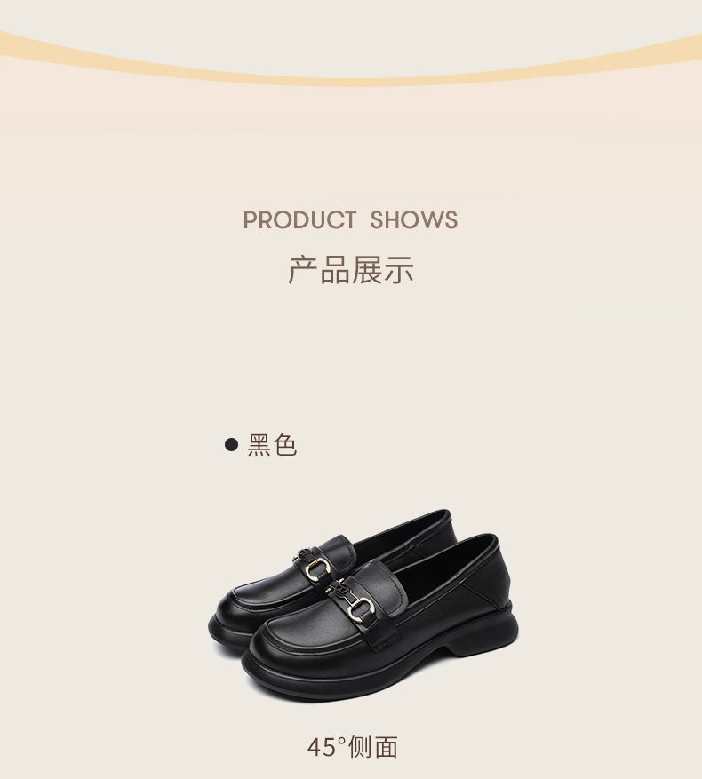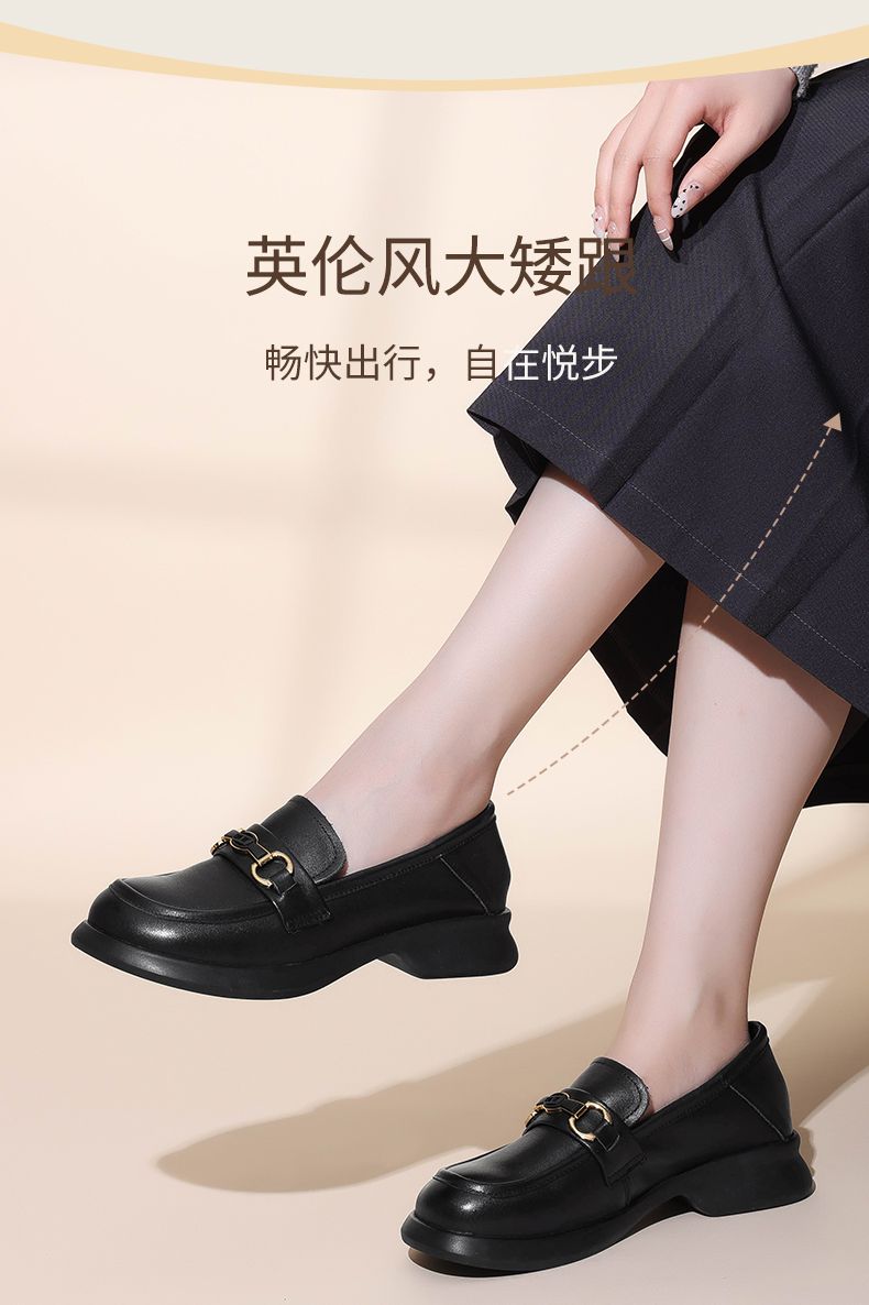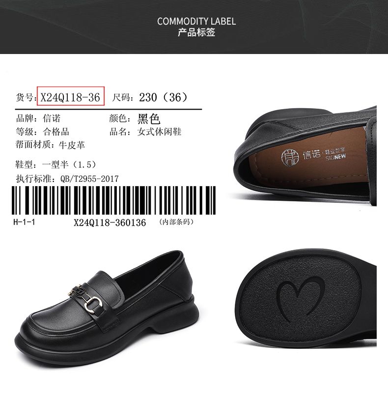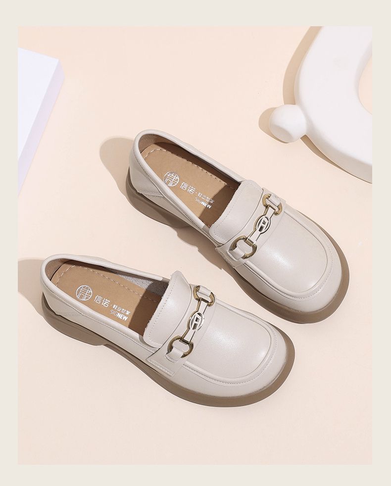 信诺真皮舒适女鞋2024新款秋季牛皮金属扣圆头小皮鞋中年妈妈单鞋X24Q118-36
