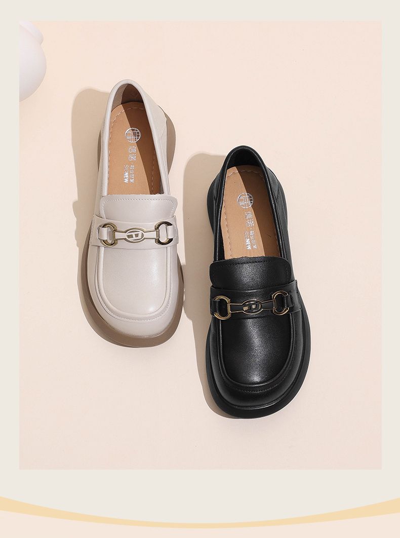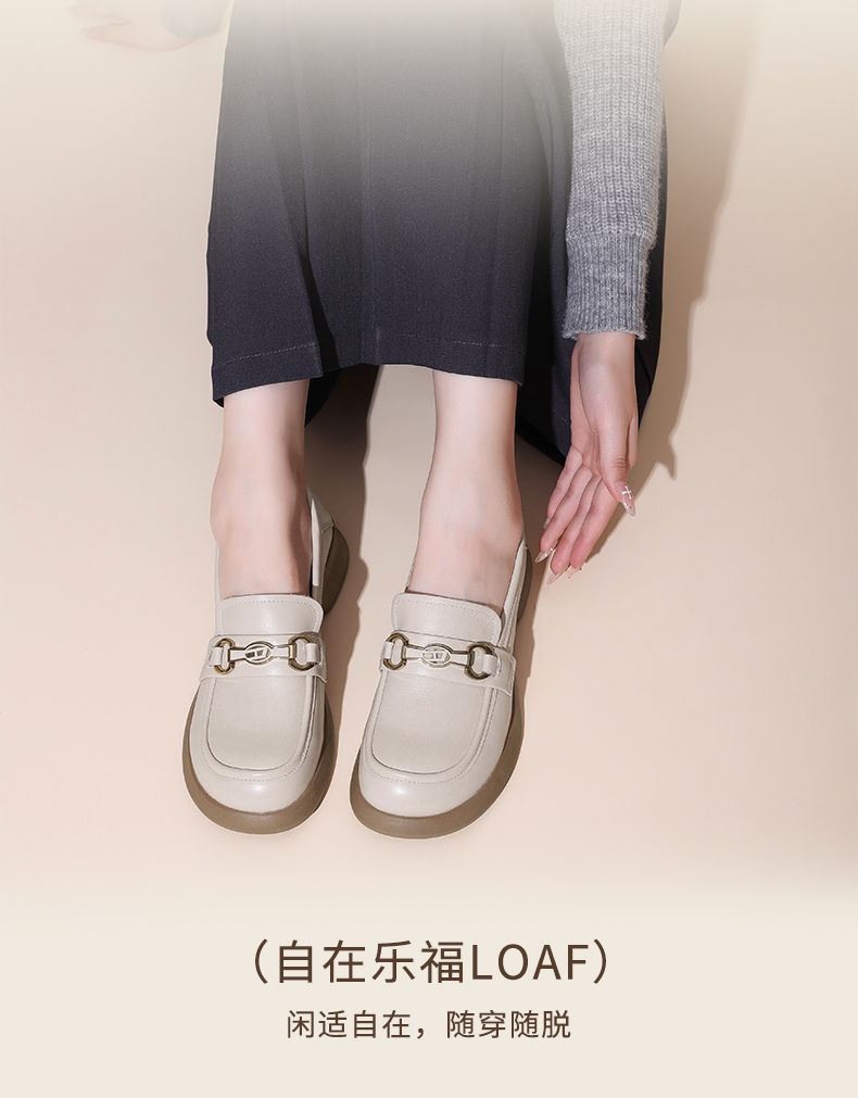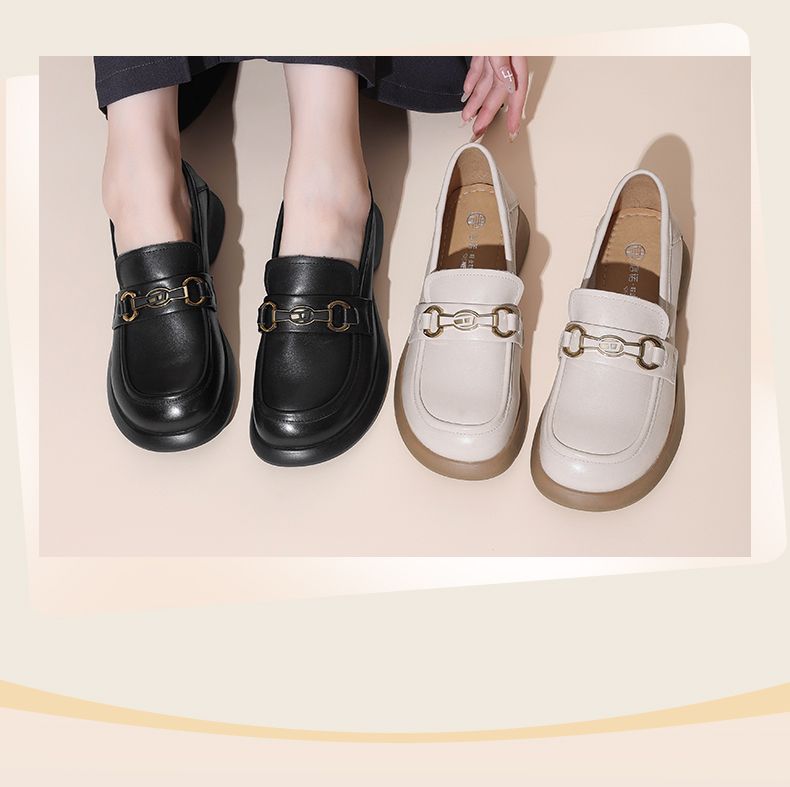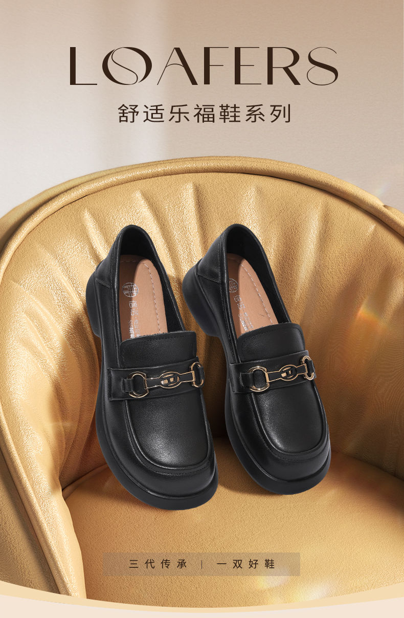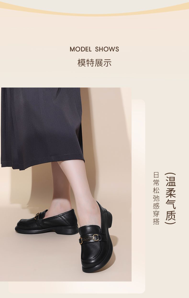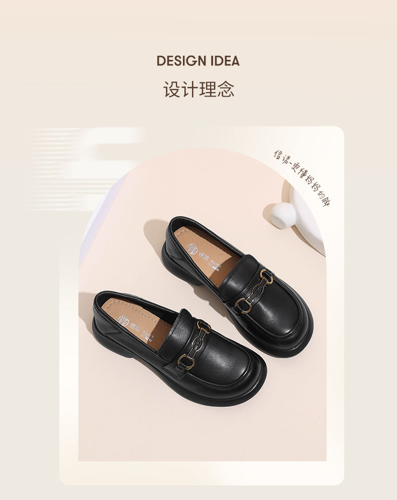 信诺真皮舒适女鞋2024新款秋季牛皮金属扣圆头小皮鞋中年妈妈单鞋X24Q118-36
