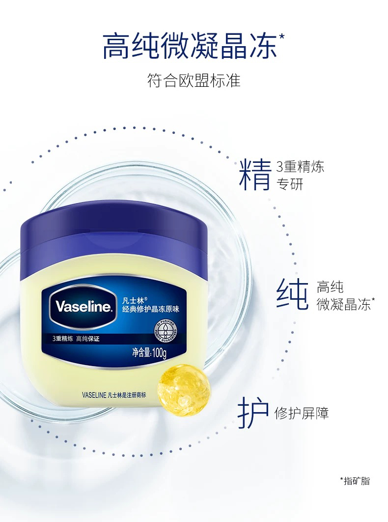 美国 Vaseline凡士林 经典锁水修护晶冻 100g (强效防干燥)