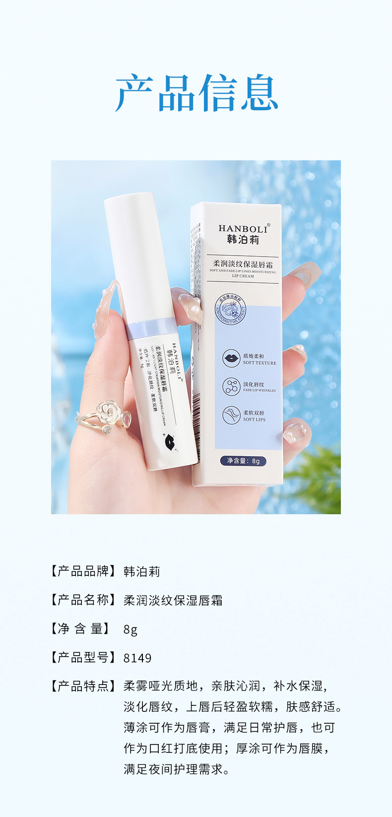秋冬男女通用柔润淡纹保湿唇霜保湿滋润淡化唇纹补水防干裂护唇