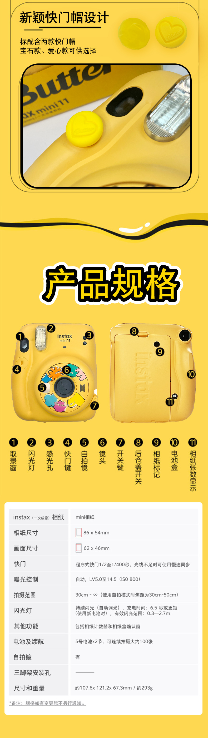 Fujifilm/富士 拍立得 Mini11 BTS+迷你花边胶片 套装