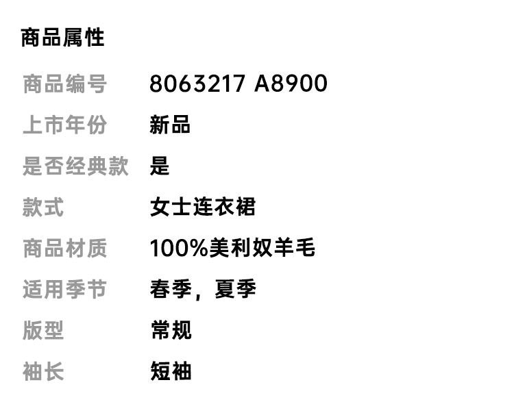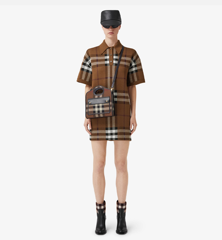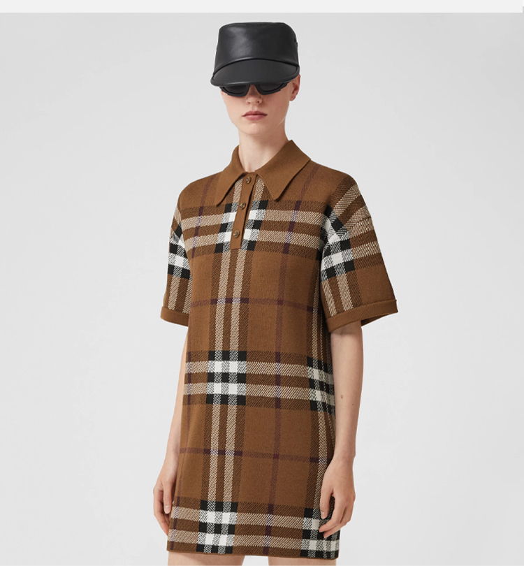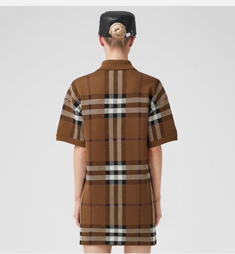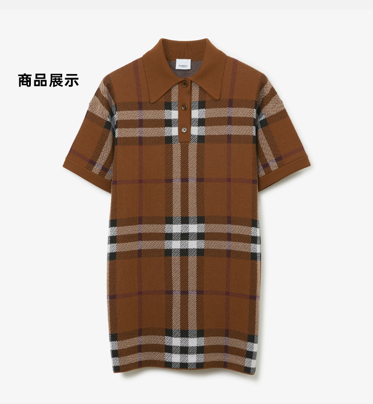 BURBERRY 巴宝莉 女士格纹羊毛提花 Polo 衫式连衣裙 格子 8063217 A8900