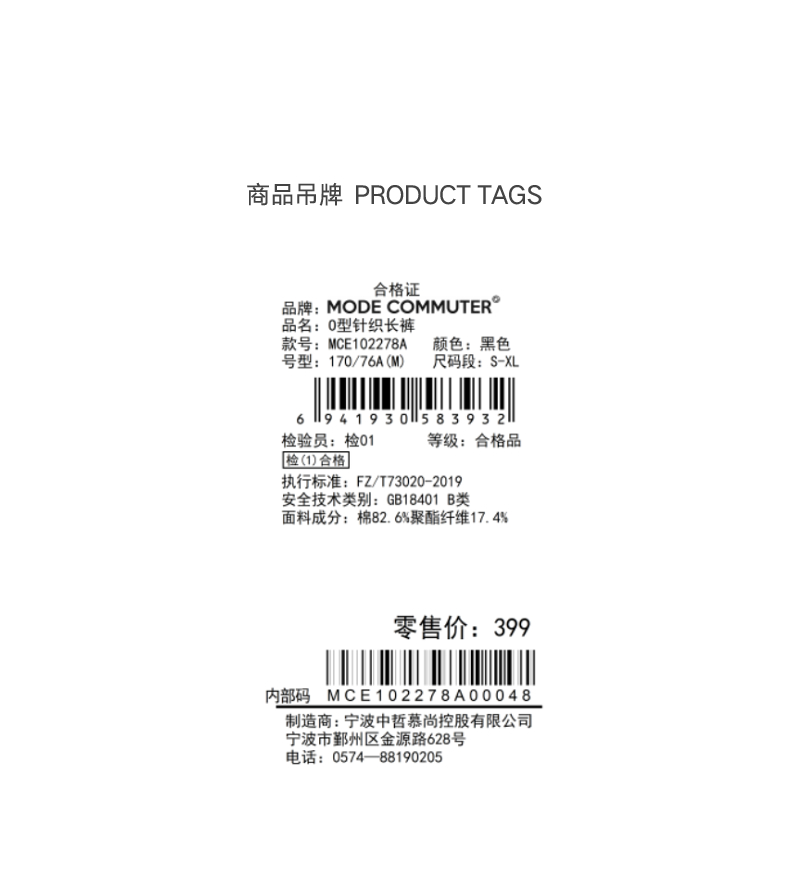 MC |MODE COMMUTER春季热卖通勤针织休闲长裤MCE102278A