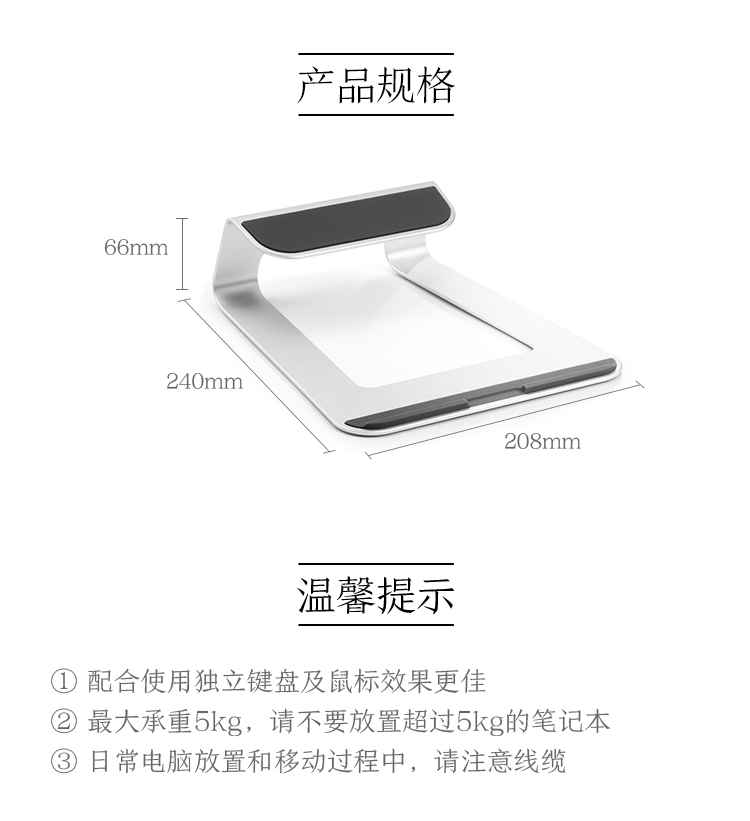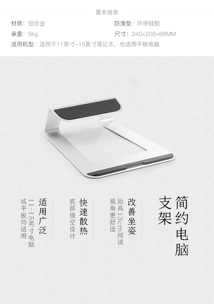 京东京造 铝合金笔记本散热支架 Macbook苹果电脑支架 笔记本电脑散热架 银色 适用于小米联想等笔记本