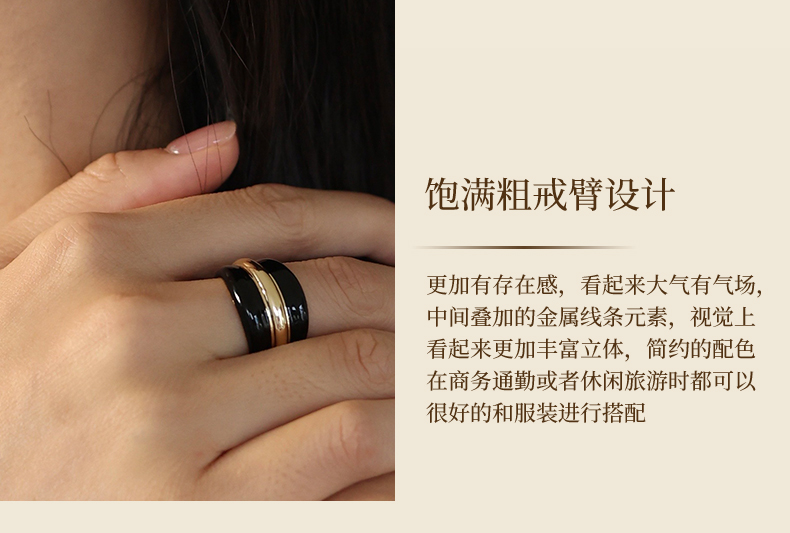 【音乐人孟慧圆同款】Art Nouveau新艺术时期 | 奥斯黑色珐琅戒指(港码15)