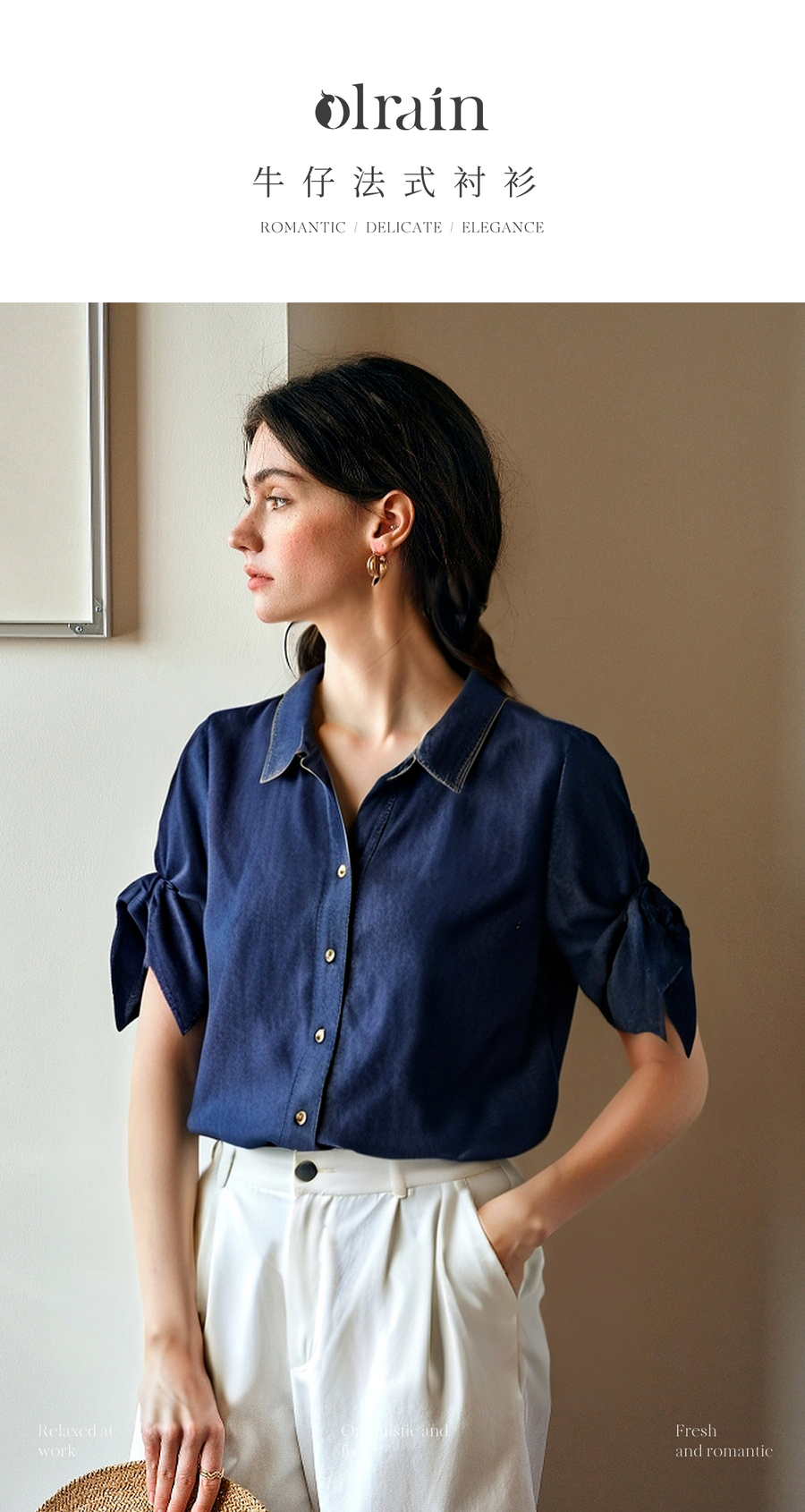 - “精致”是欧芮儿olrain品牌文化的核心,欧芮儿认为,精致的女人,不但要外在动人,更要内在迷人,内外兼修,有魅力、有气质、有内涵,自信而不自傲,优雅而不矫揉,自有万种风情而不轻浮,更不故作矜持。