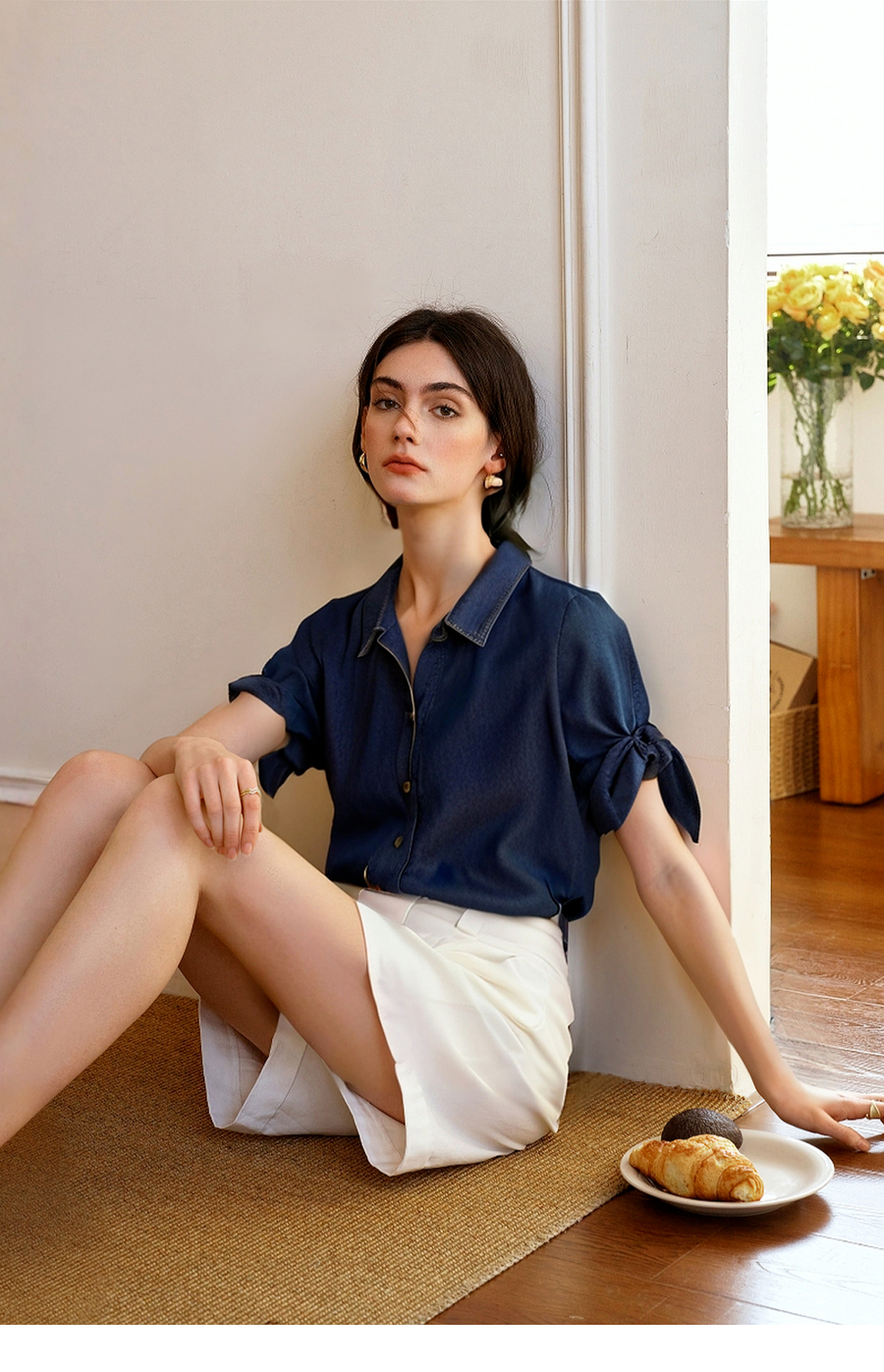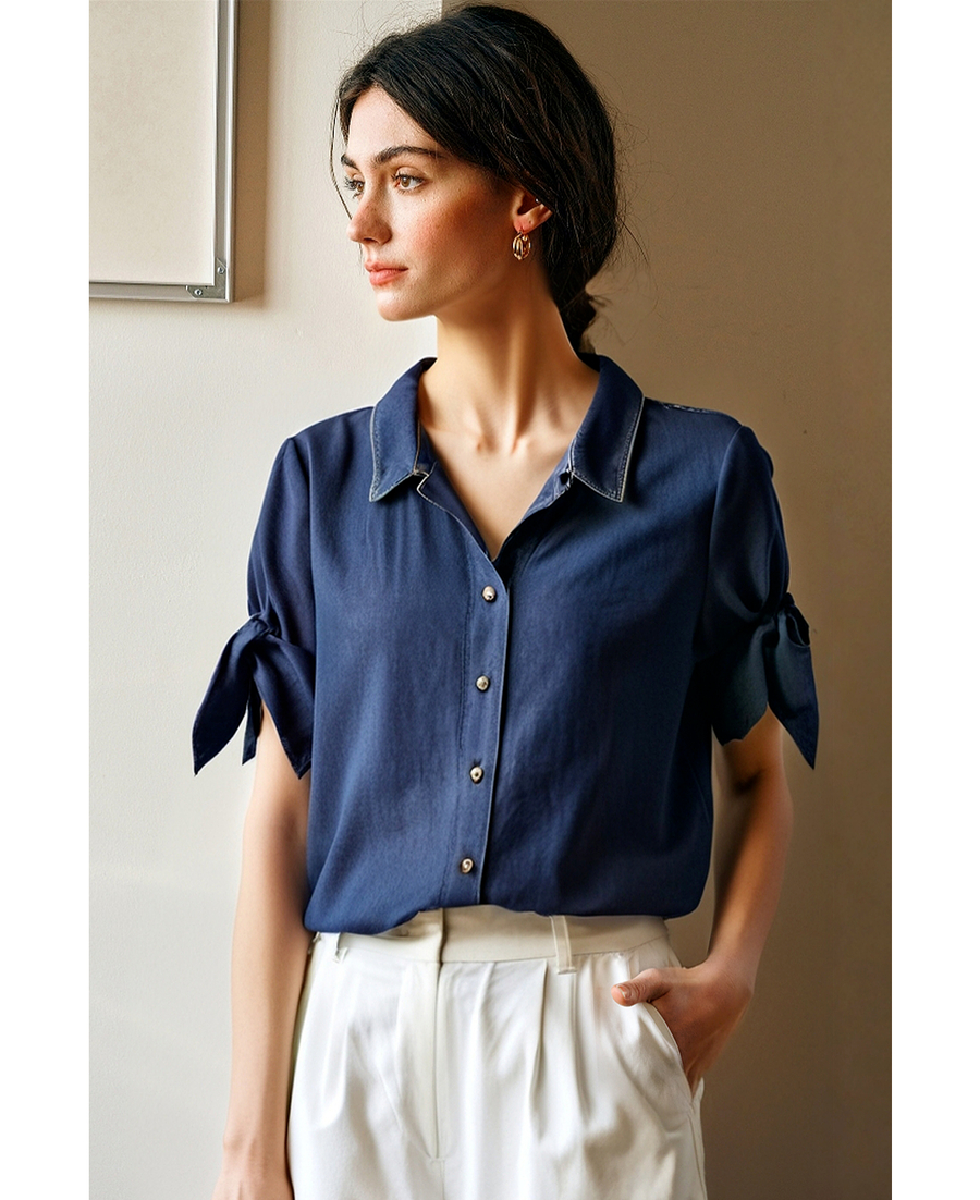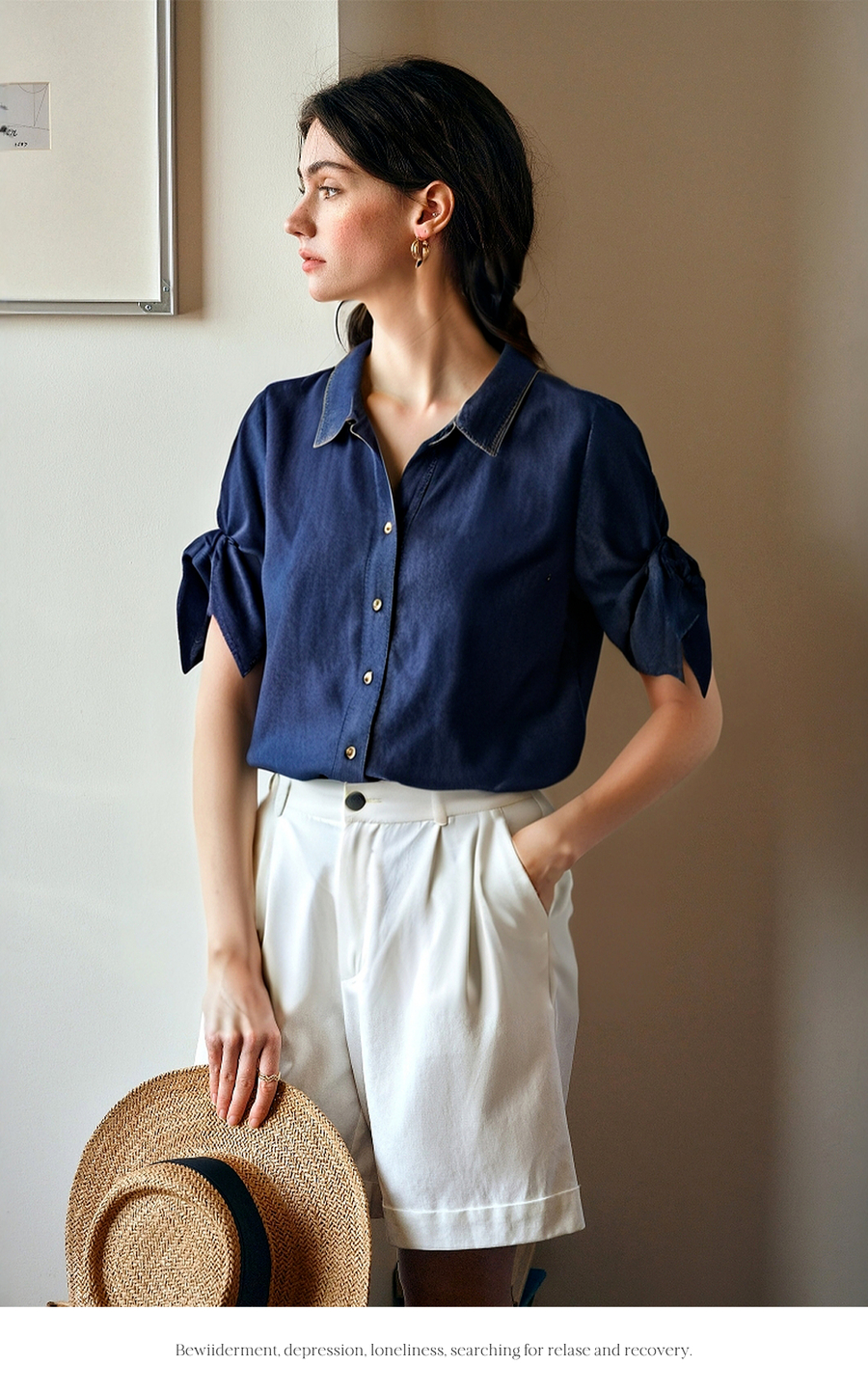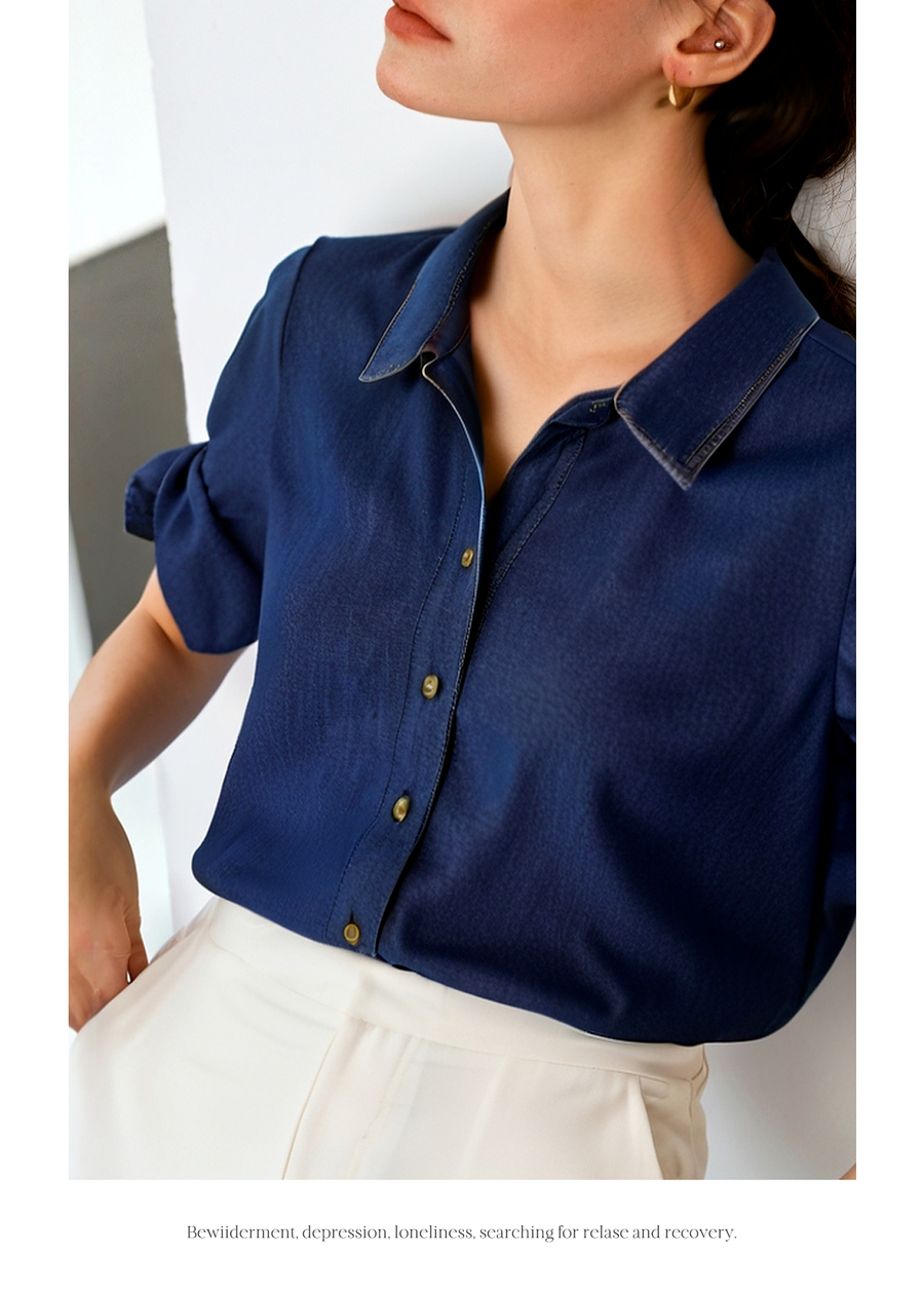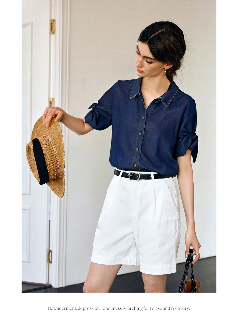 Olrain欧芮儿牛仔衬衫女2025春季新款复古港风翻领外套小个子宽松