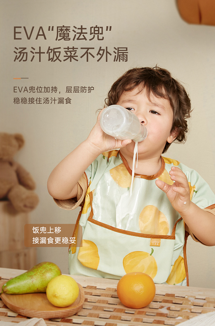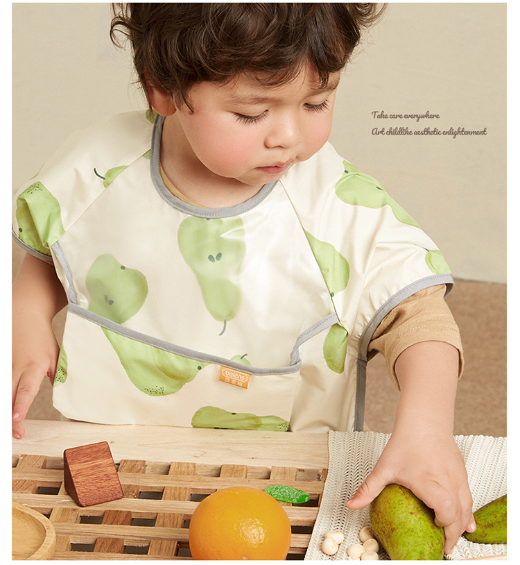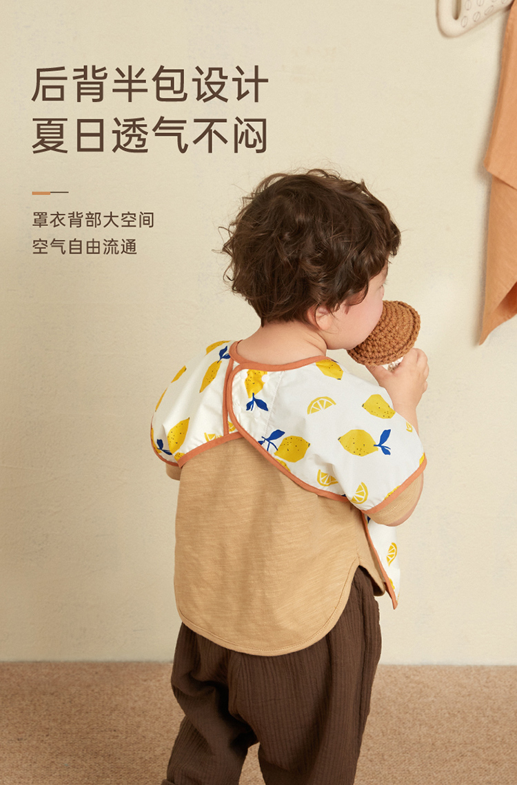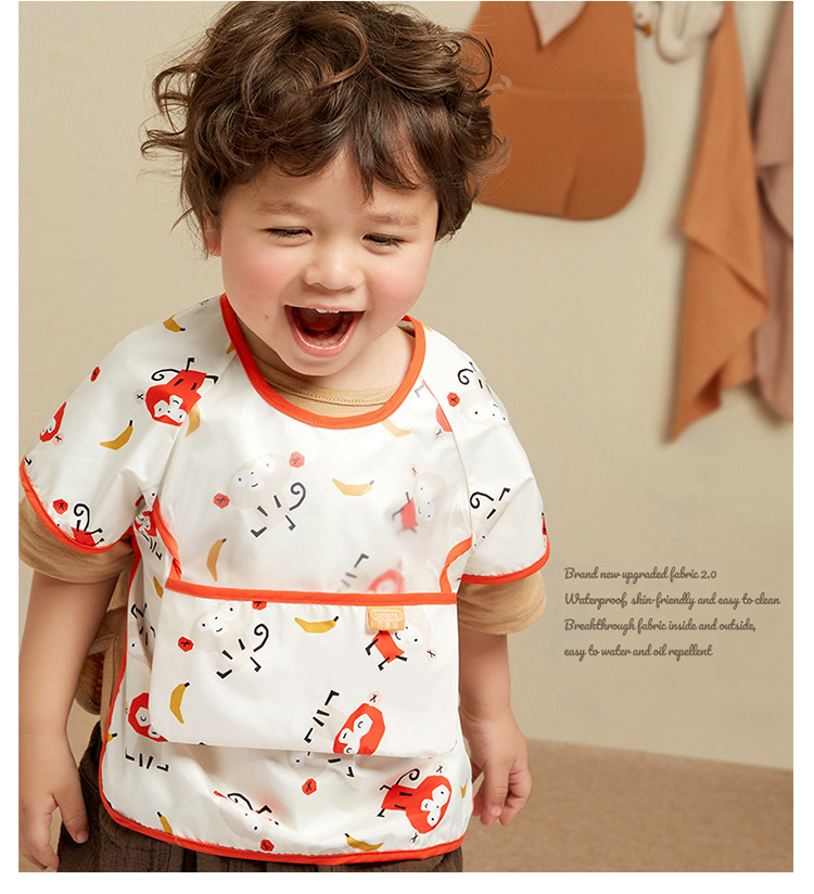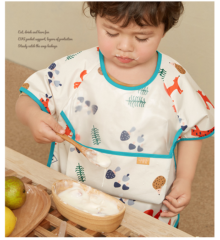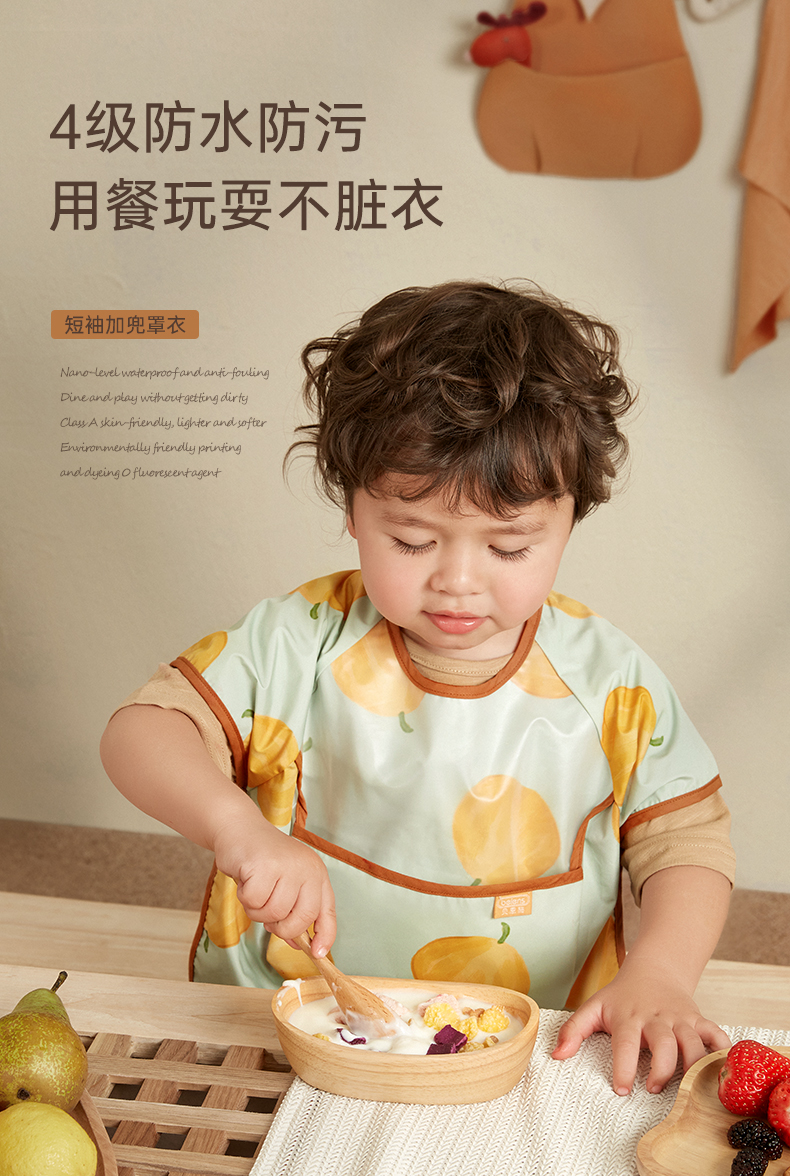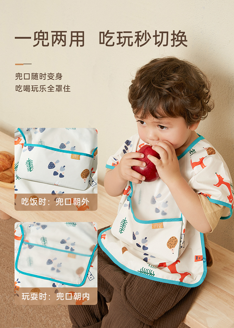 贝恩施儿童短袖双层防护防水防污罩衣婴儿宝宝吃饭神器围兜罩衣