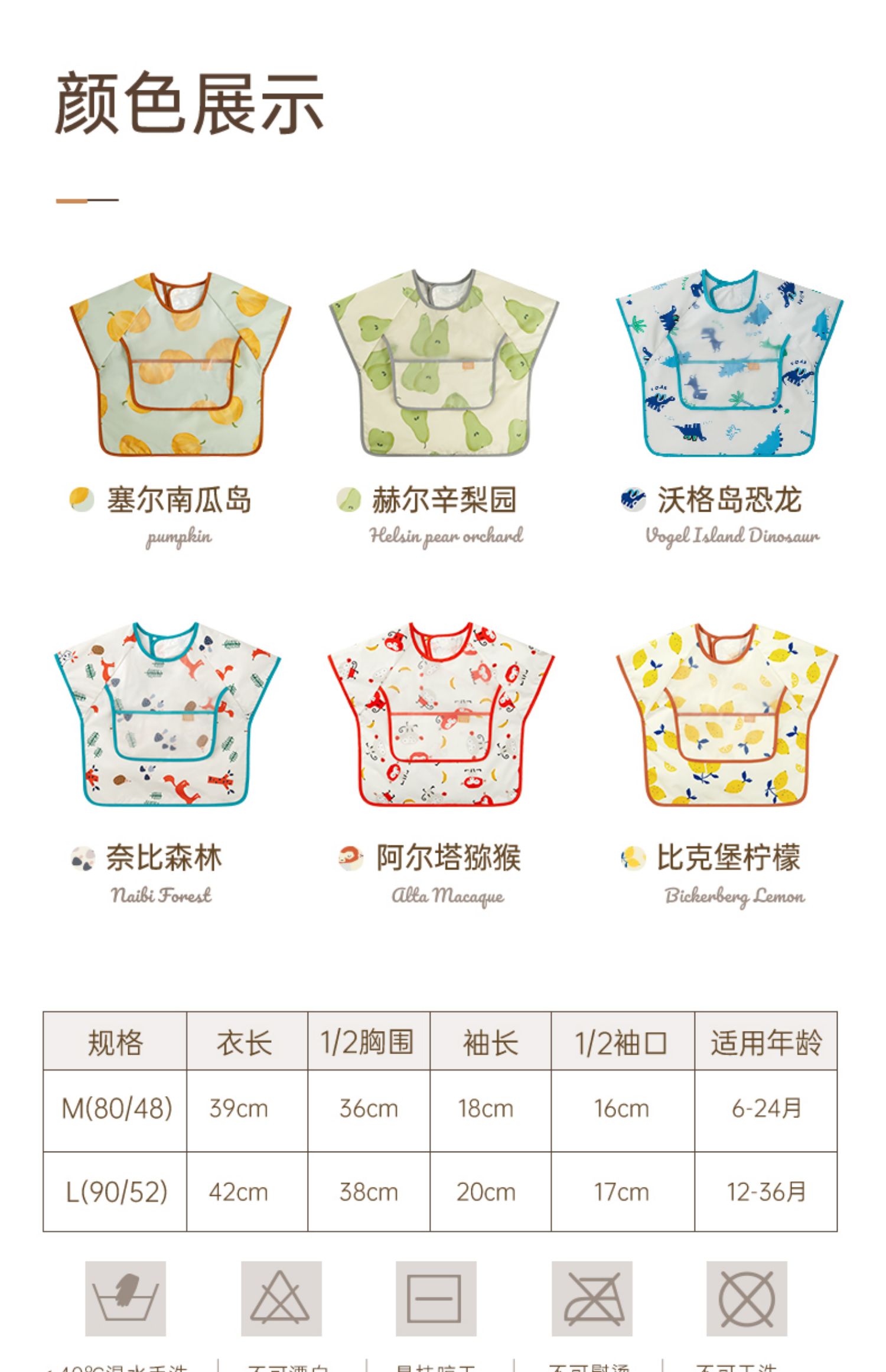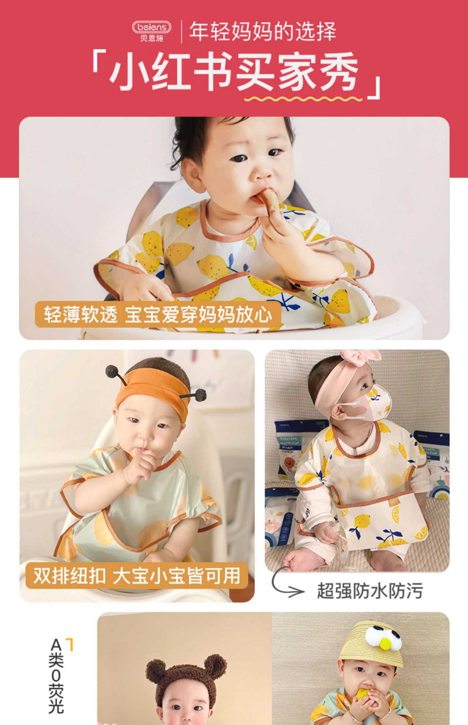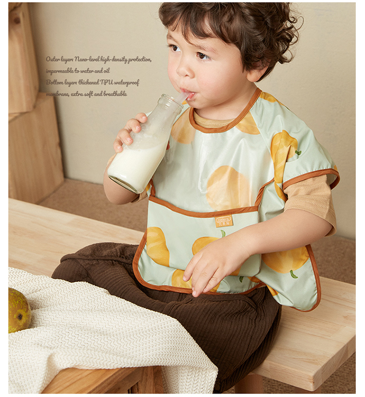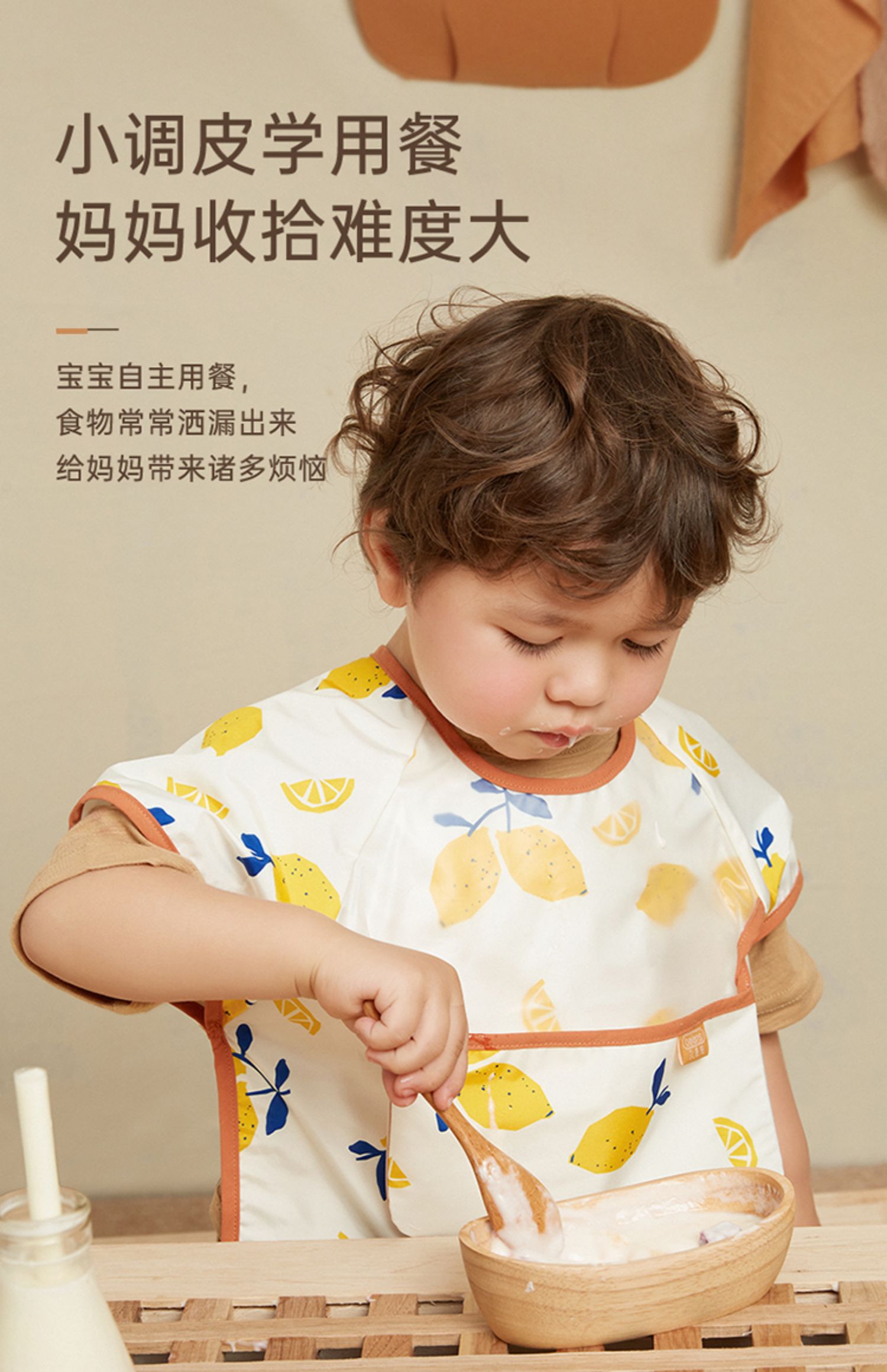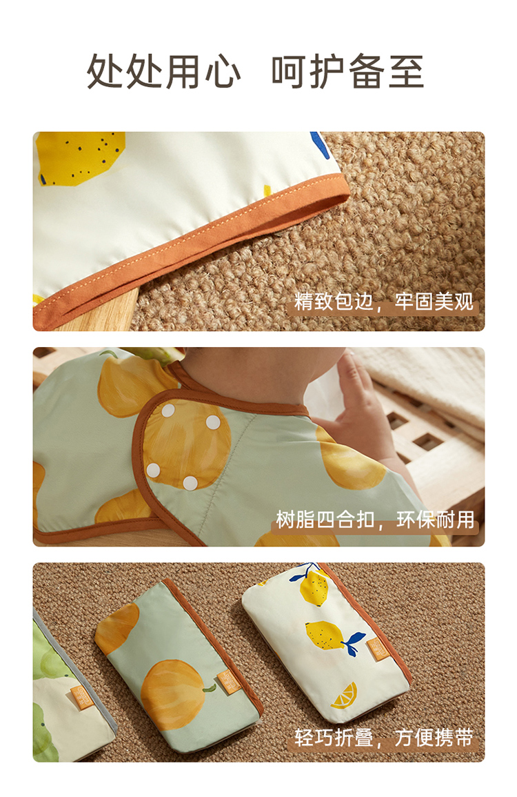 贝恩施儿童短袖双层防护防水防污罩衣婴儿宝宝吃饭神器围兜罩衣