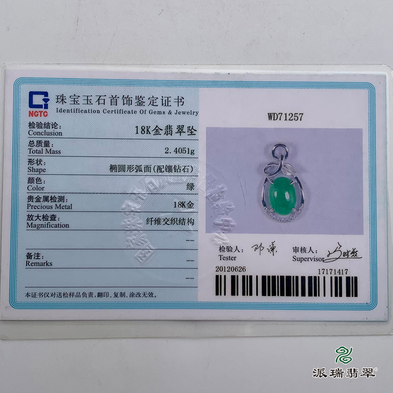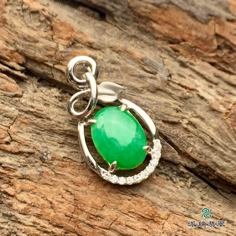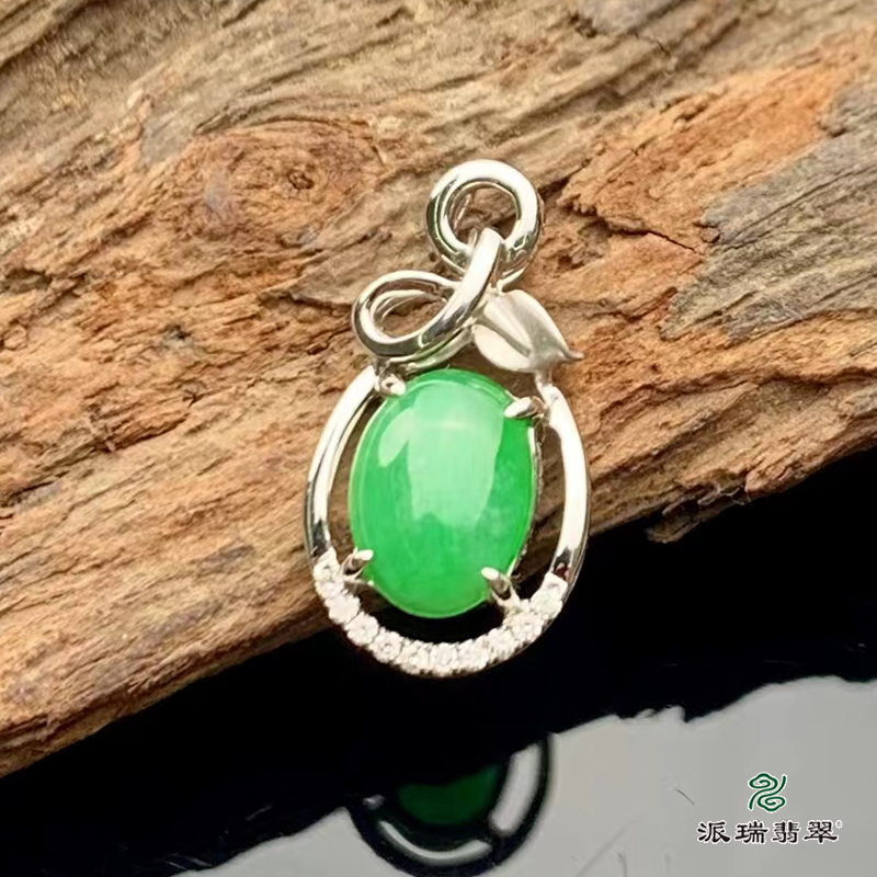 派瑞翡翠 18k金翡翠挂件 糯冰种 绿色