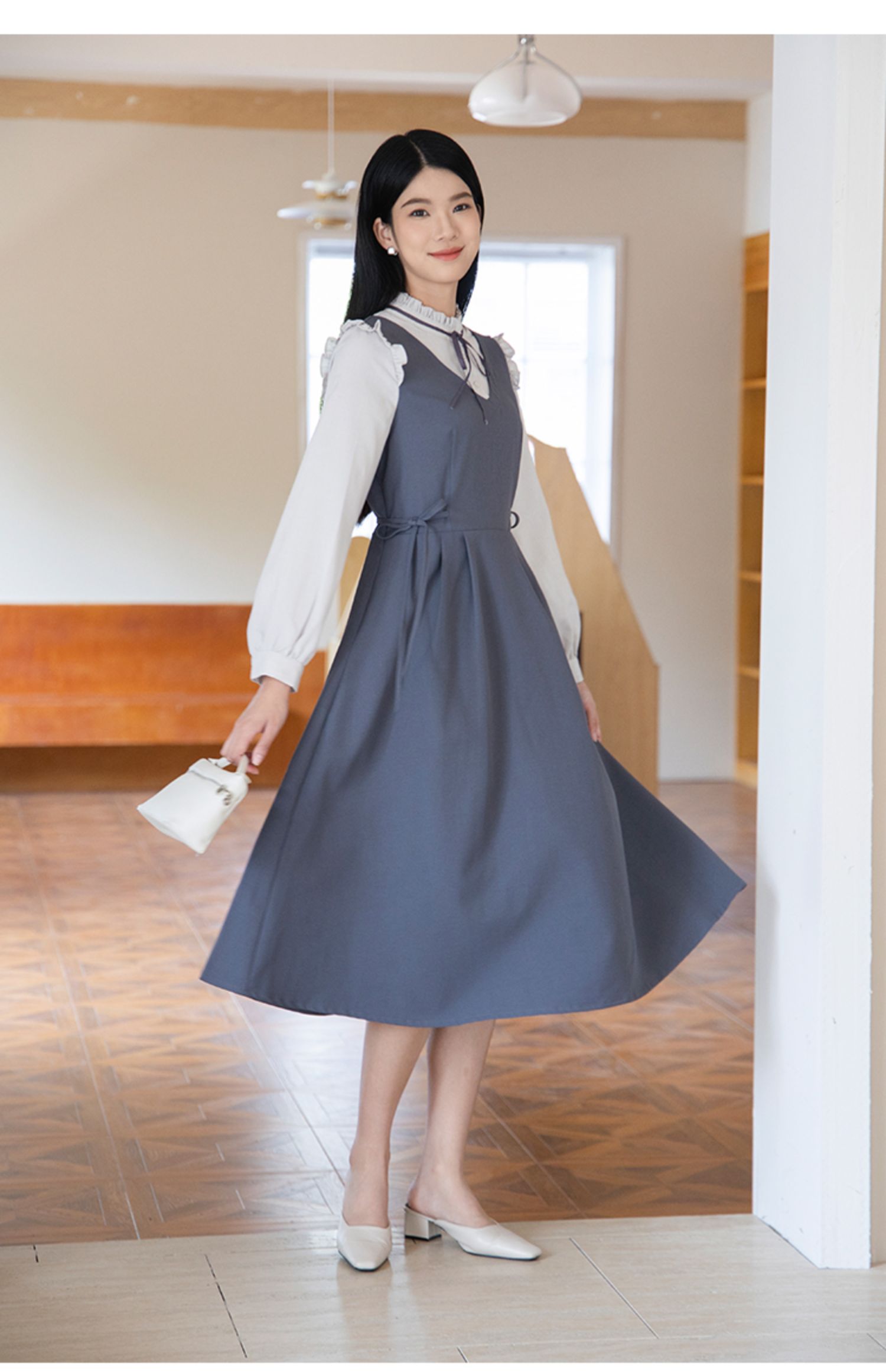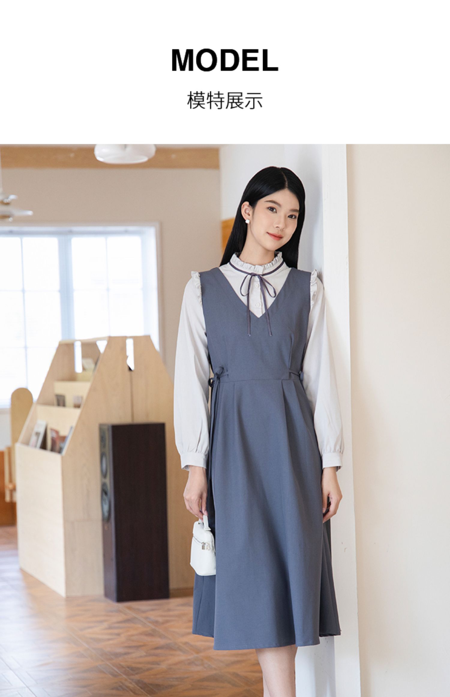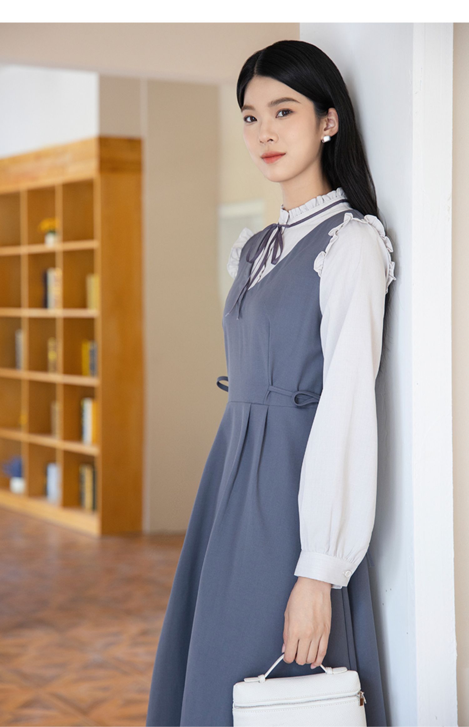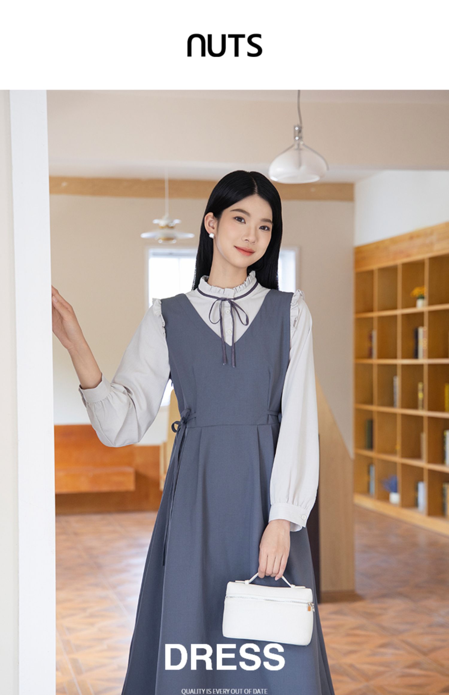 NUTS2023秋季新款花边领时尚气质学院风长袖连衣裙女4381002A1