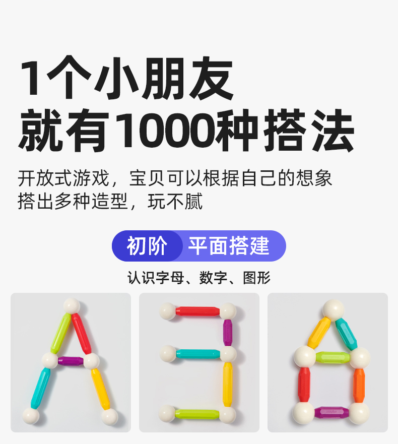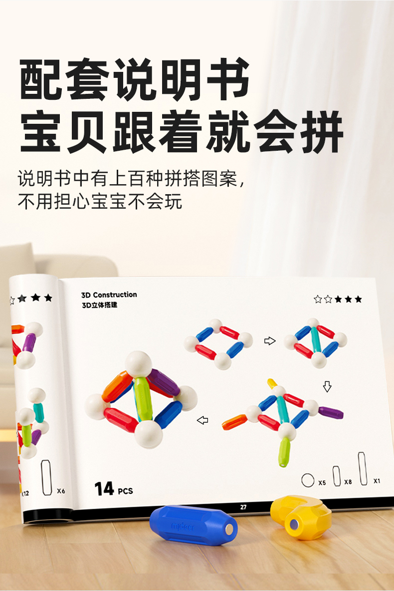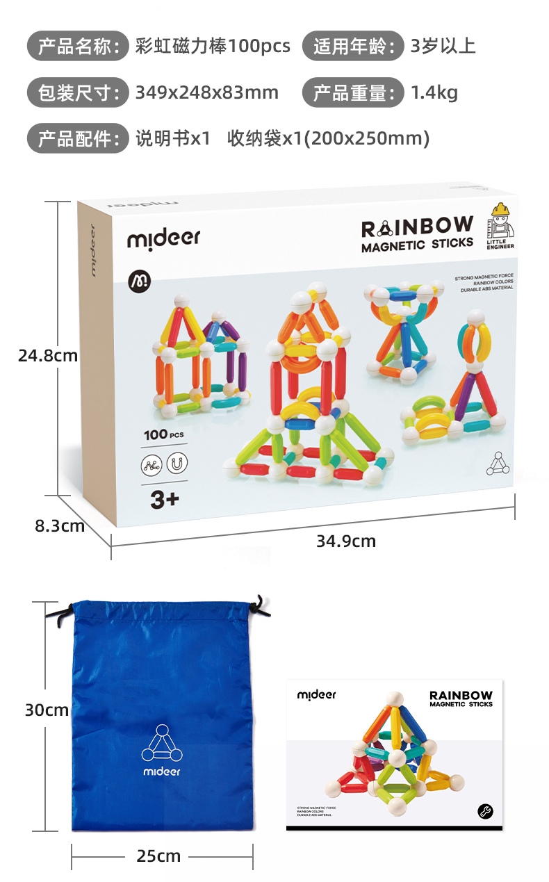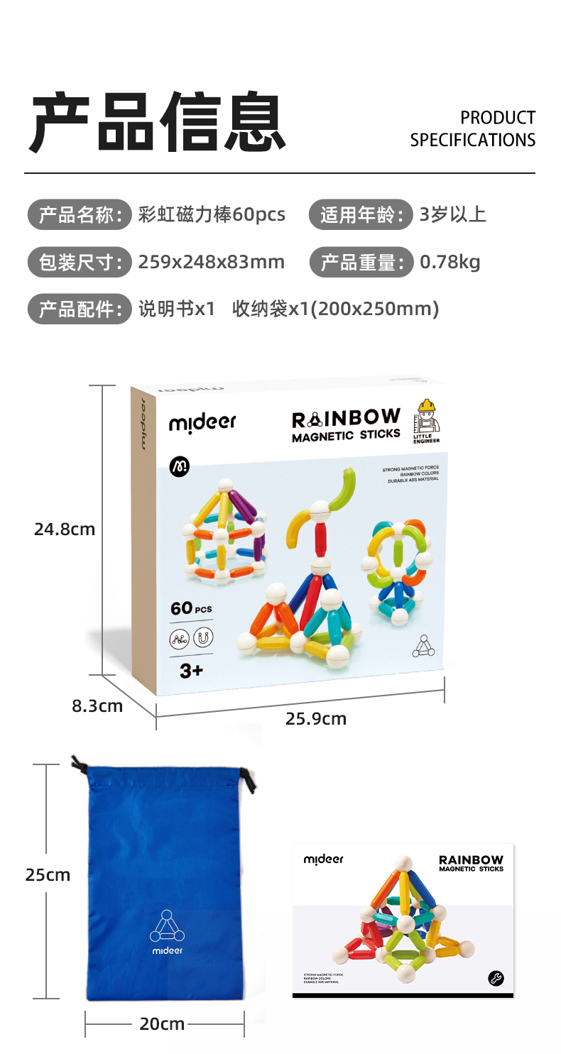 mideer弥鹿磁力棒儿童益智玩具磁铁吸铁石女男孩磁力片磁性积木