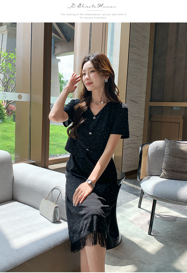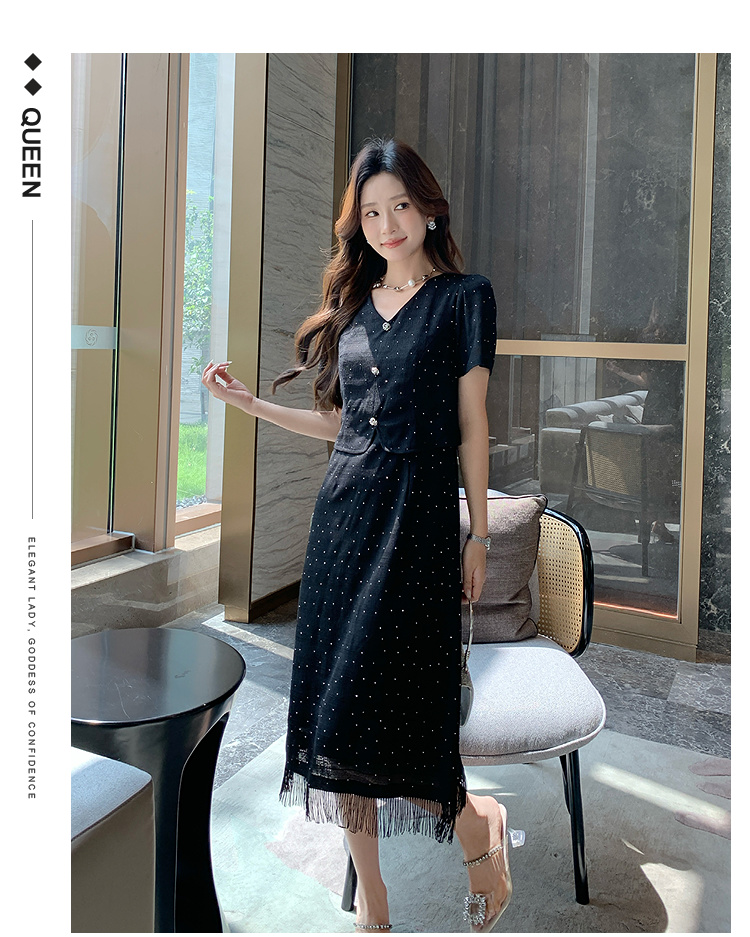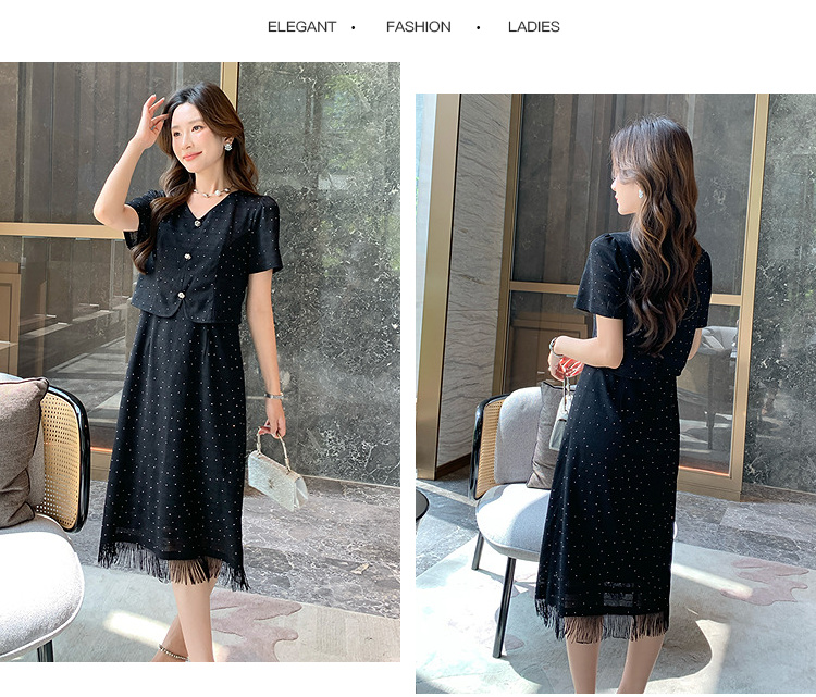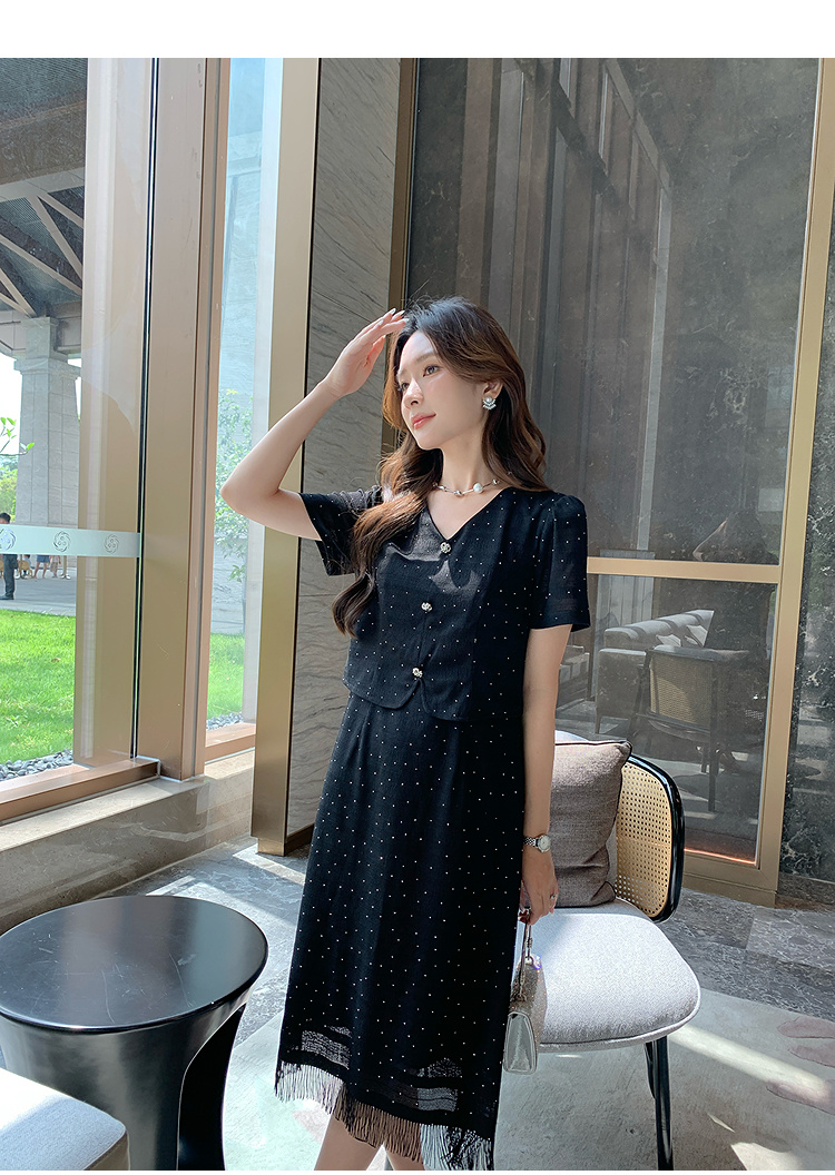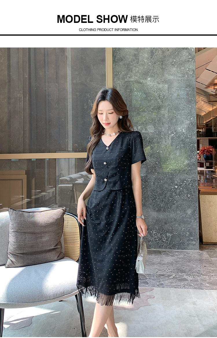 奢姿大码女装2025夏季气质V领流苏连衣裙胖妹妹假两件时尚裙子9952892998
