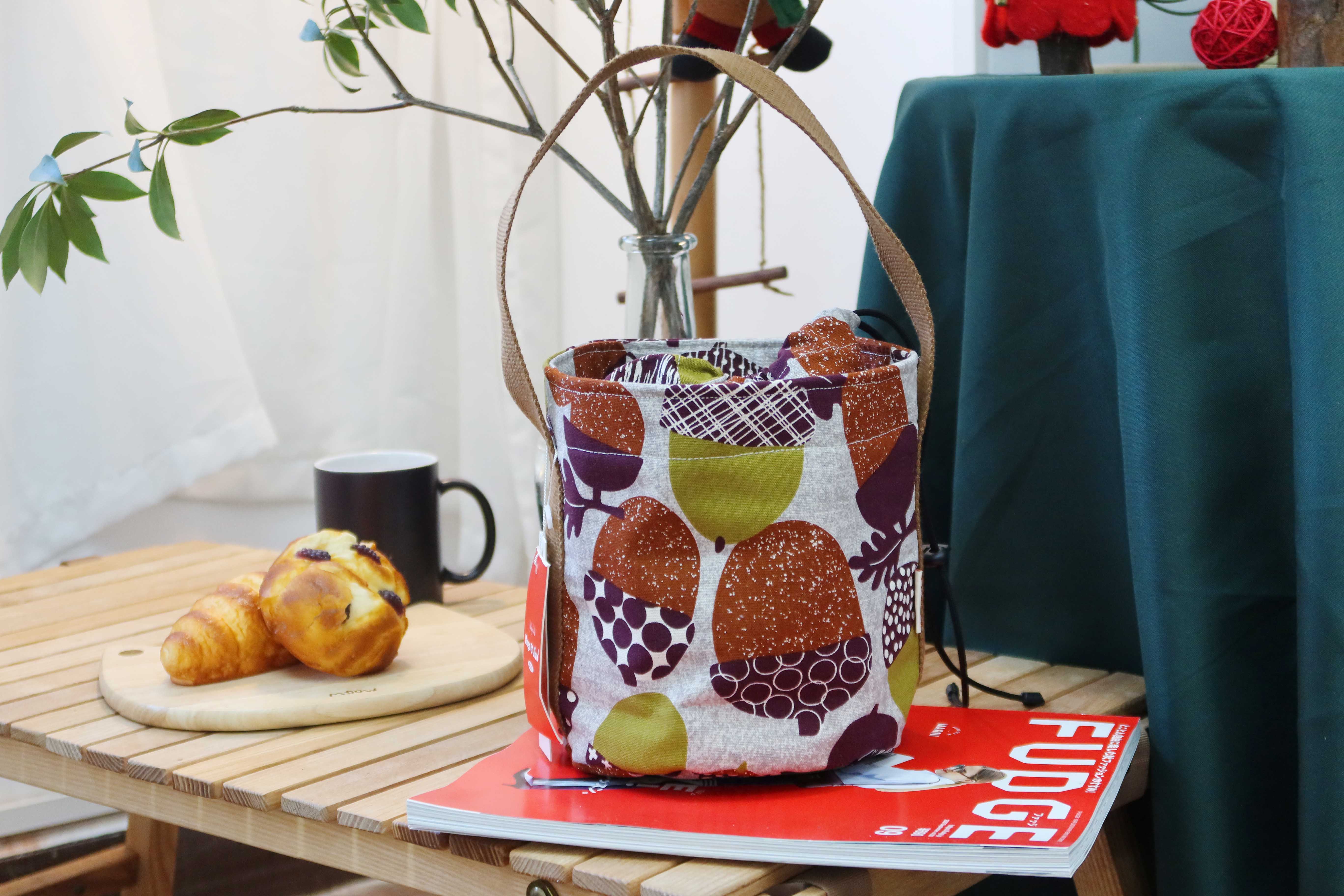 HUJI祤集圆桶手提包插画大松果