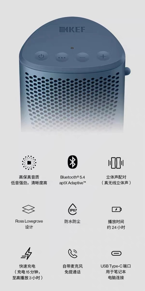 KEF Muo全新款便携蓝牙音响无线户外音箱有源防水桌面低音炮