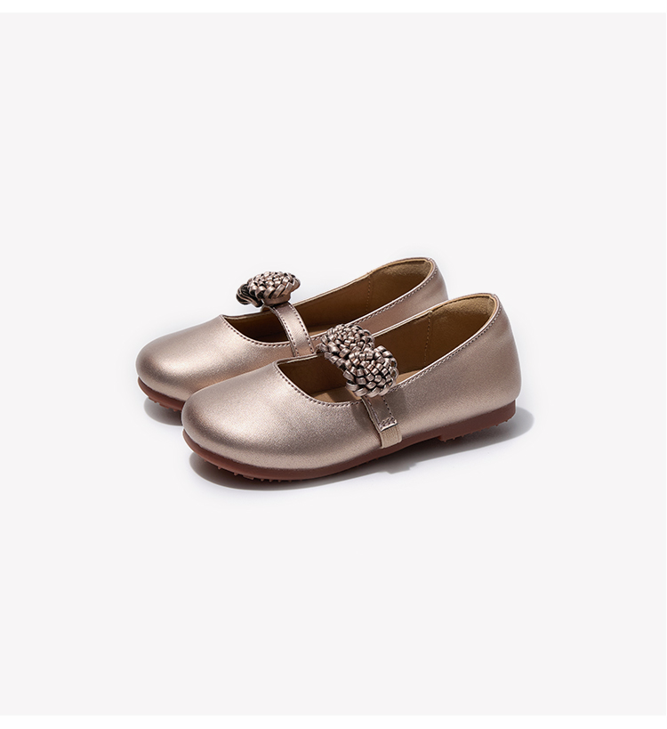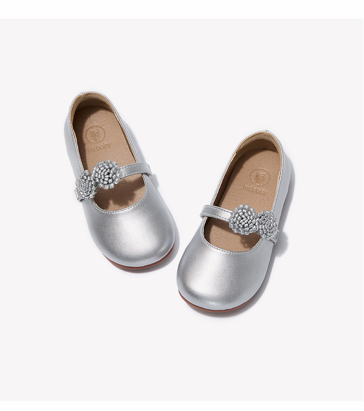 MR<女童水晶公主鞋花朵春秋新款小女孩软底演出闪亮皮鞋