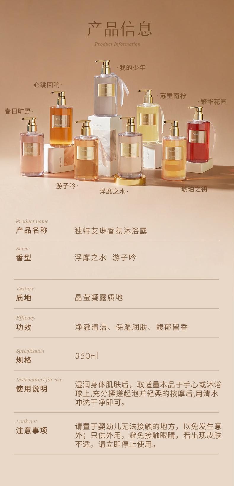 独特艾琳香氛保湿沐浴露-浮靡之水(350ml/瓶)