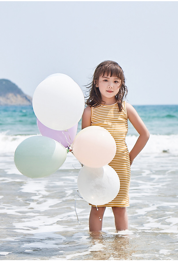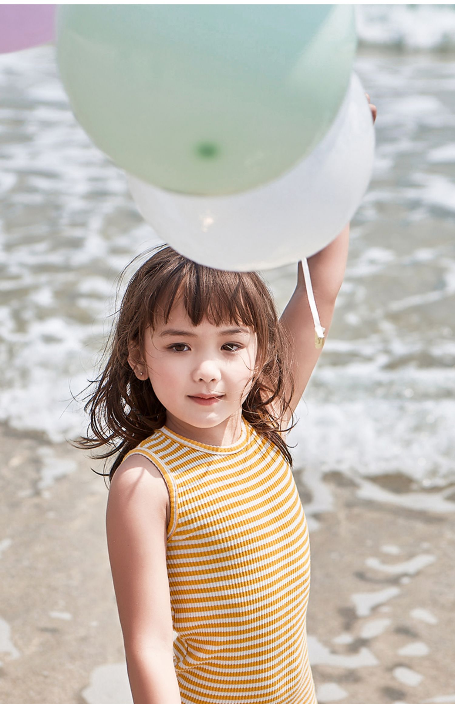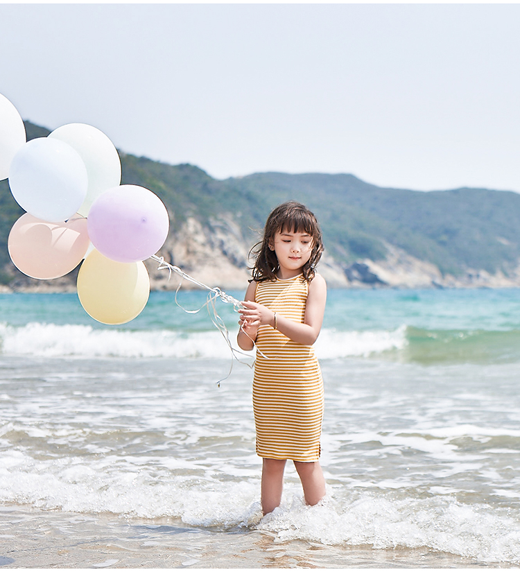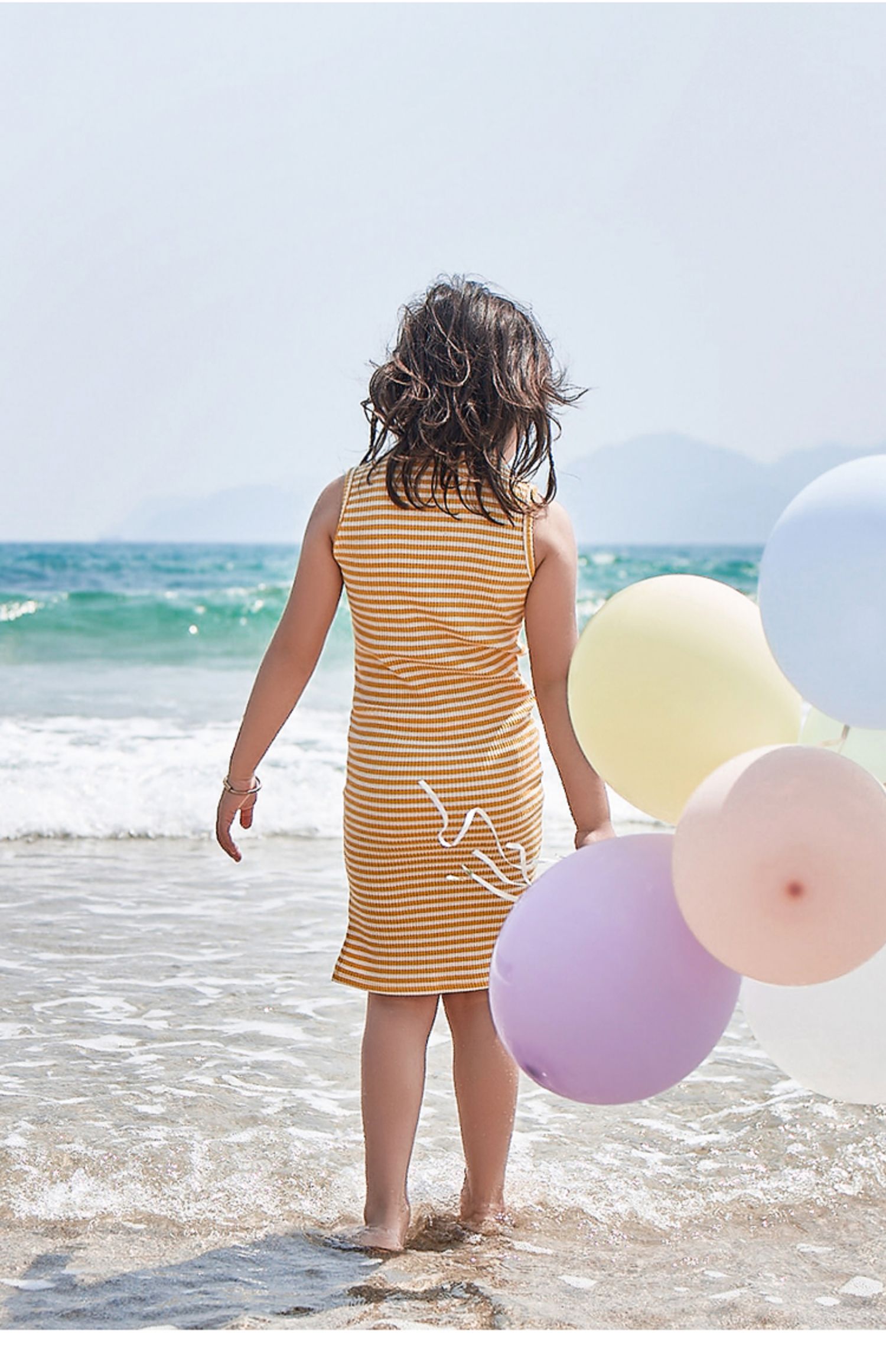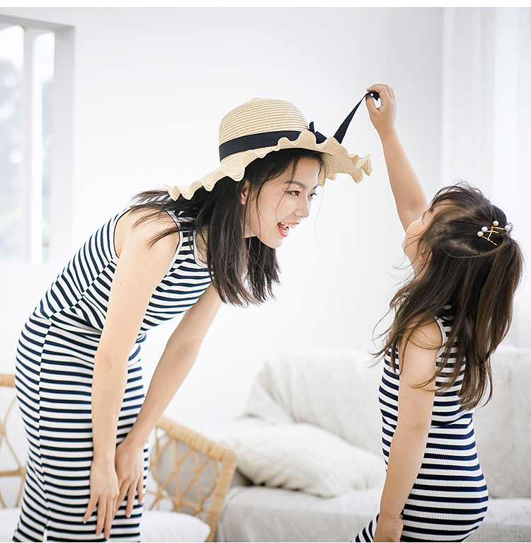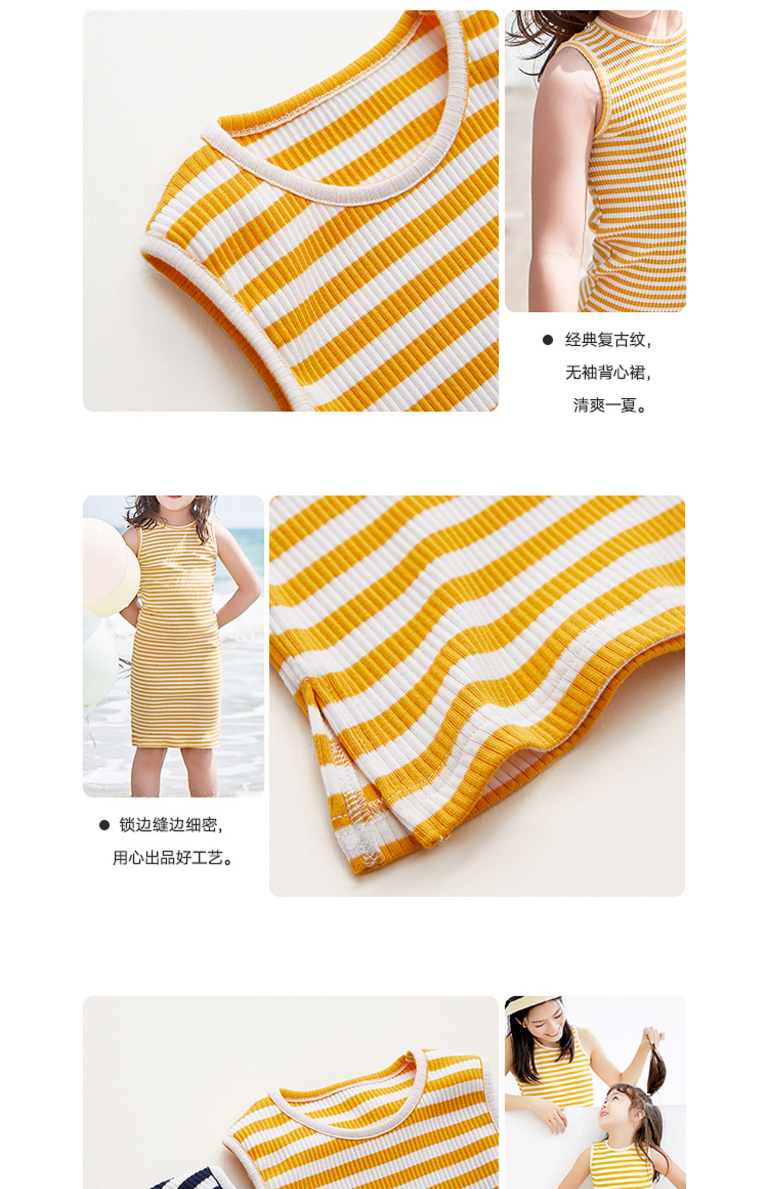 littletime童装夏季新款女童亲子装长裙无袖简约条纹连衣裙