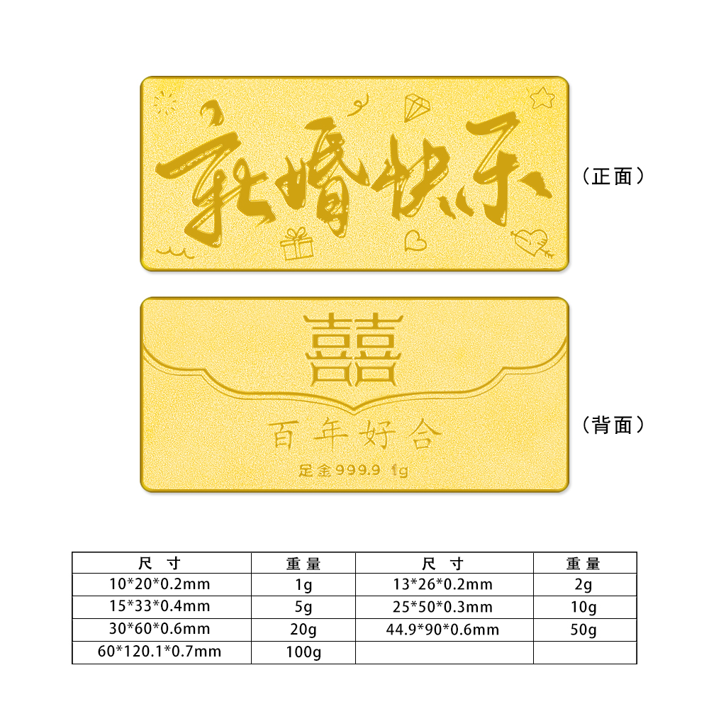 【限时克减128元】【1克】足金999.9 #婚庆 实心1g新婚快乐金条投资金纯黄金双喜百年好合金条(配亚克力盒)(YDJT00058)(预售产品下单后不退款不退货不换货不补差价)