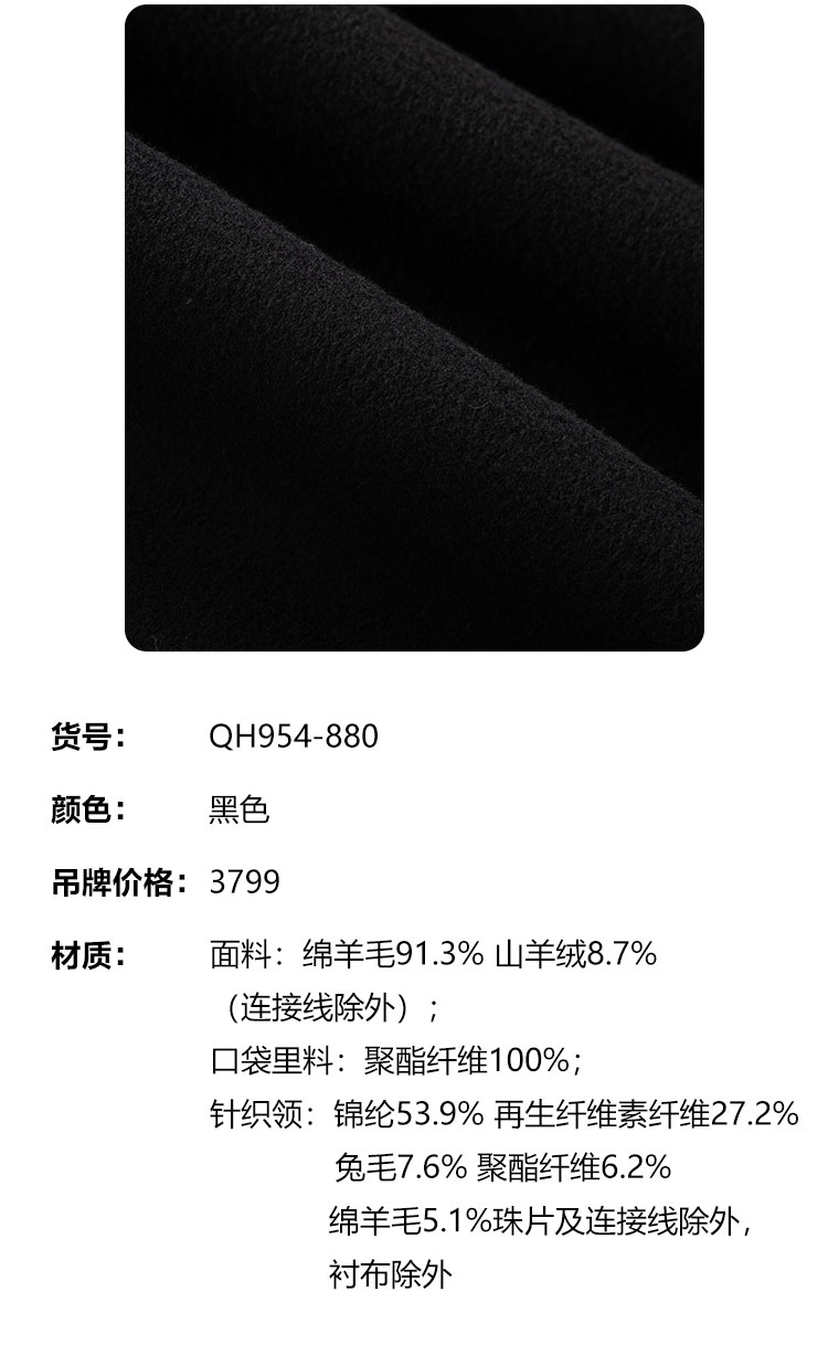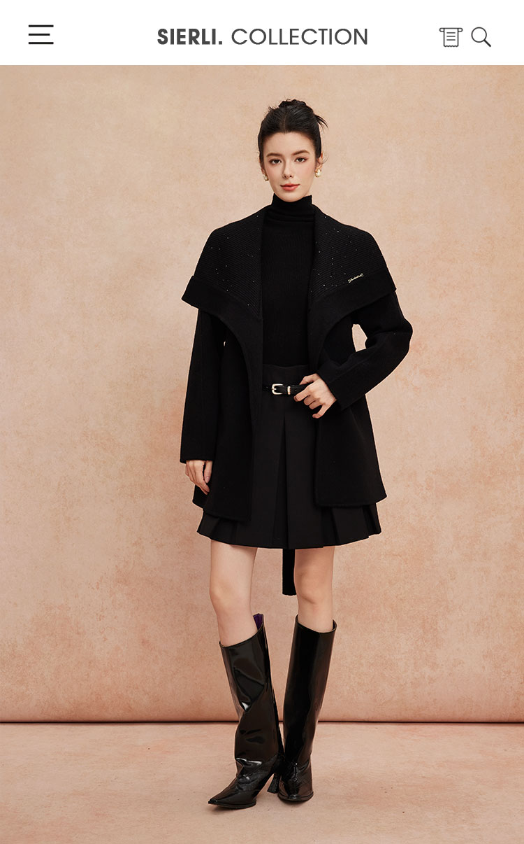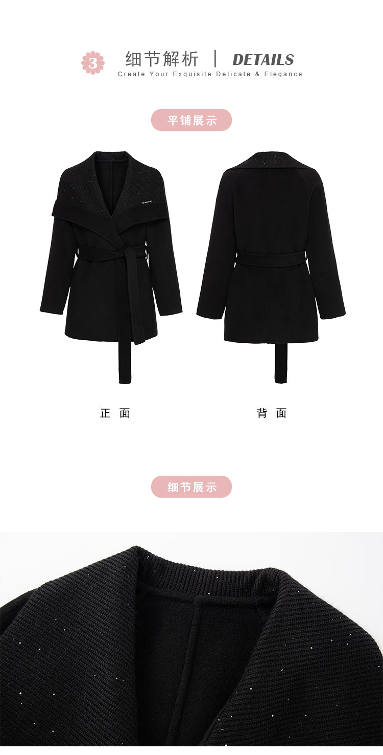 QH954斯尔丽25新款静奢风精致亮片大翻领显瘦一手长双面呢羊毛大衣