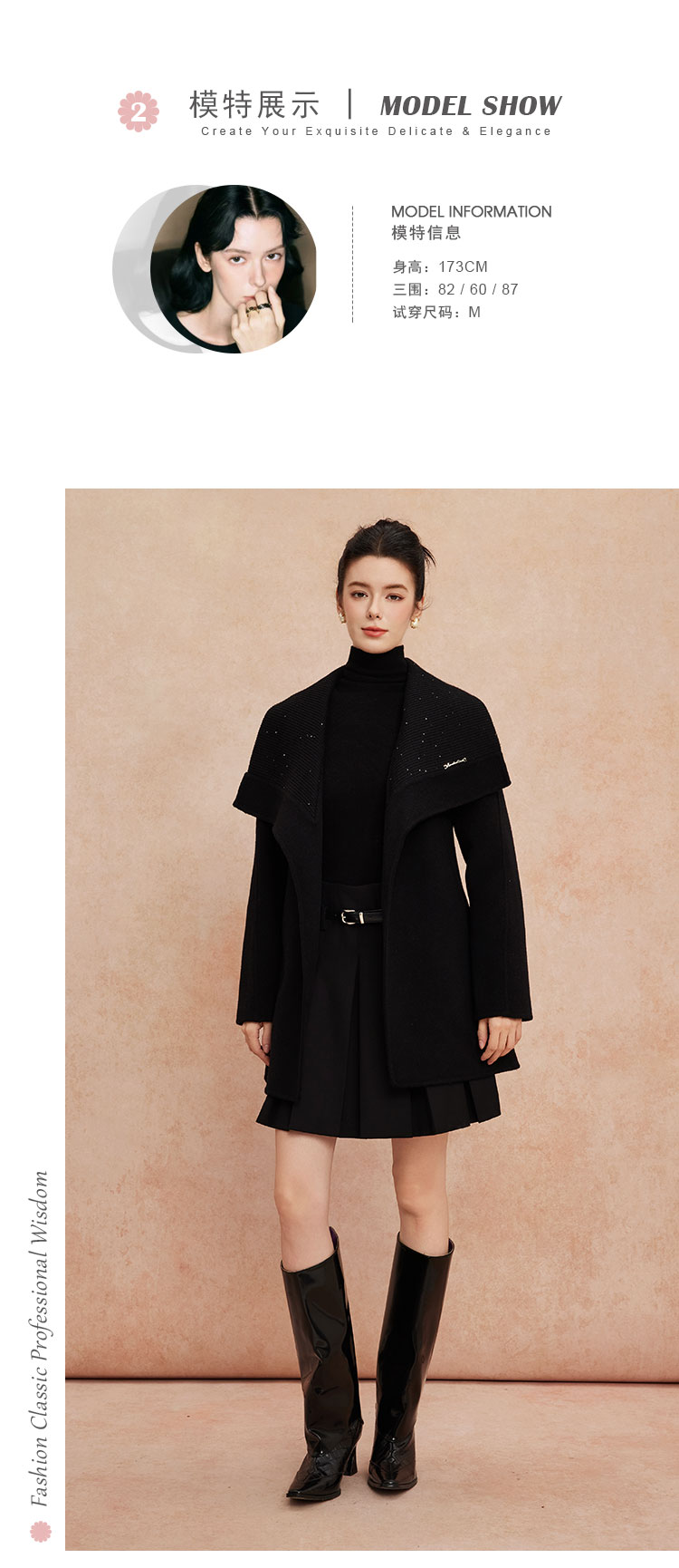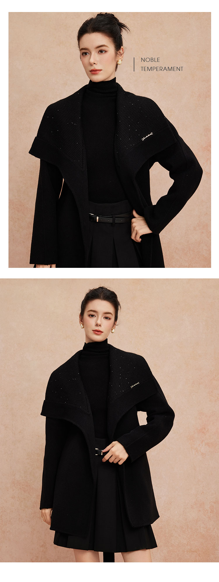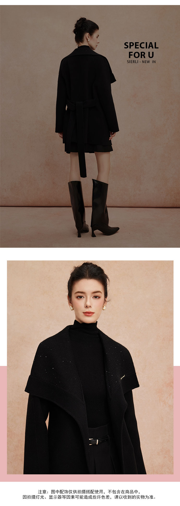 QH954斯尔丽25新款静奢风精致亮片大翻领显瘦一手长双面呢羊毛大衣