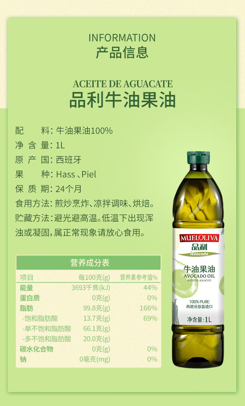 【1件包邮】品利牛油果油1L优质牛油果原料/033671 甘肃/青海/内蒙古/新疆/西藏/宁夏/海南/港澳台不发货