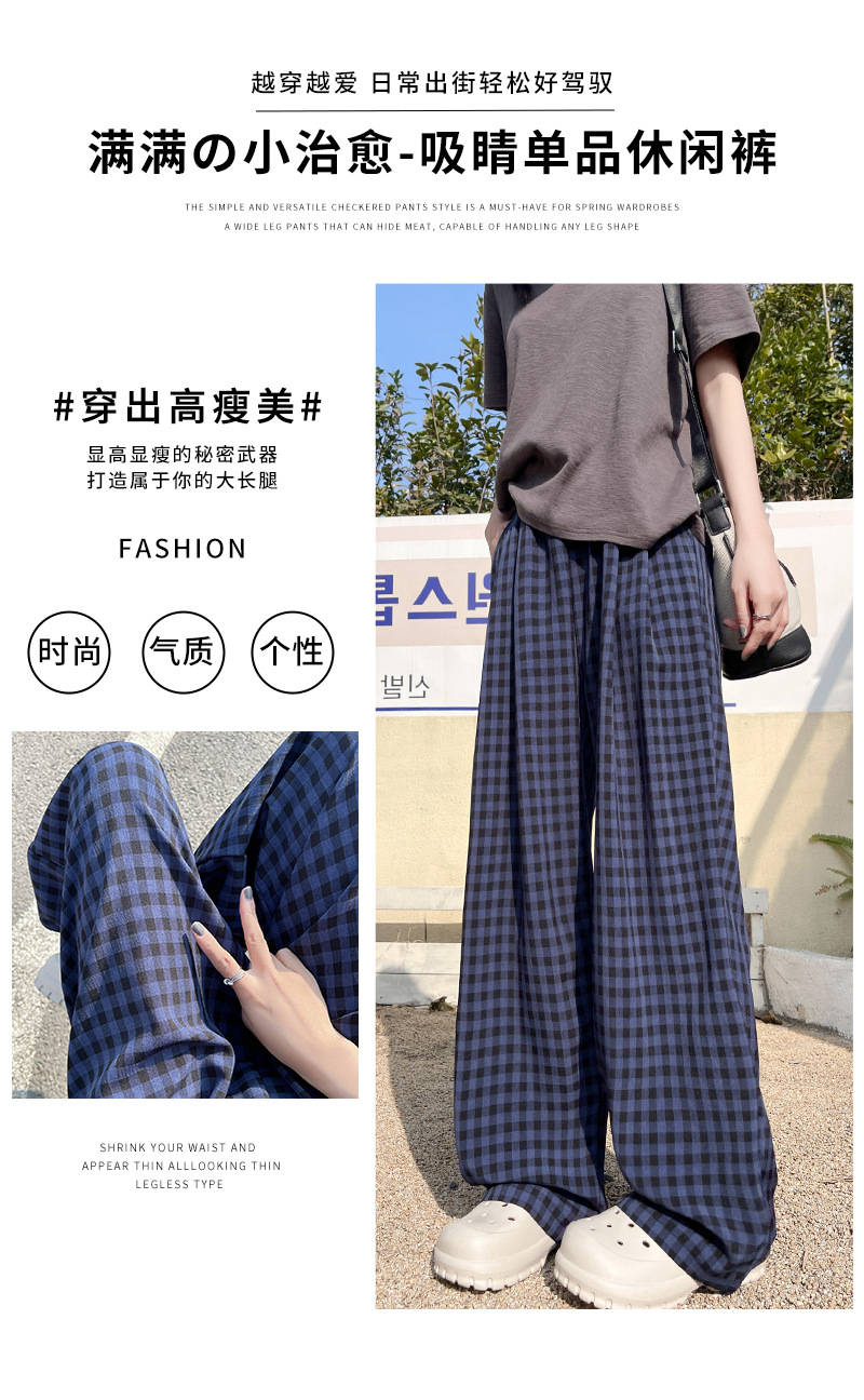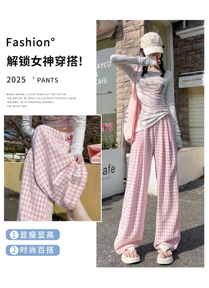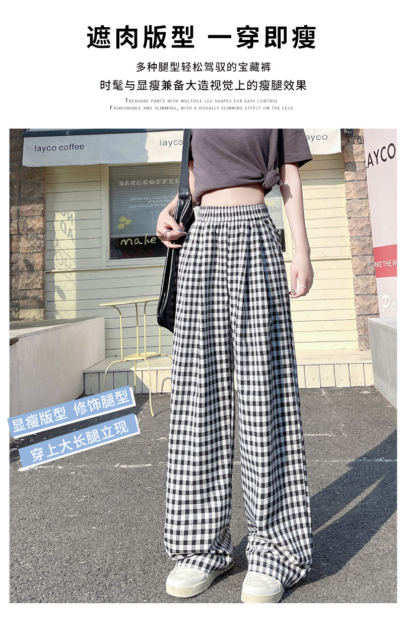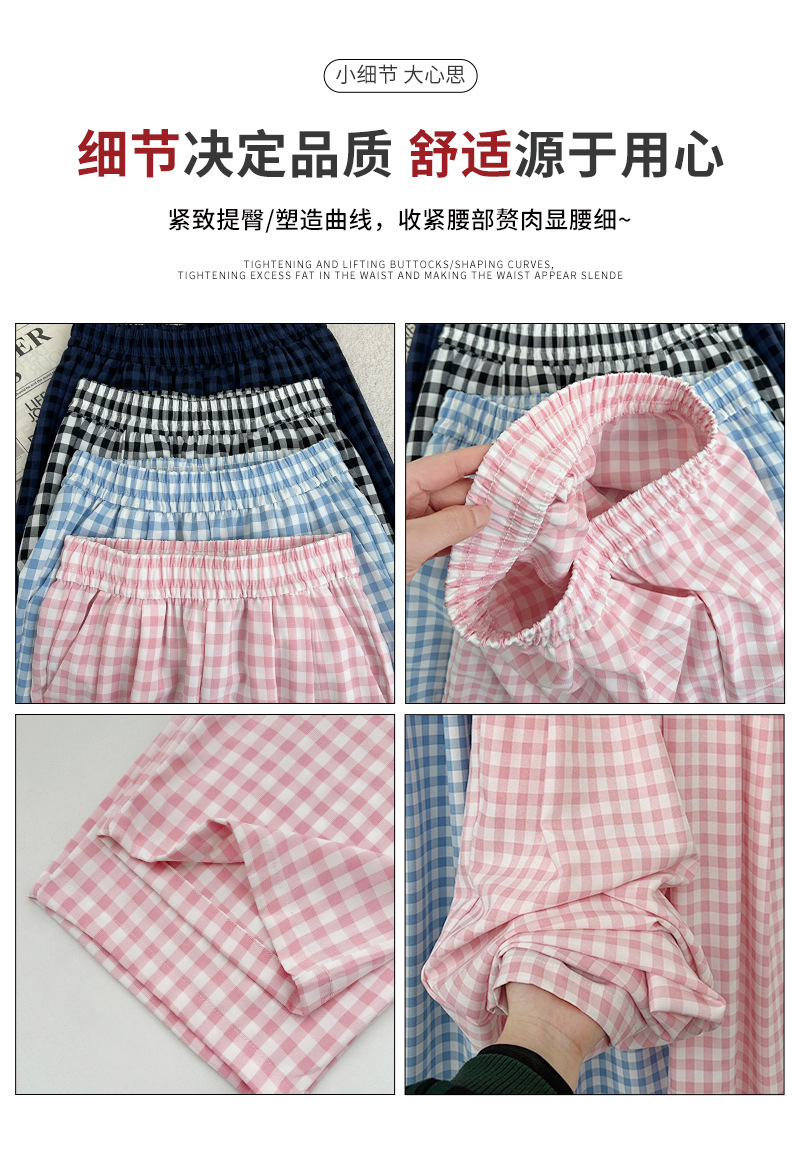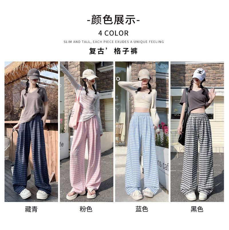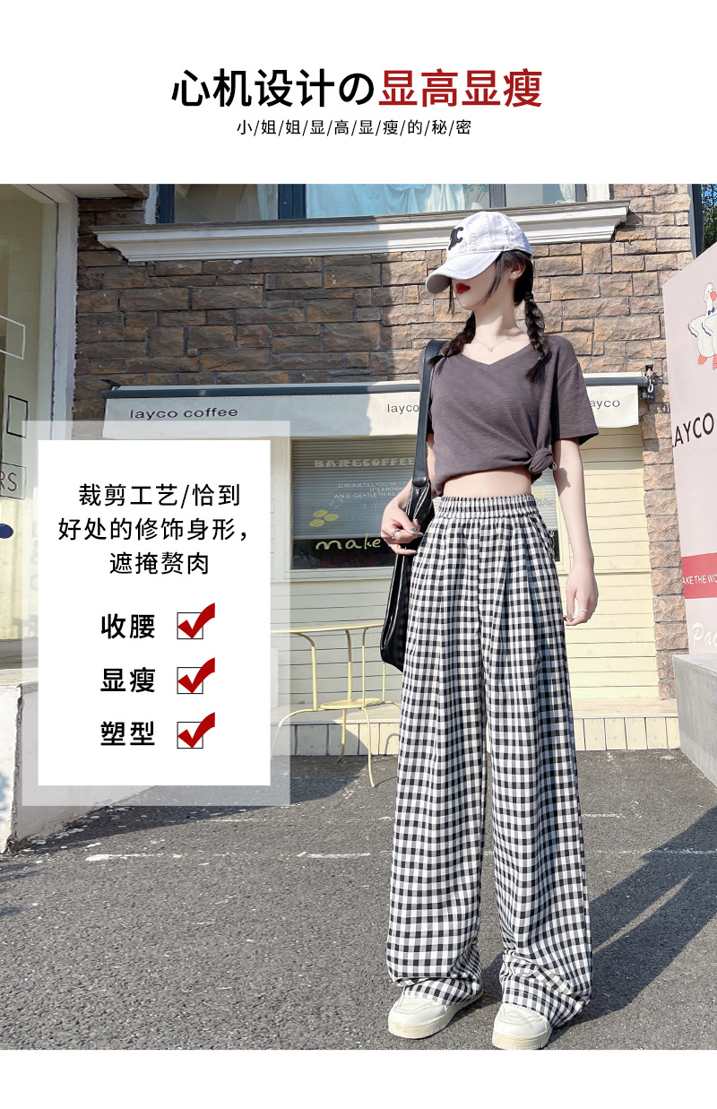 【多巴胺松弛感慵懒】夏季薄款高级感撞色格子直筒裤 垂感休闲山本阔腿裤