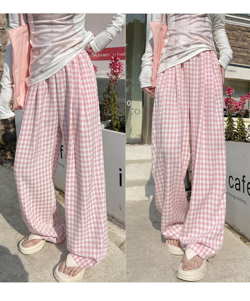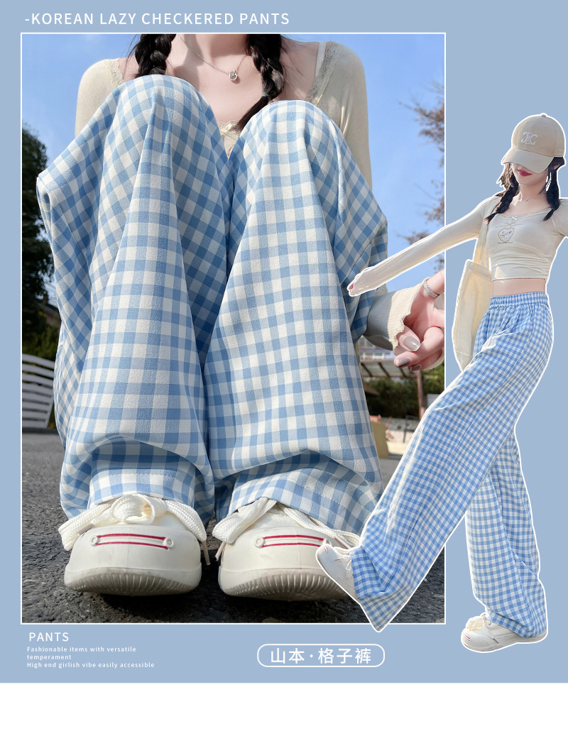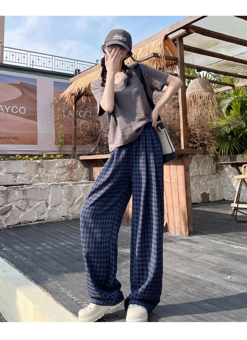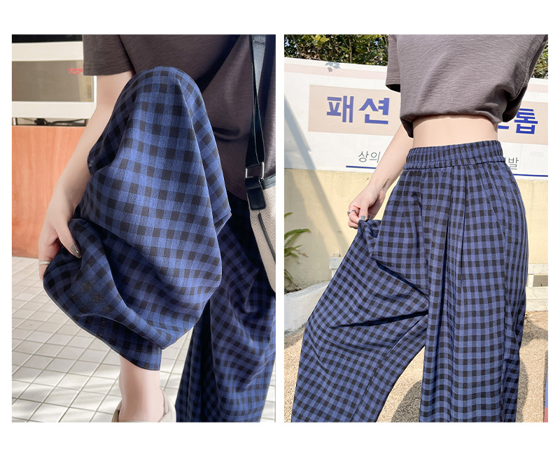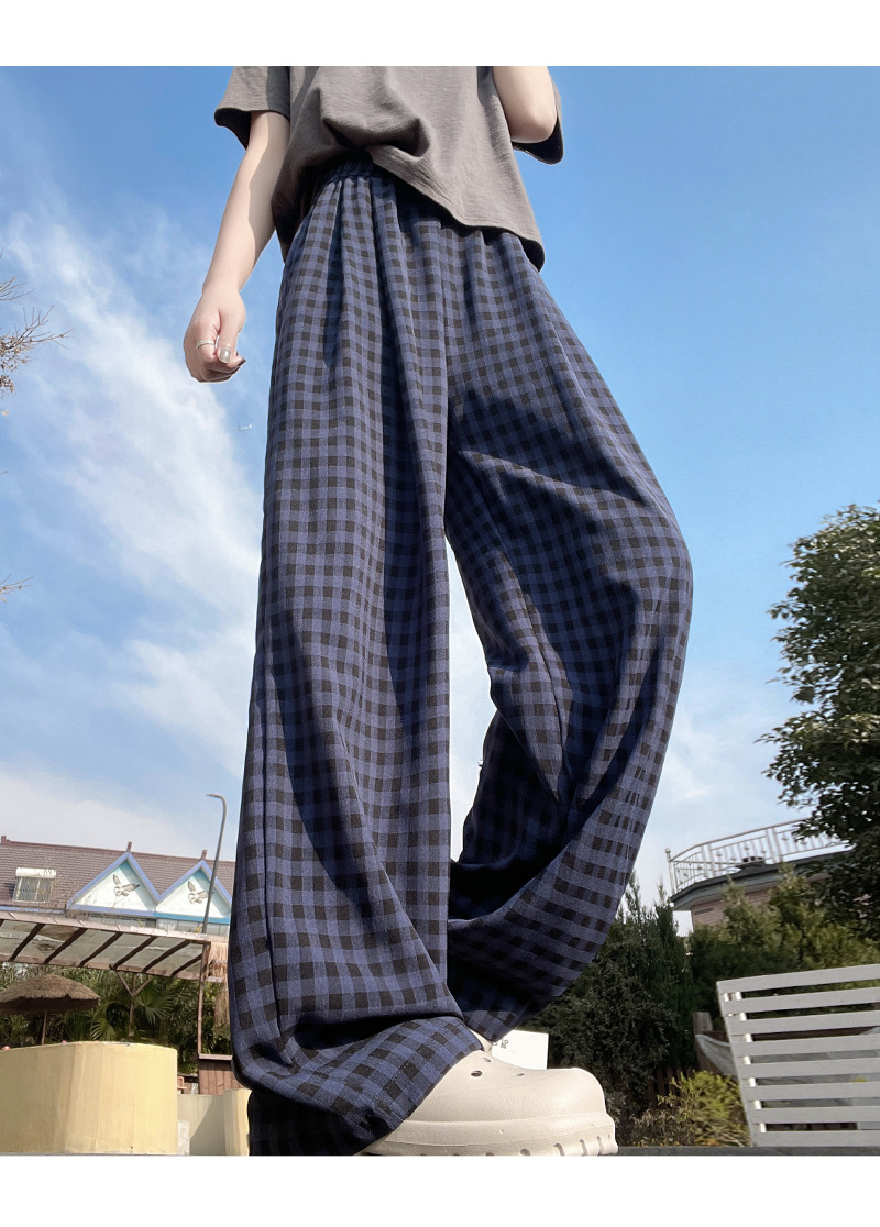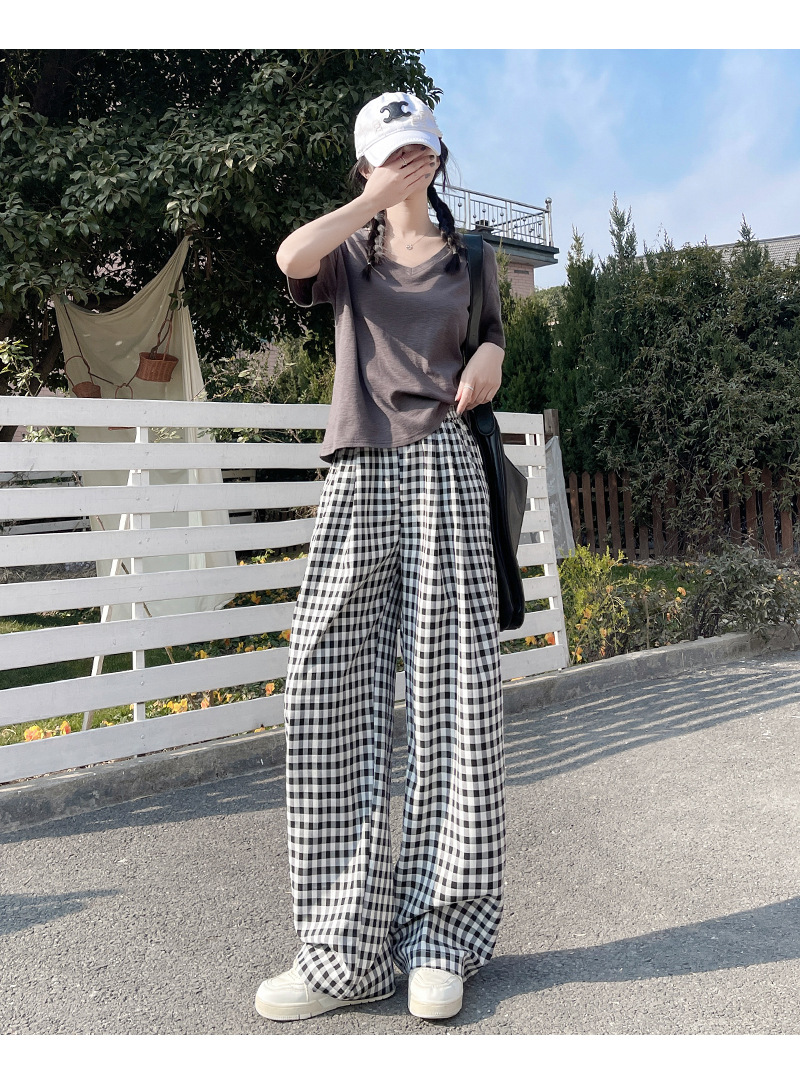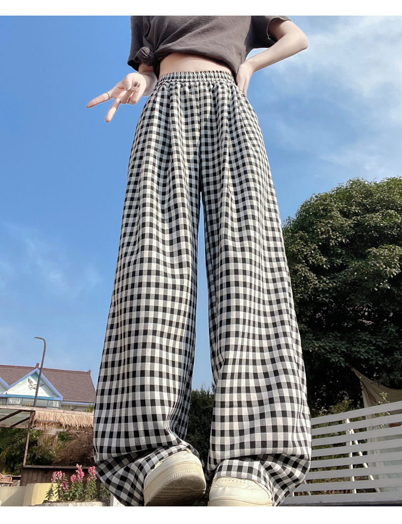 【多巴胺松弛感慵懒】夏季薄款高级感撞色格子直筒裤 垂感休闲山本阔腿裤