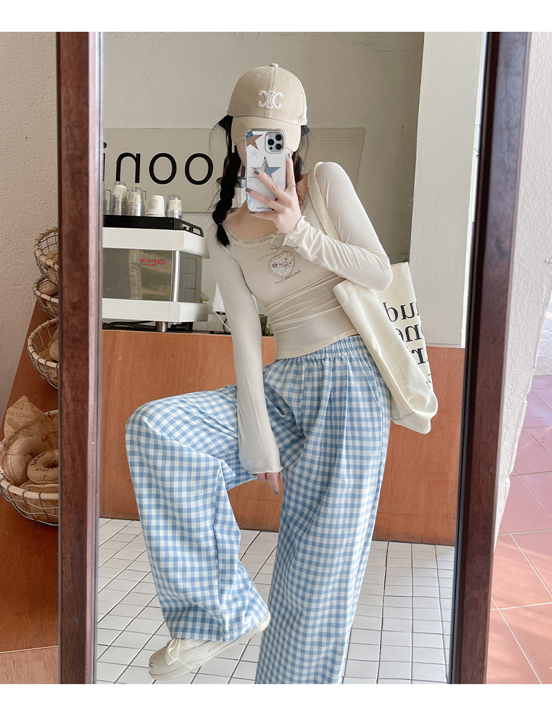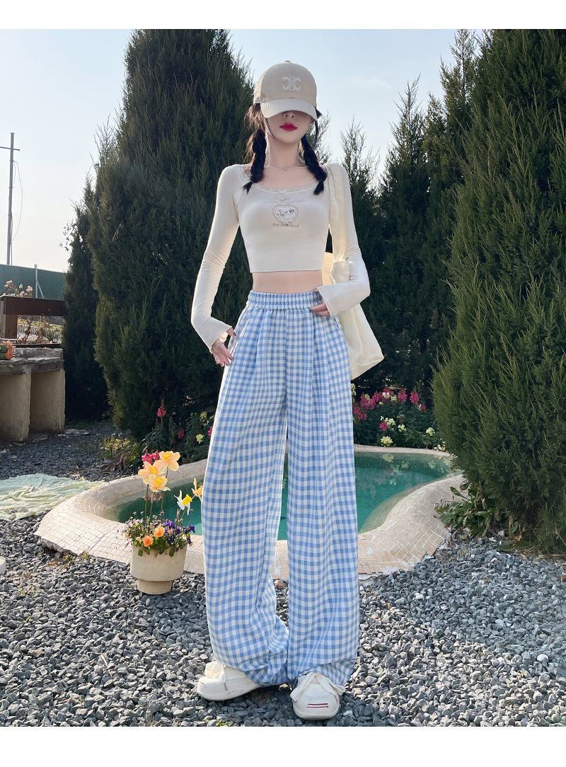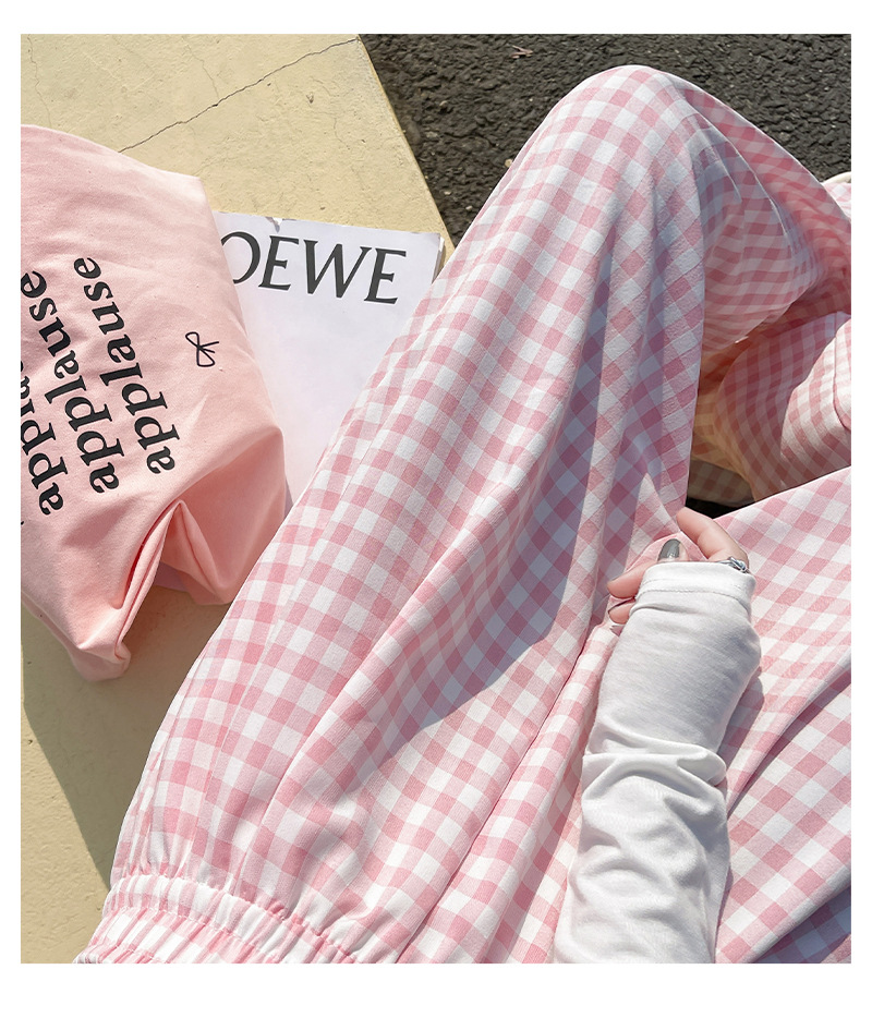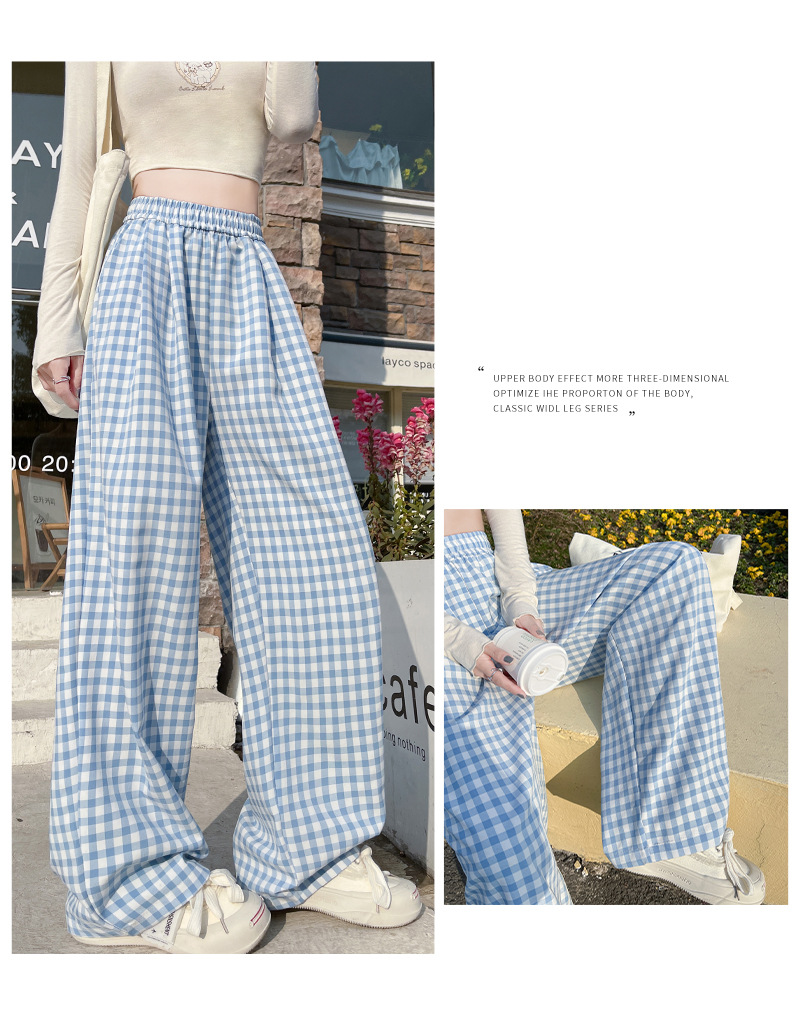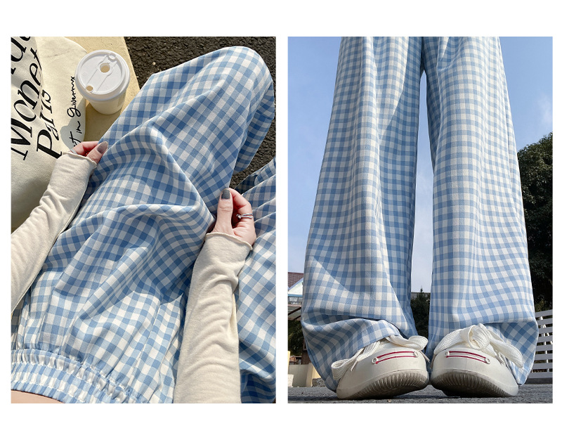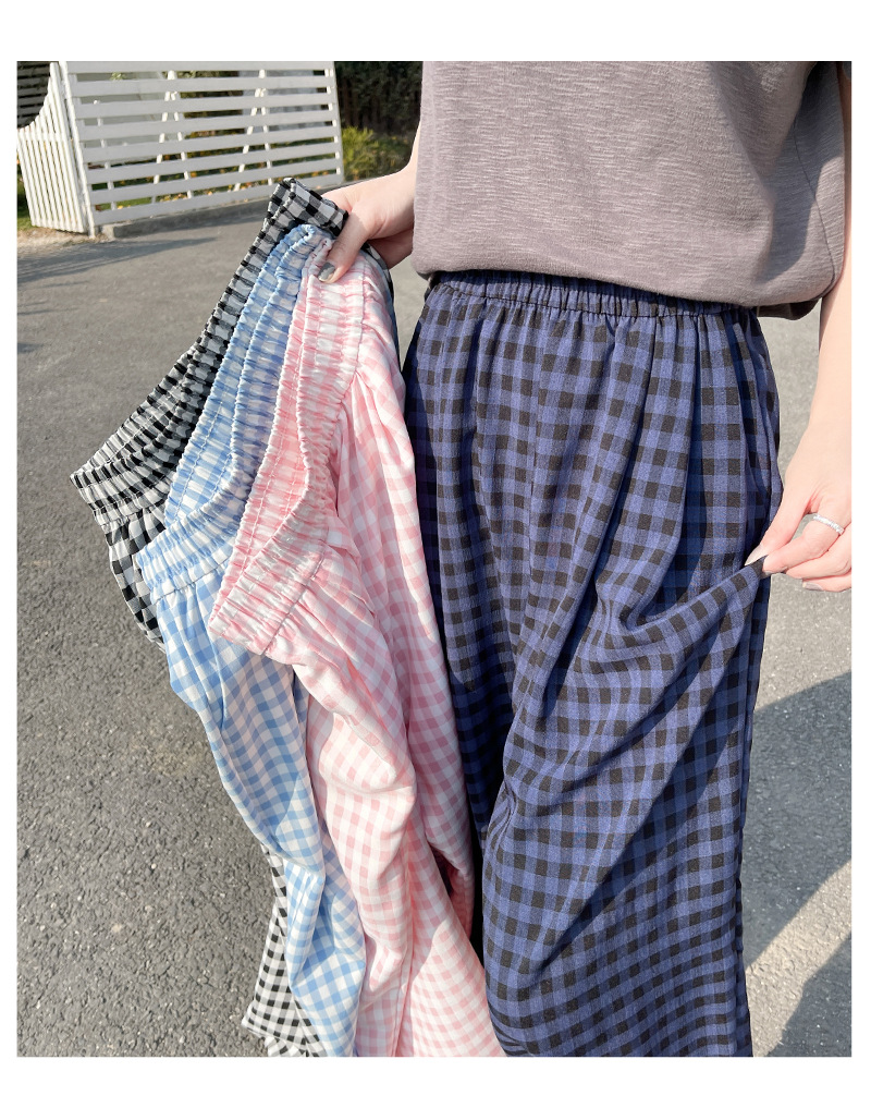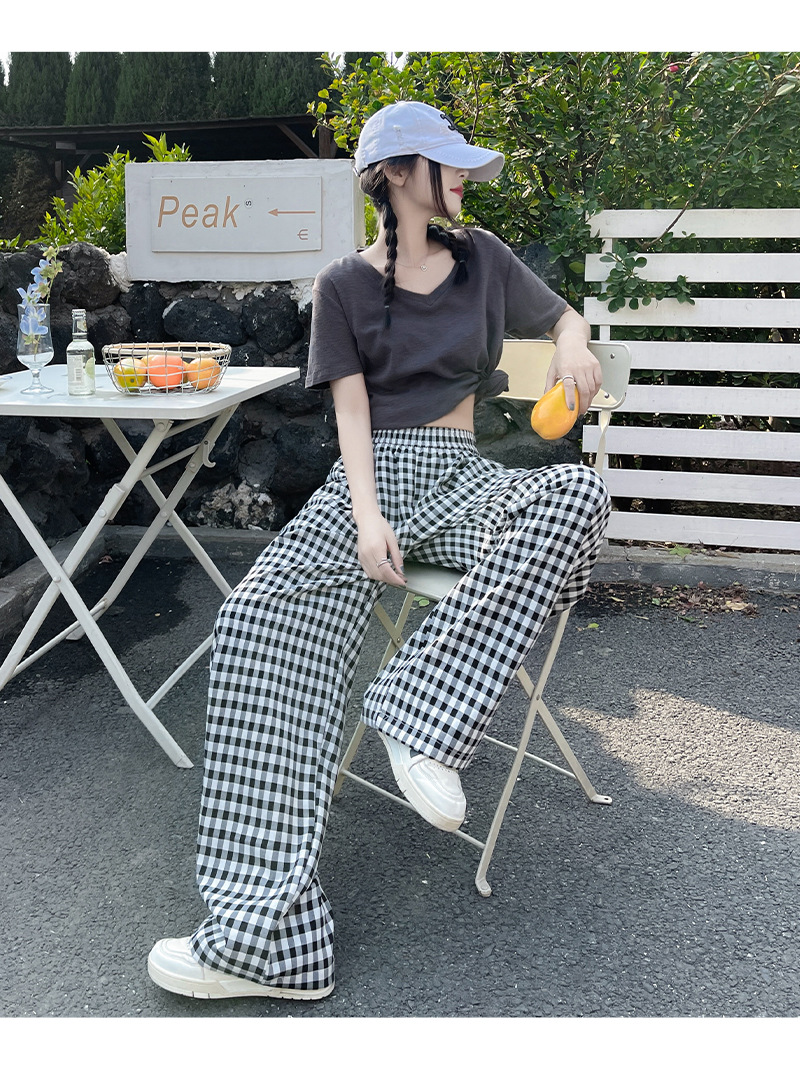 【多巴胺松弛感慵懒】夏季薄款高级感撞色格子直筒裤 垂感休闲山本阔腿裤