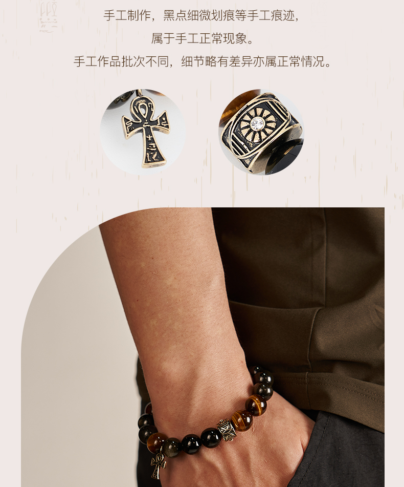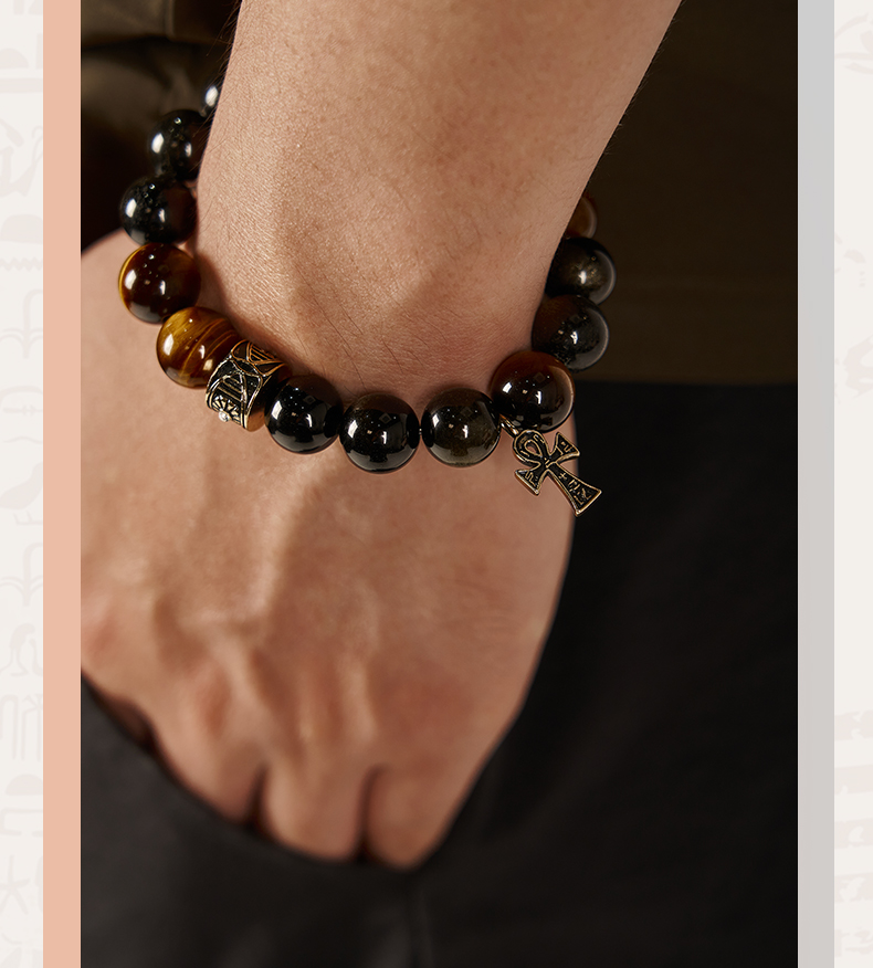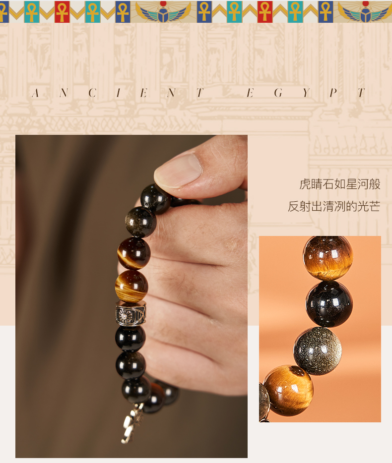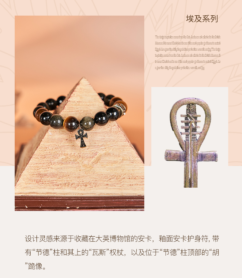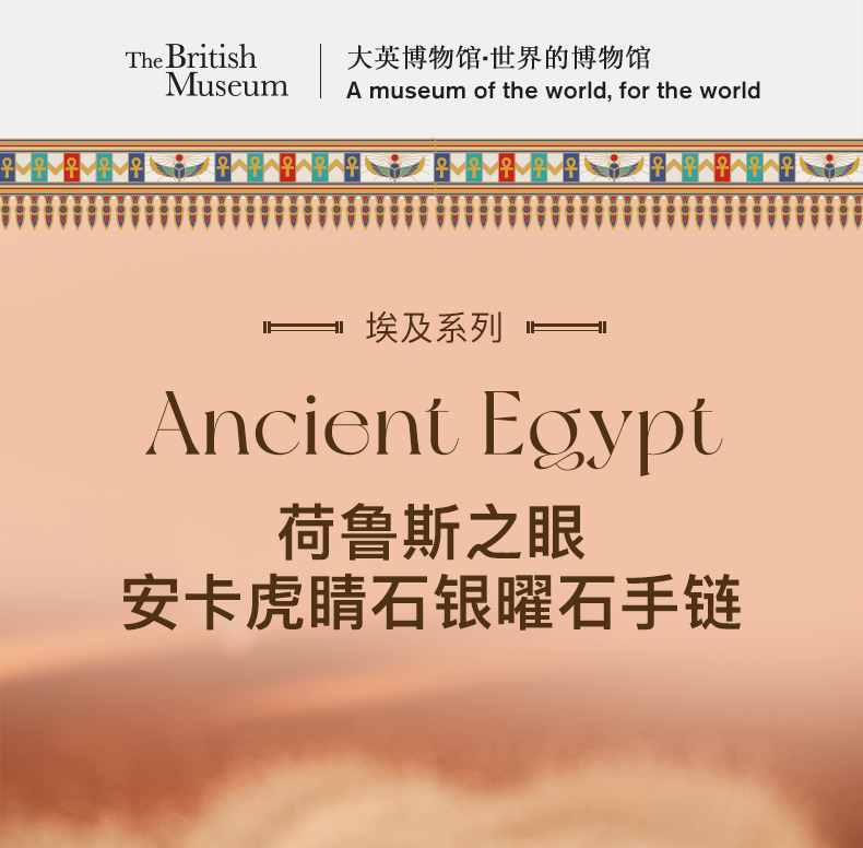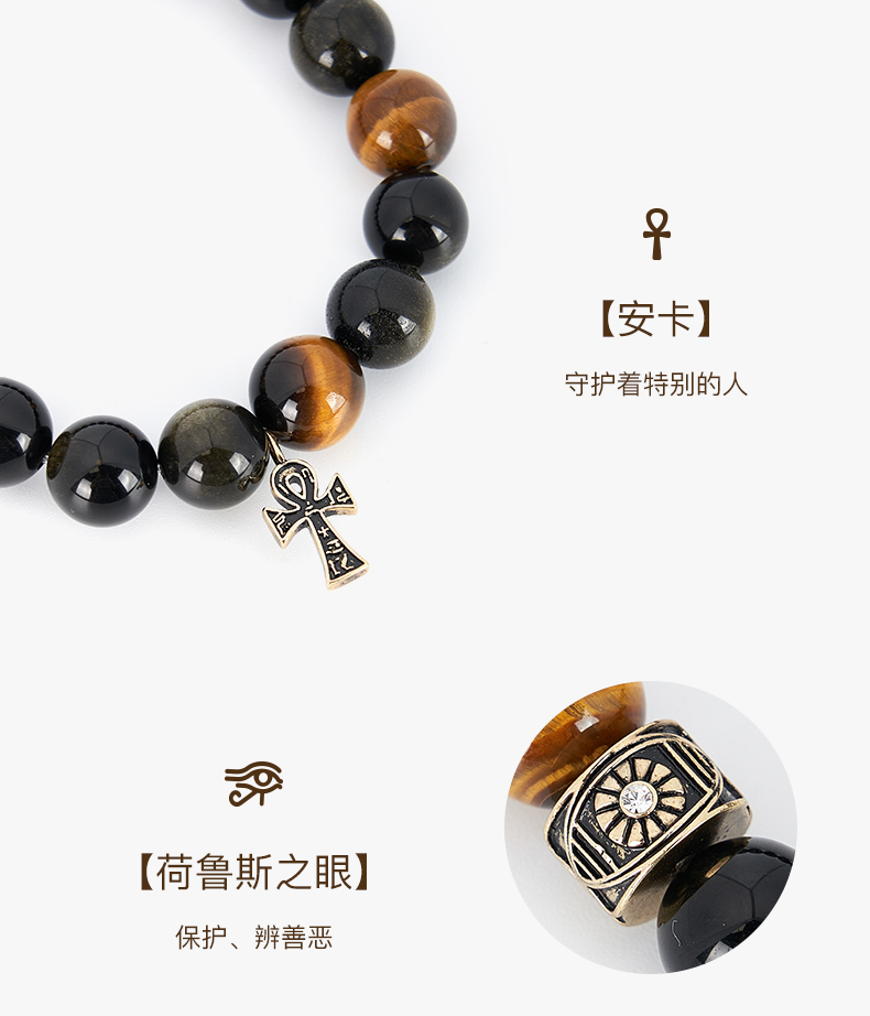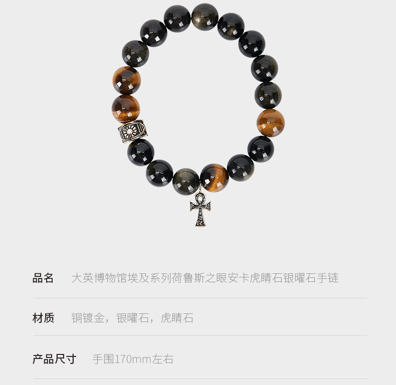 大英博物馆 埃及系列 荷鲁斯之眼 安卡 虎睛石银曜石手串