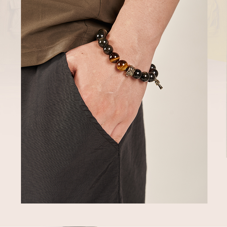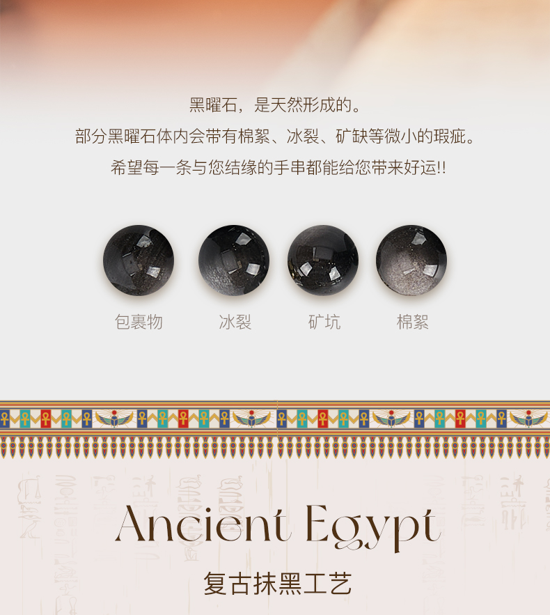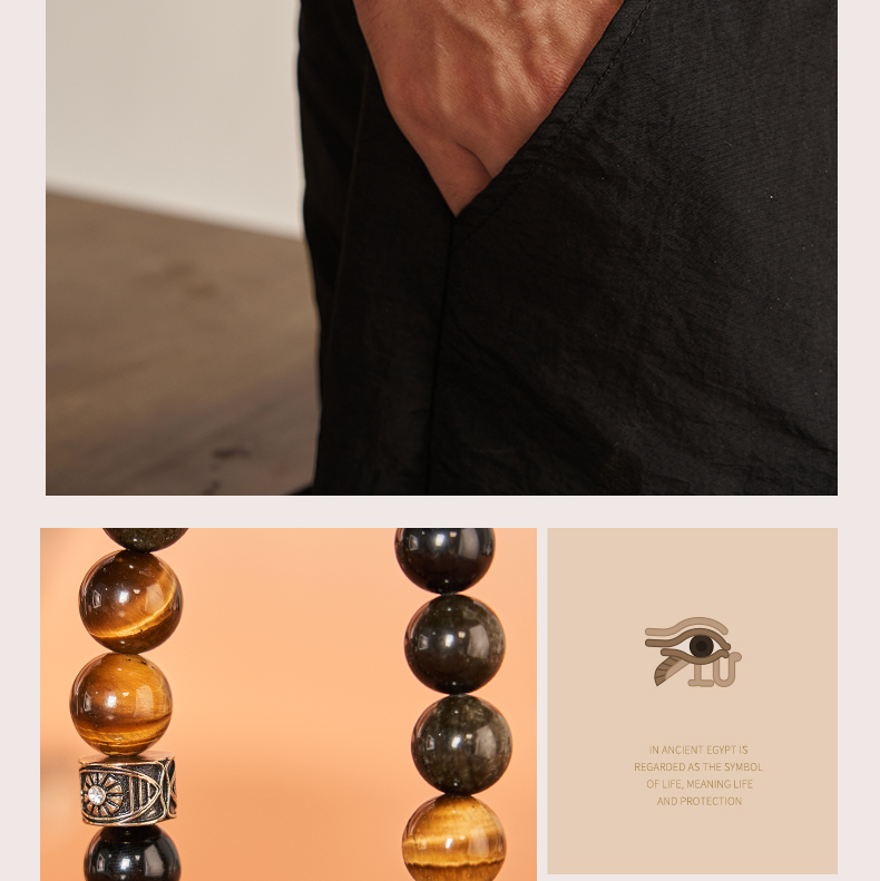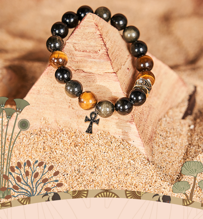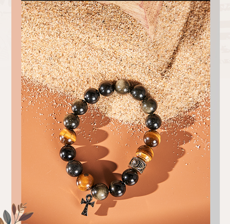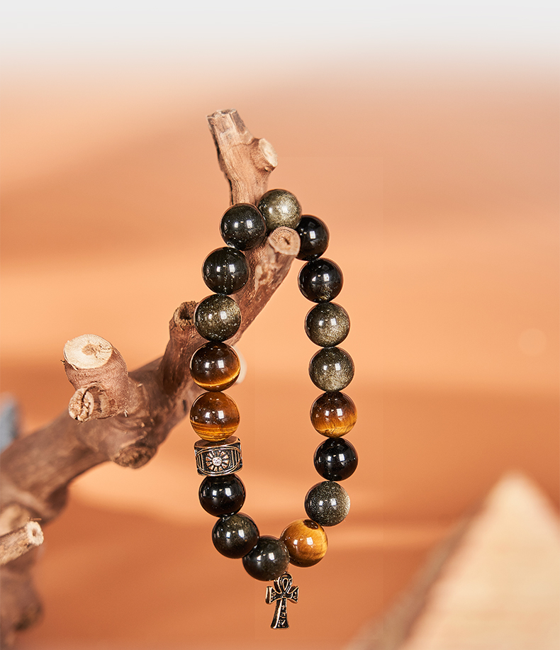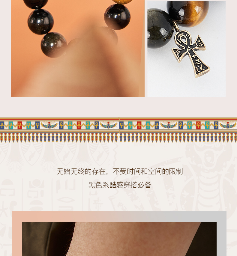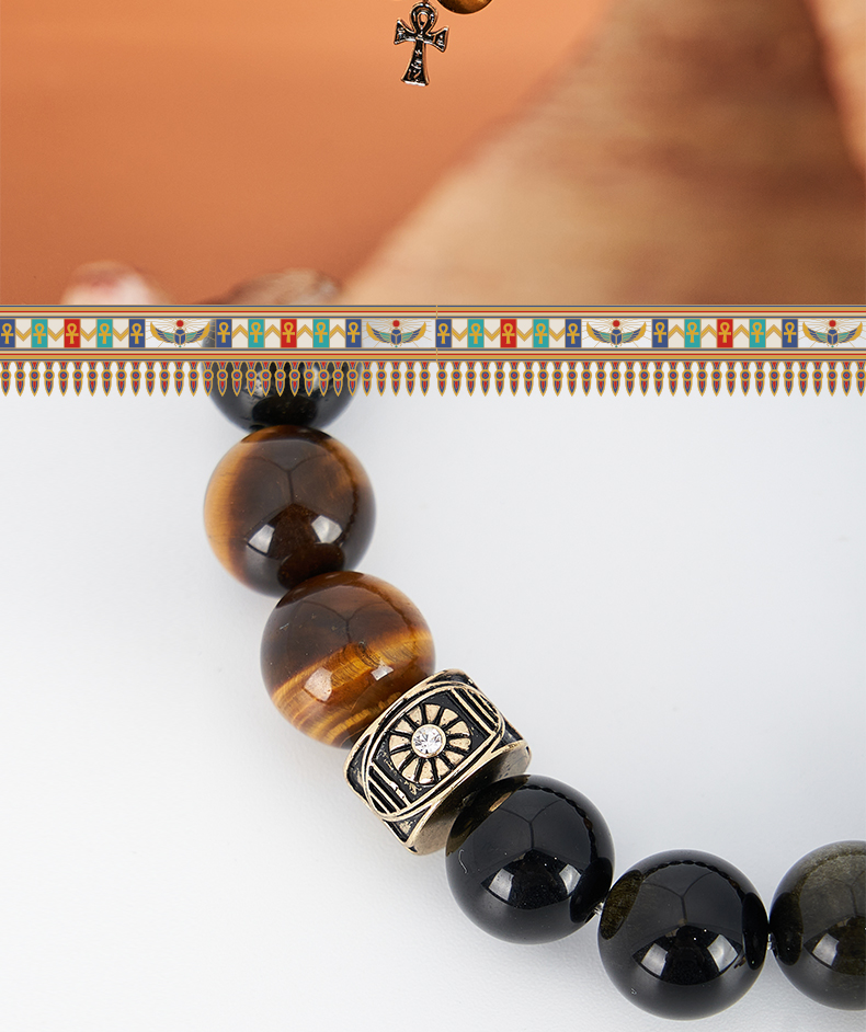 大英博物馆 埃及系列 荷鲁斯之眼 安卡 虎睛石银曜石手串