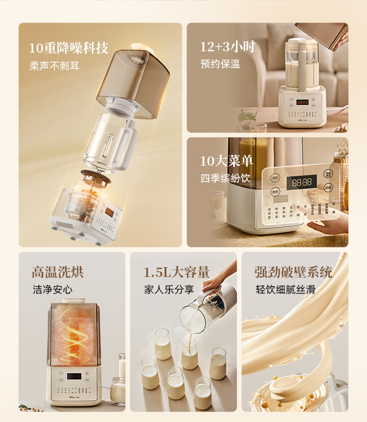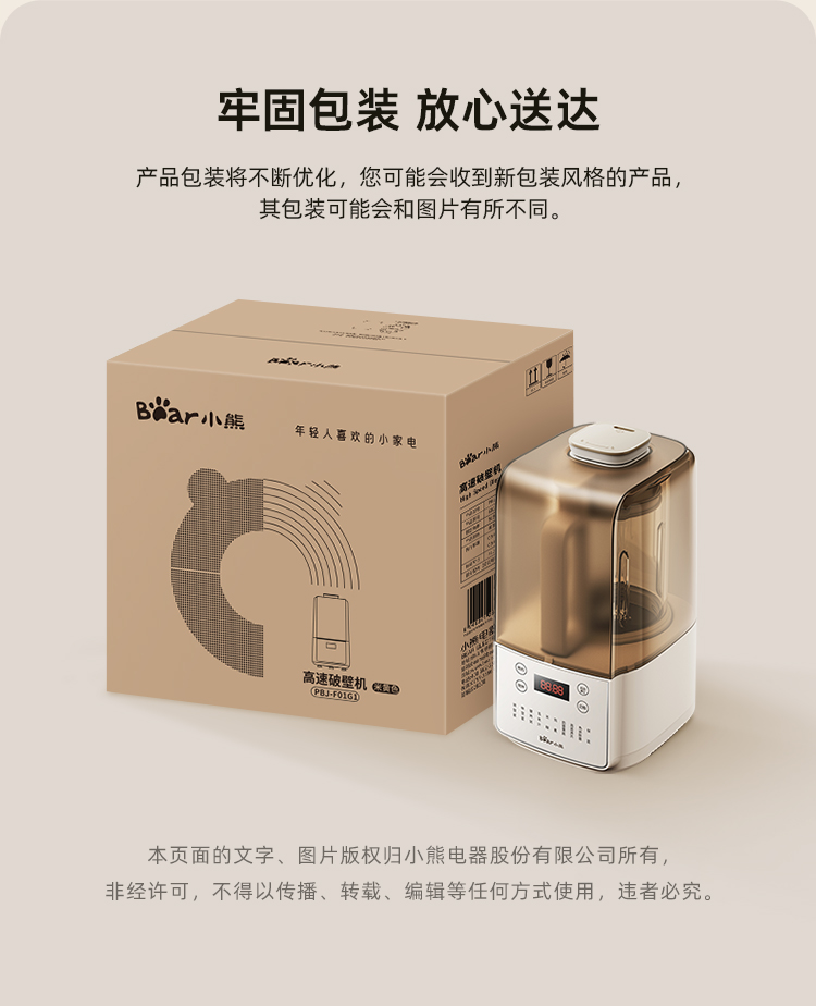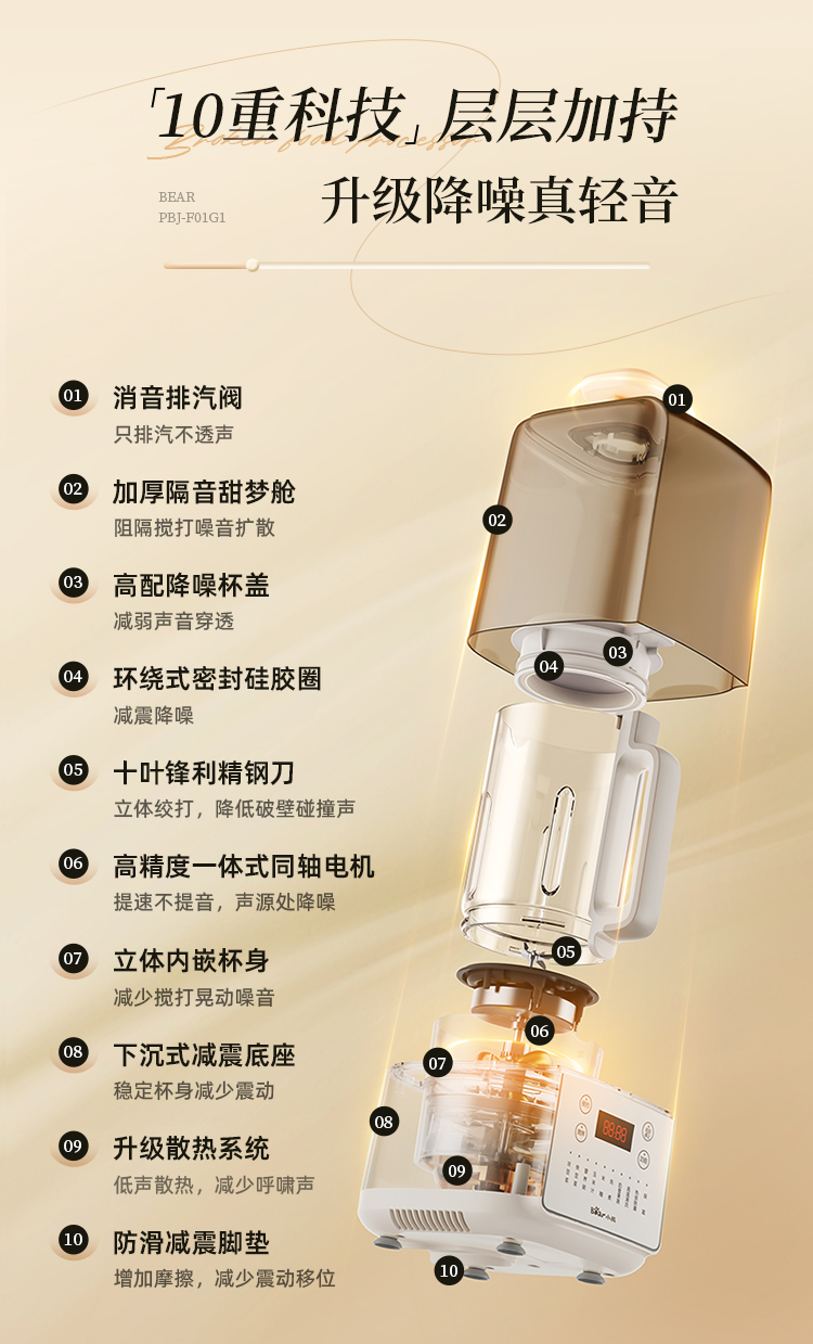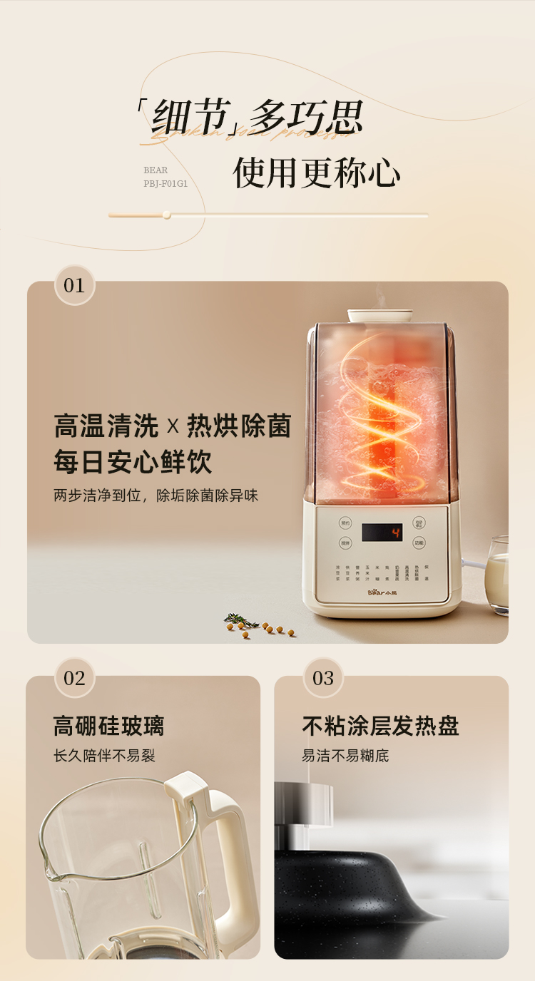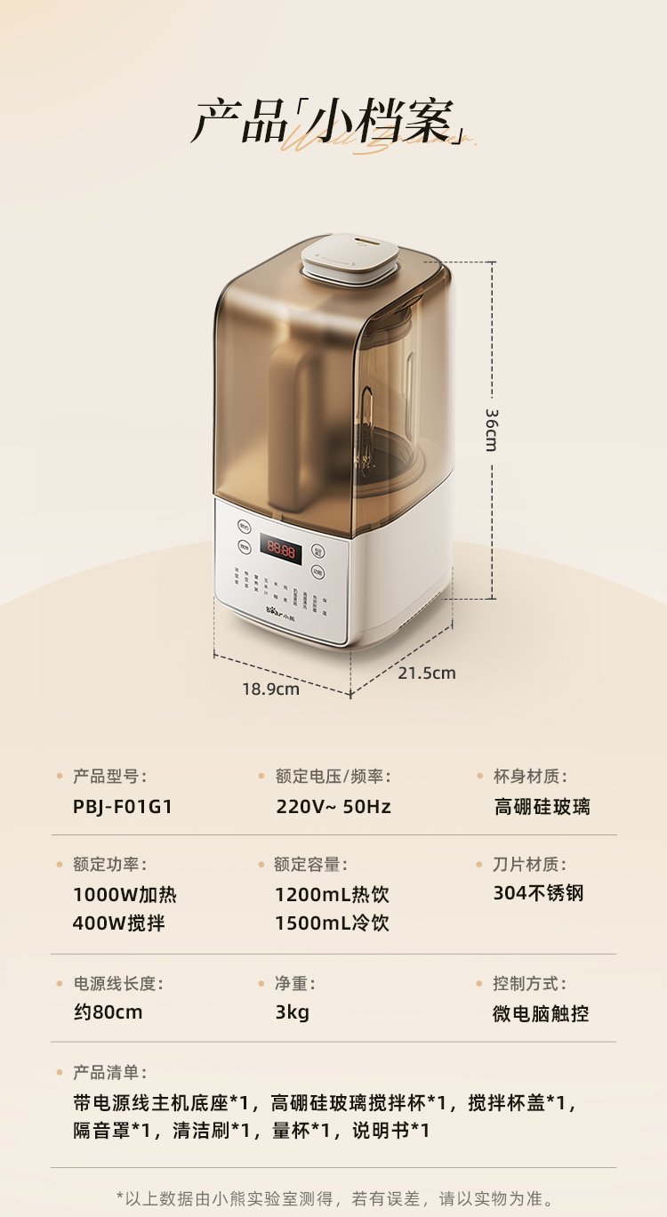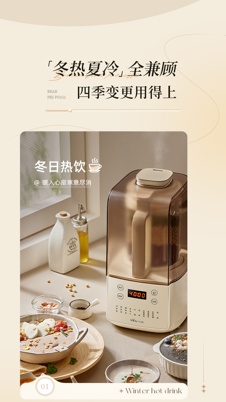 小熊/Bear 破壁机 PBJ-F01G1-S01 米白 电子式