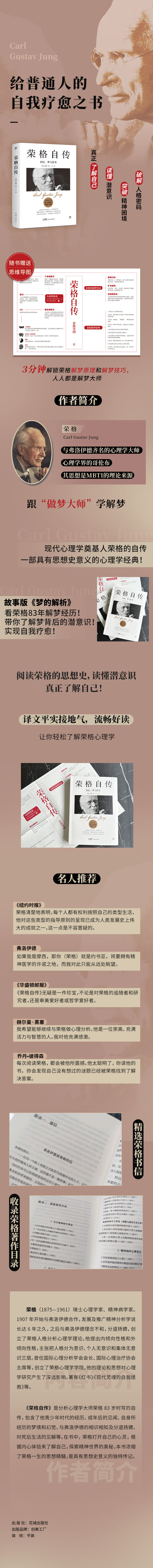 1.荣格是与弗洛伊德齐名的心理学大师,被冠以“心理学界的哥伦布”,其思想是MBTI的理论来源。2.给普通人的自我疗愈之书!现代心理学奠基人荣格的自传,一部具有思想史意义的心理学经典!3.随书附赠思维导图,厘清荣格理论体系,3分钟解锁荣格解梦原理和解梦技巧,人人都是解梦大师!4.故事版《梦的解析》,看荣格83年解梦经历!跟“做梦大师”荣格学解梦!带你了解梦背后的潜意识!实现自我疗愈!5.阅读荣格的思想史,读懂潜意识,真正了解自己!了解自己的人格类型,破解人格密码,突破精神困境!6.译文平实接地气,流畅好读,让你轻松了解荣格心理学。7.精选荣格书信、收录荣格著作目录,带读者了解心理学家荣格。