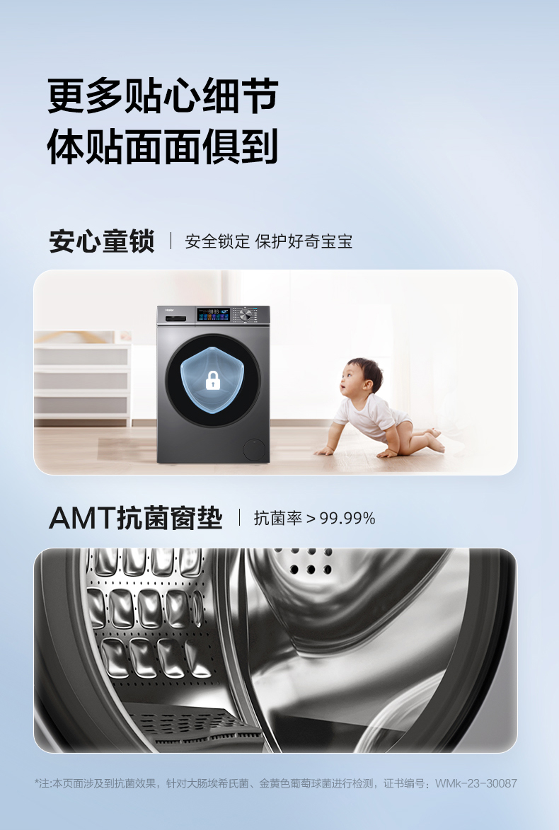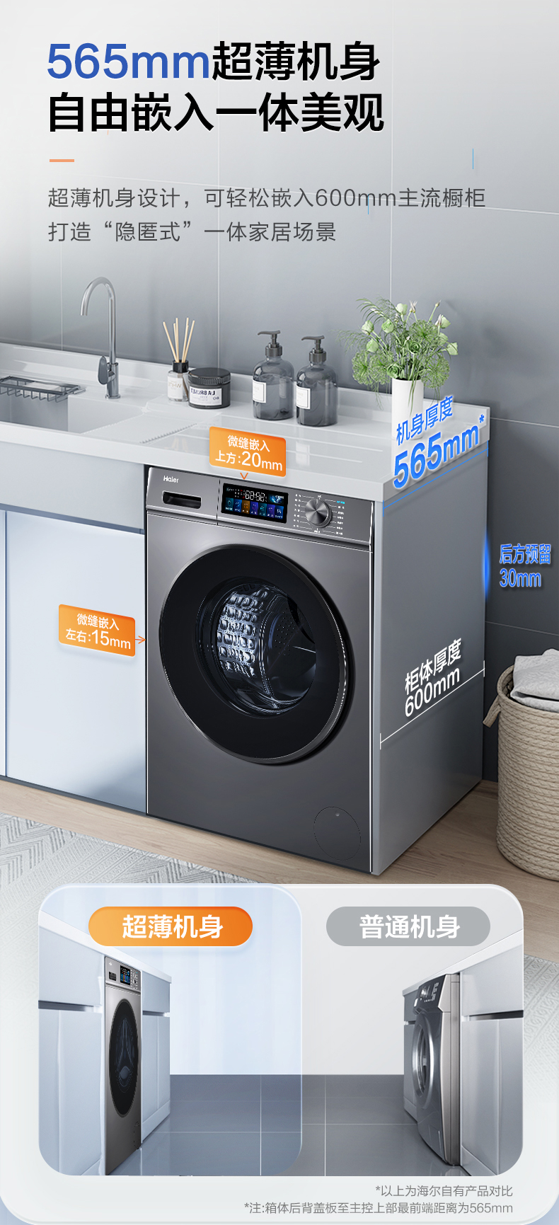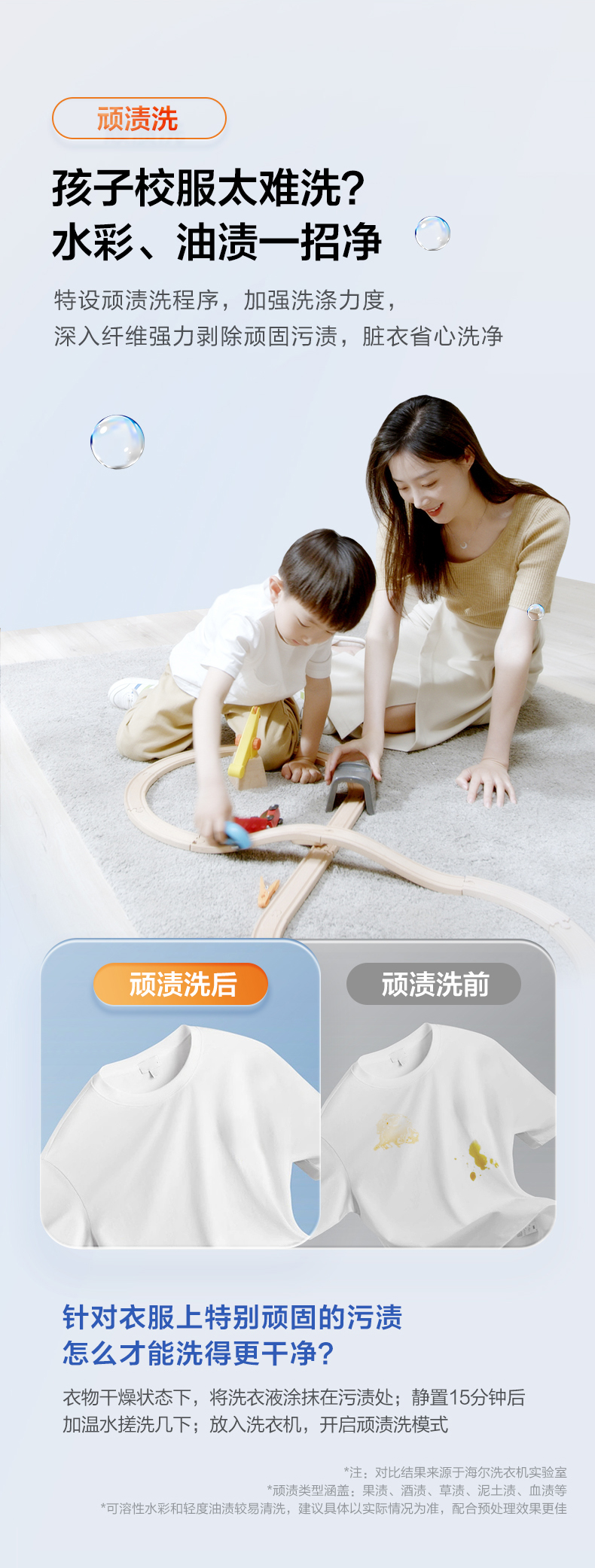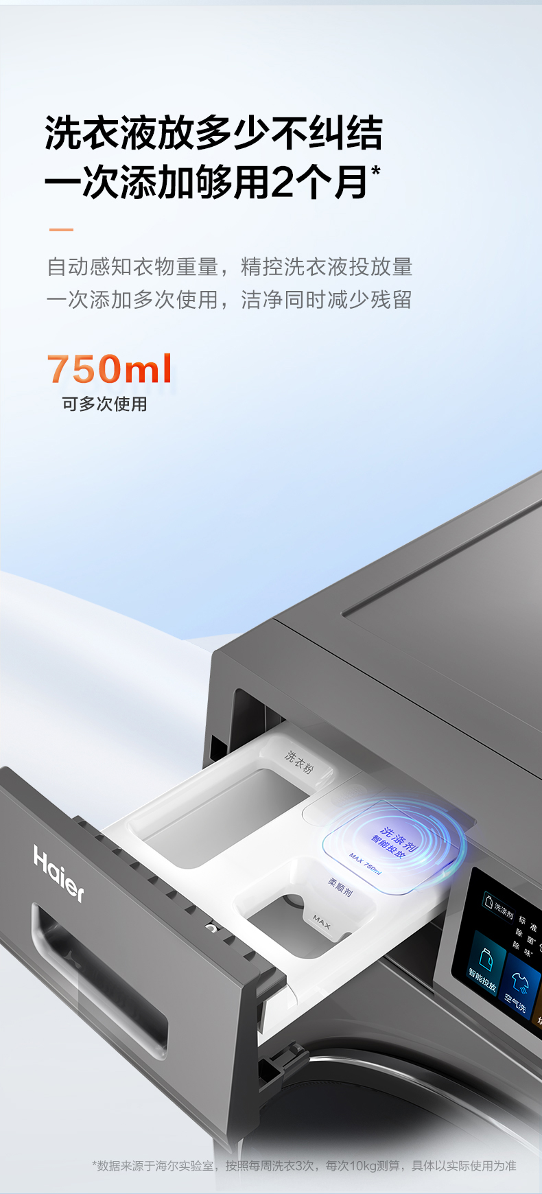 海尔(Haier)洗衣机滚筒全自动10公斤大容量变频家用一级能效超薄机身95℃桶自洁除菌螨EG100MAX29S滚筒单洗+1.1高洗净比+顽渍洗去污渍