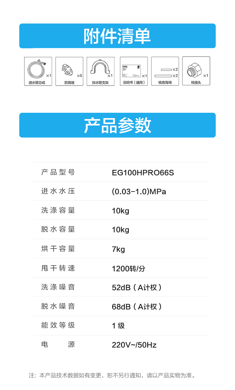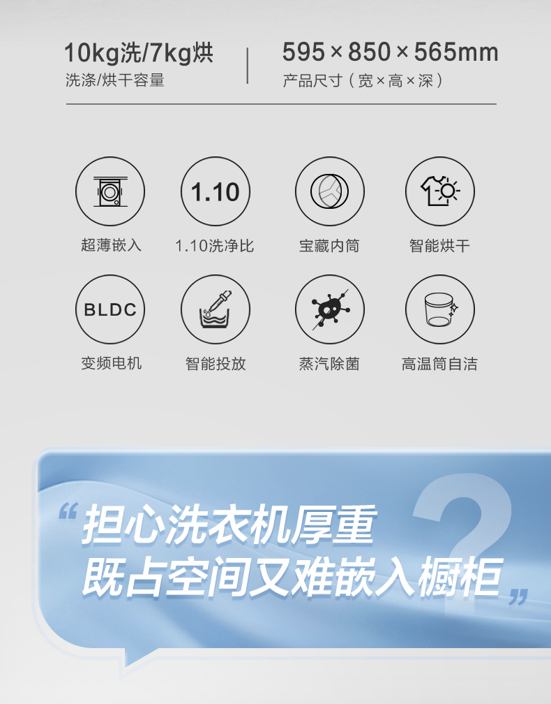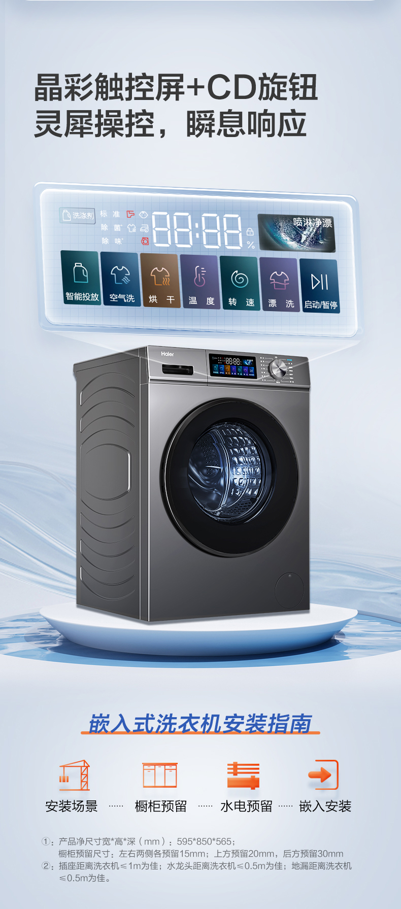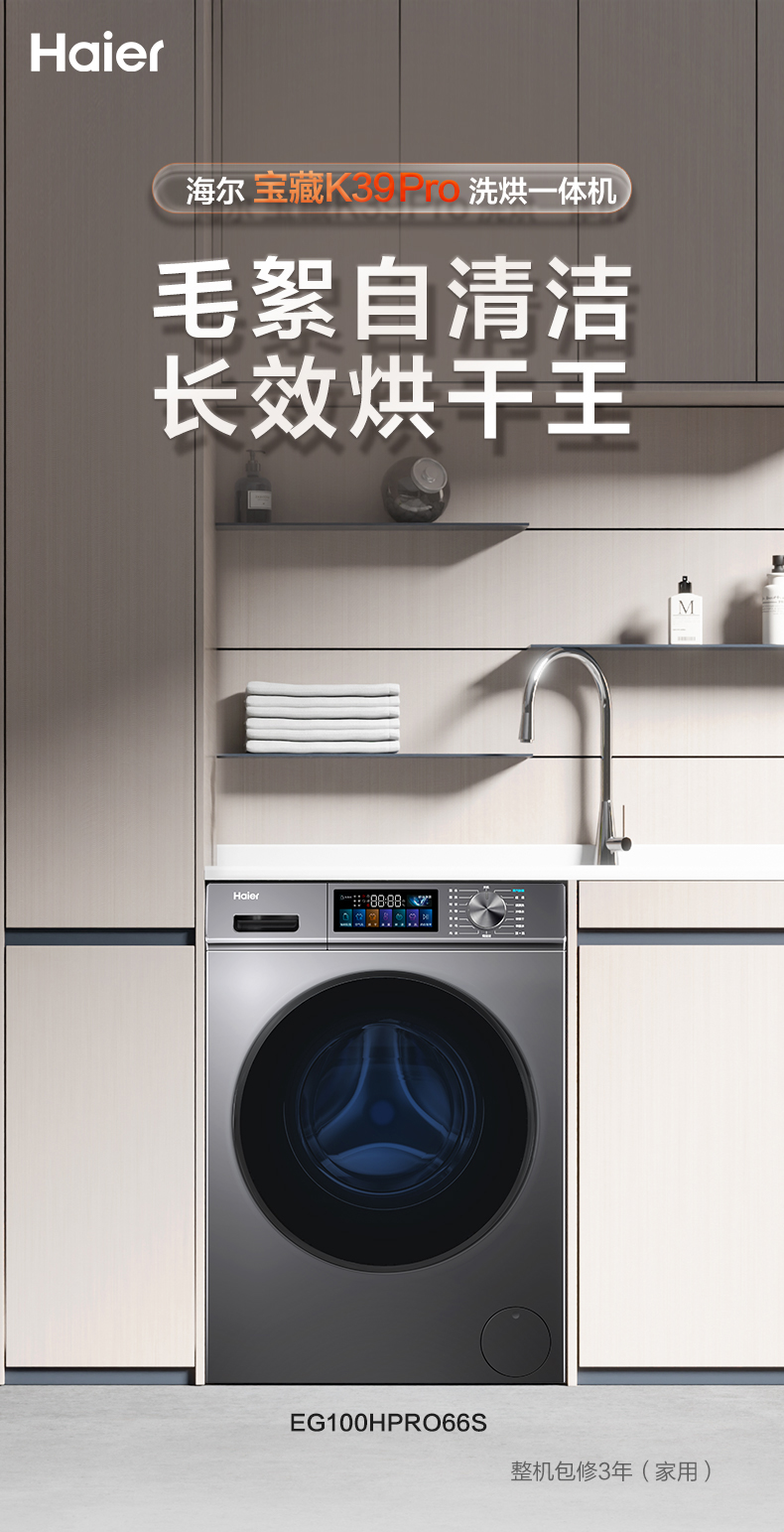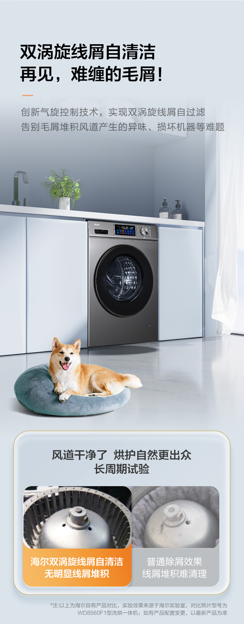 海尔出品统帅10公斤滚筒洗烘一体全自动变频家用大容量洗衣机 JQG100-B11W