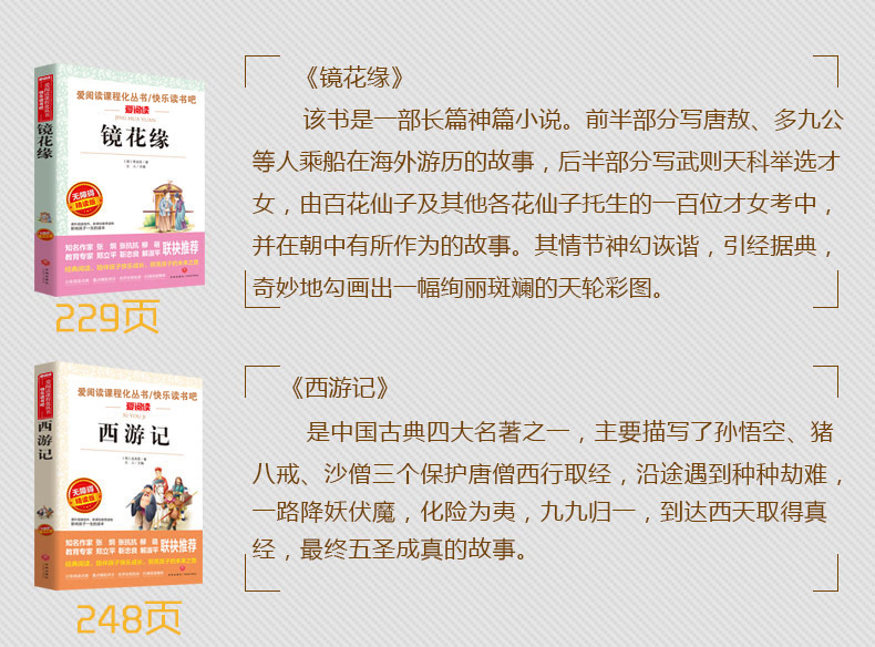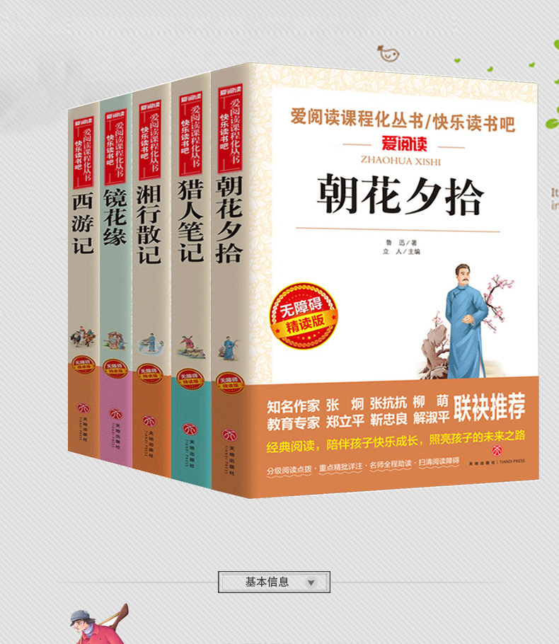 爱阅读 快乐读书吧全5册任选 七年级下西游记湘行散记朝花夕拾镜花缘猎人笔记 无障碍阅读导读版 7年级初中生课外书籍青少年版