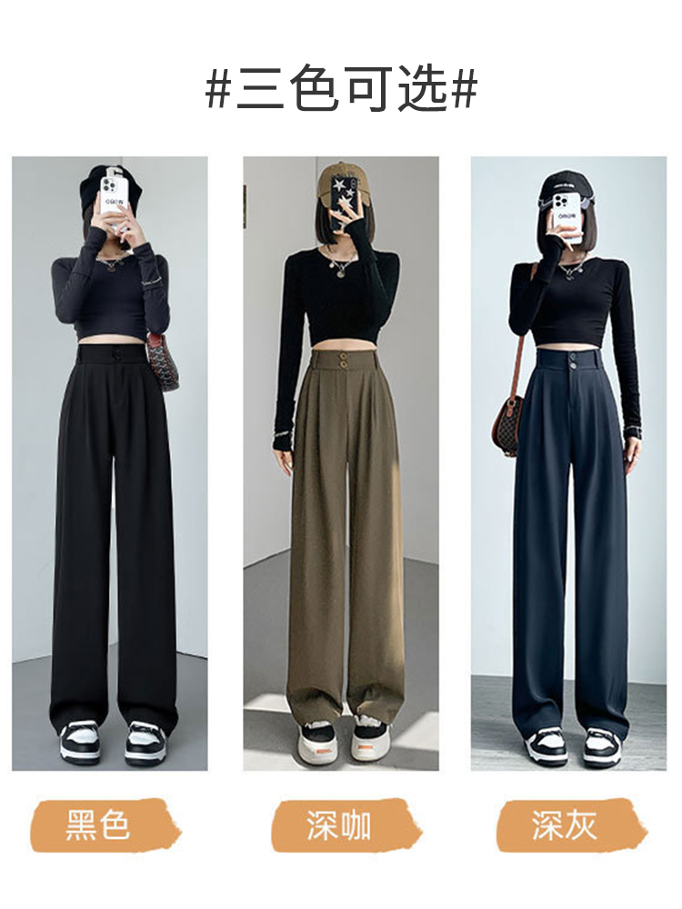 【高腰显瘦,宽松西装阔腿裤】秋季新款加厚 西装阔腿裤 高级垂坠感直筒休闲裤子