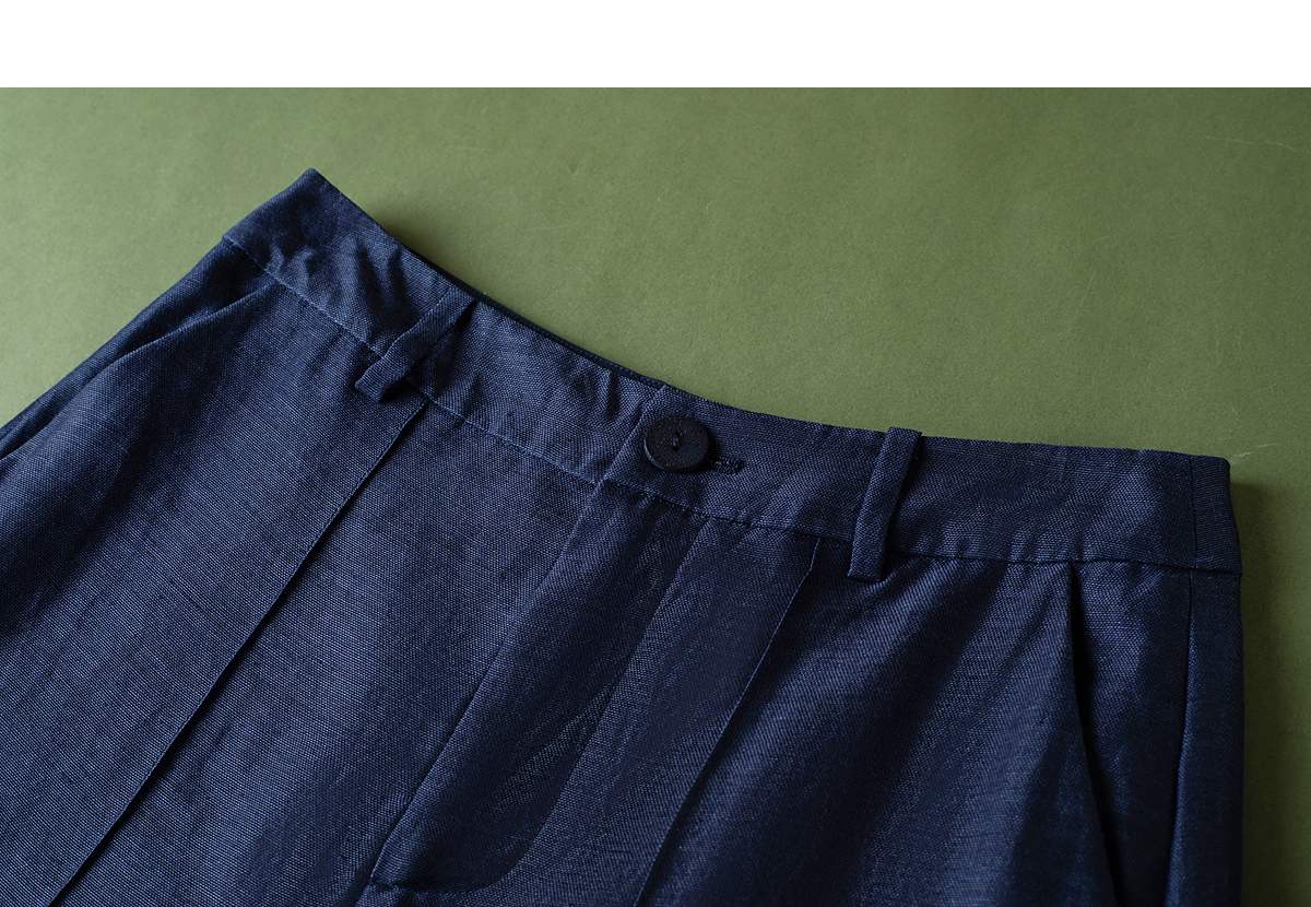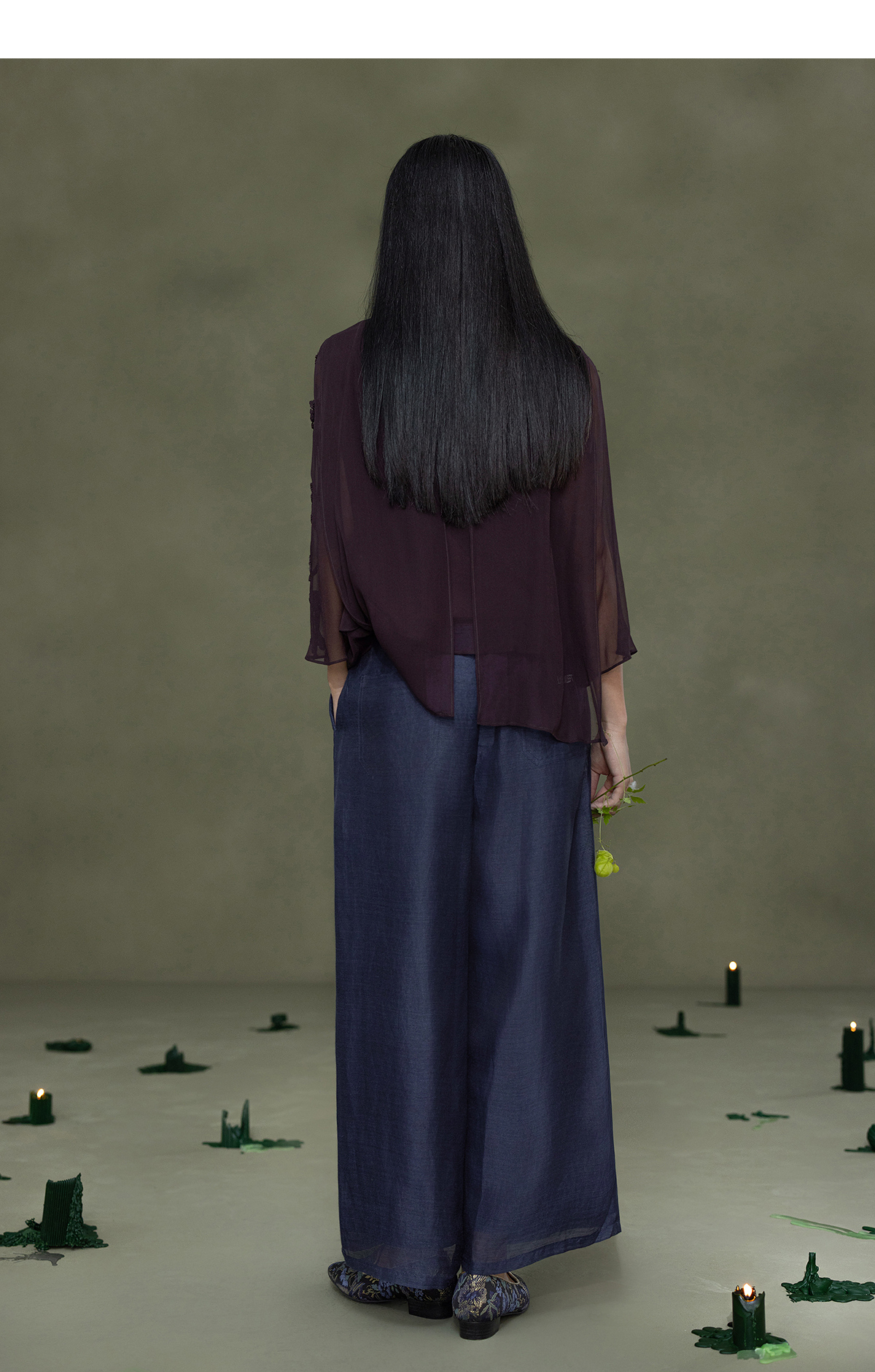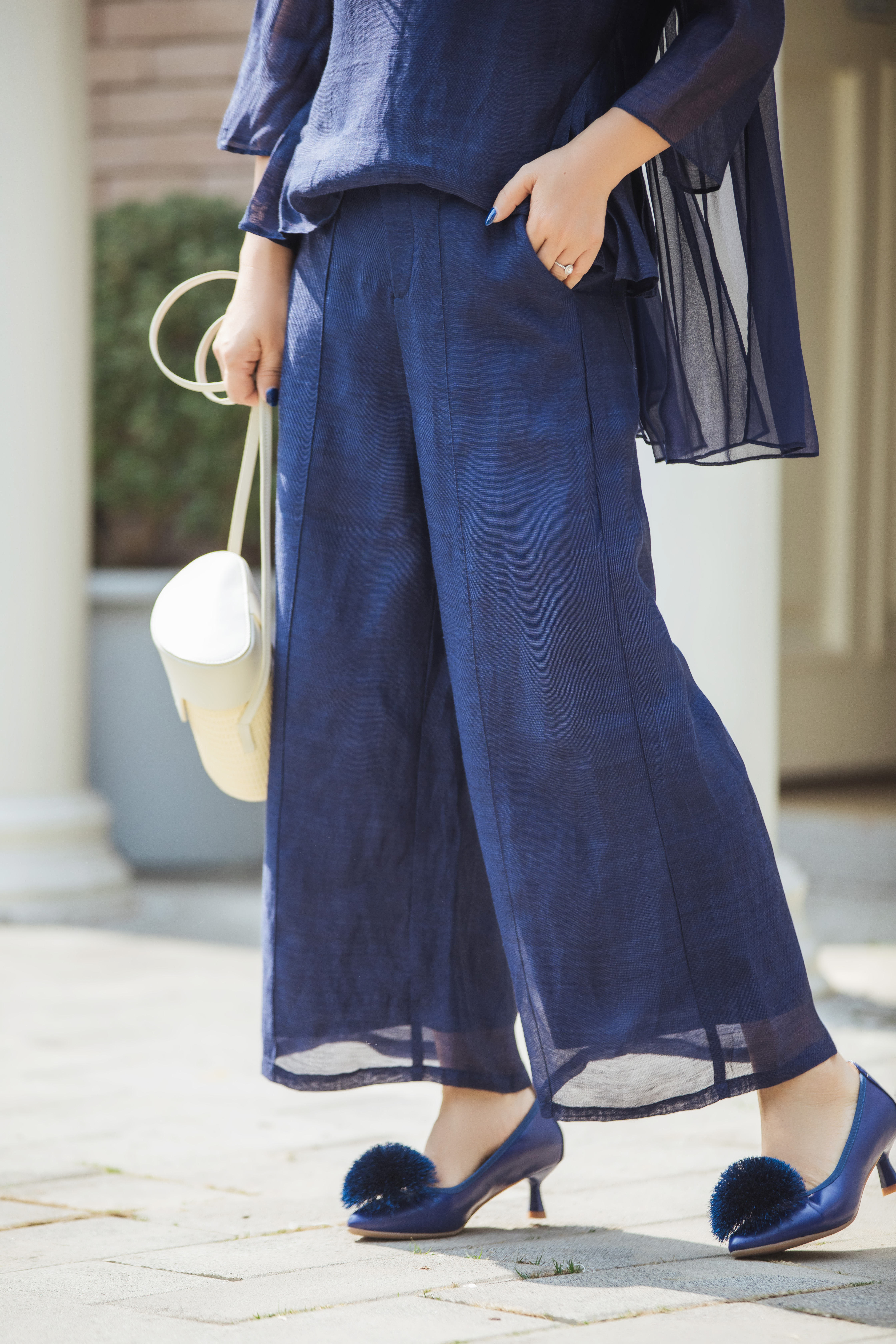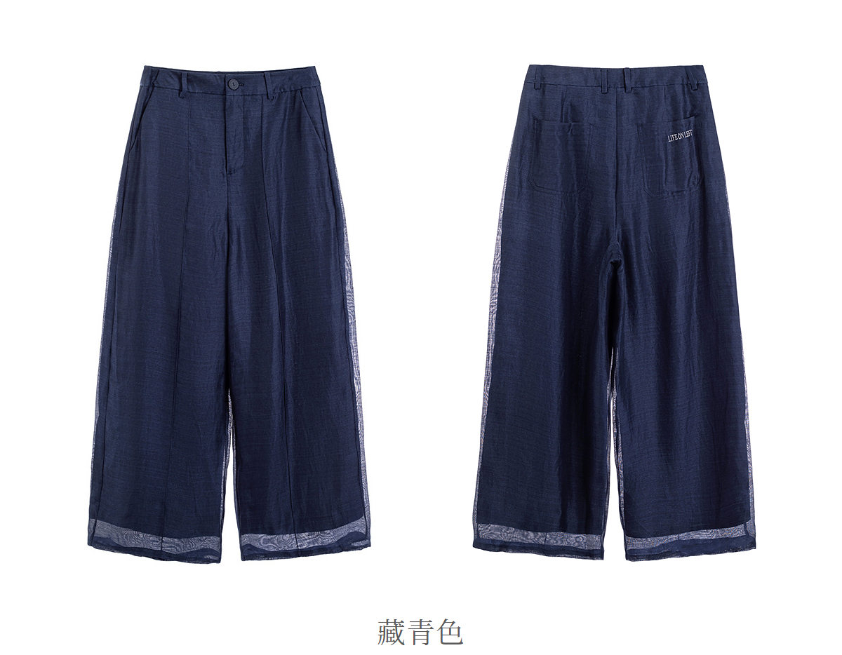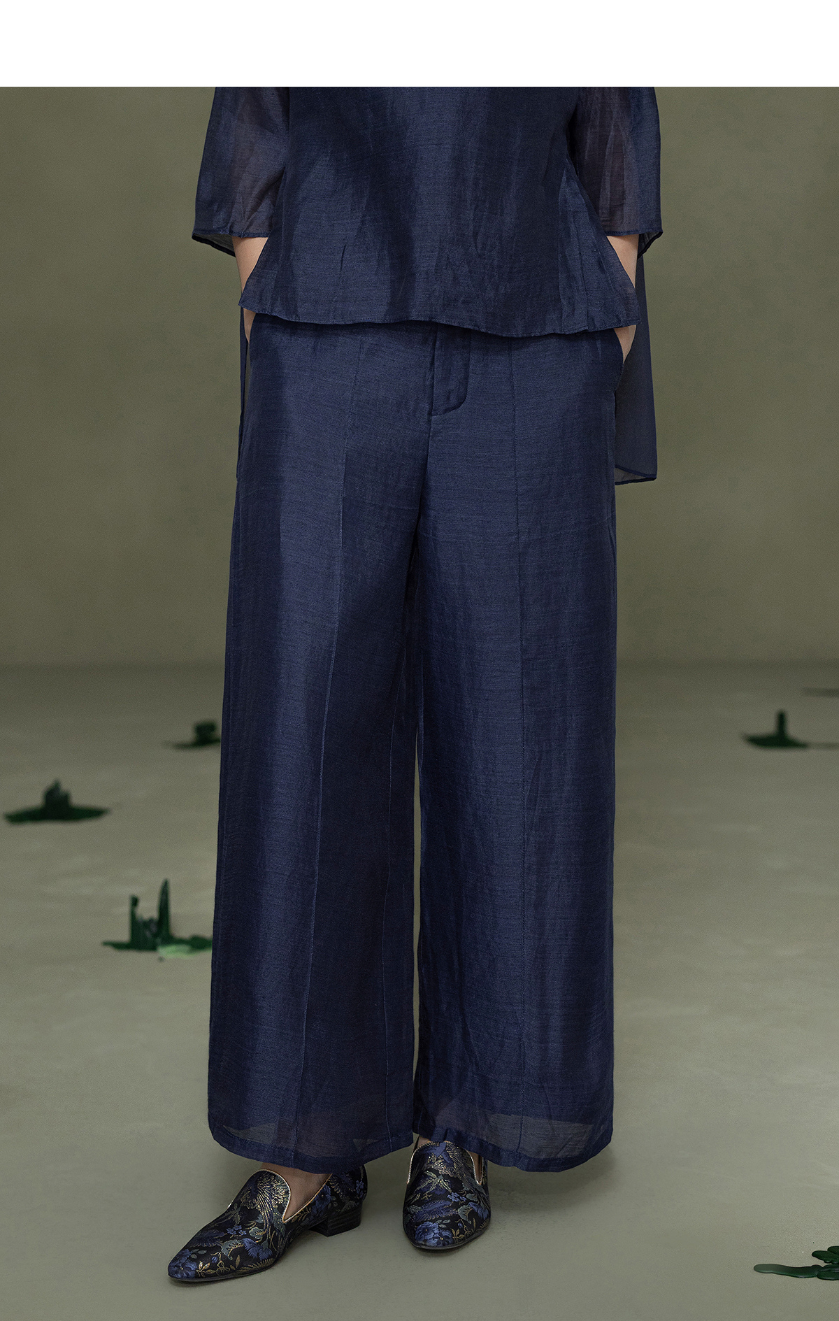 【林栖设计小店】山林抚风|藏青色丝麻绣花宽松百搭2026春新款阔腿裤子1961098