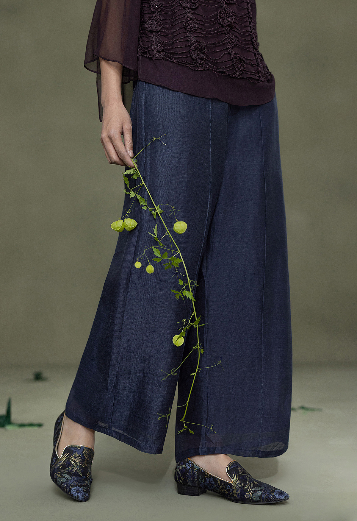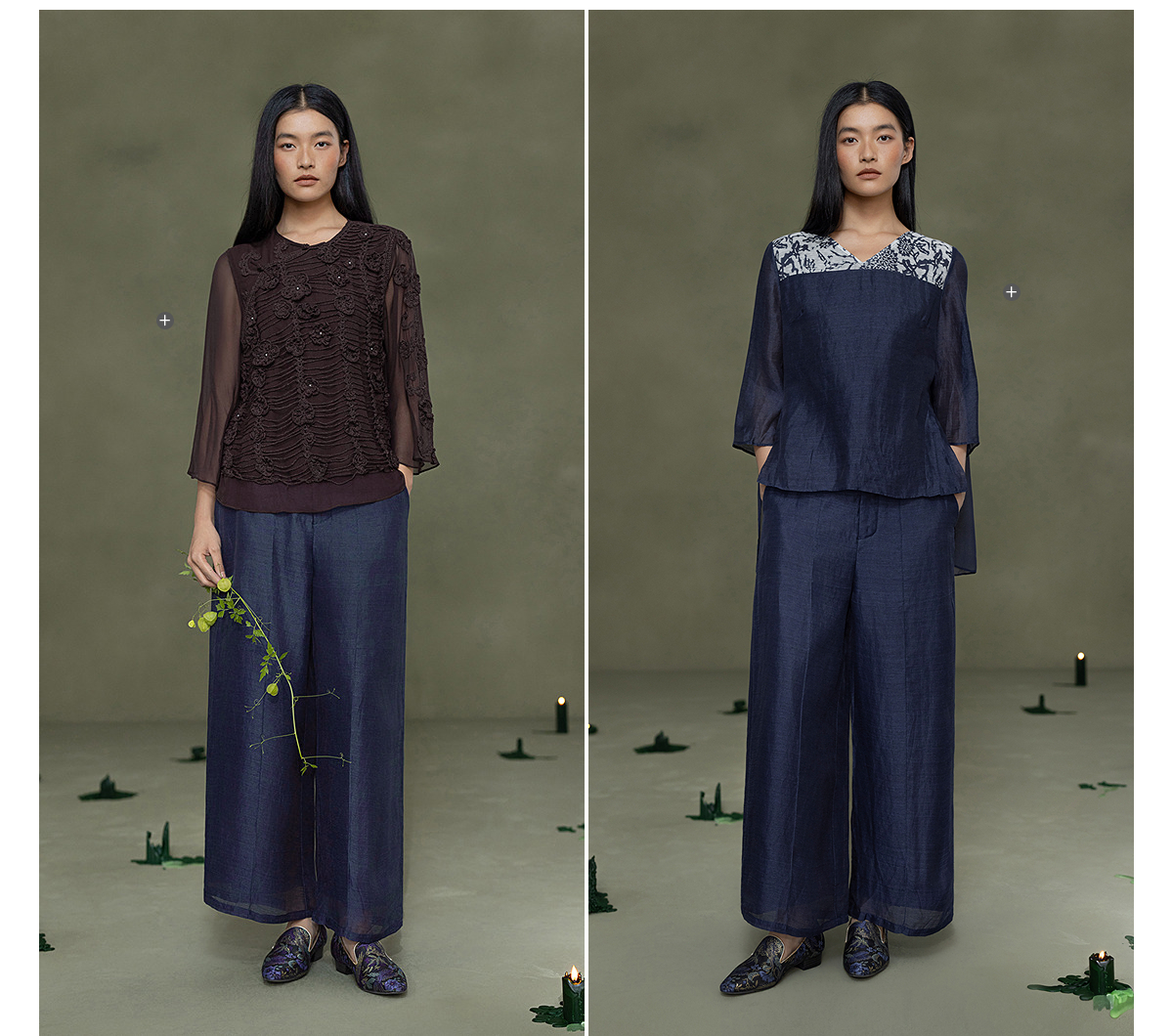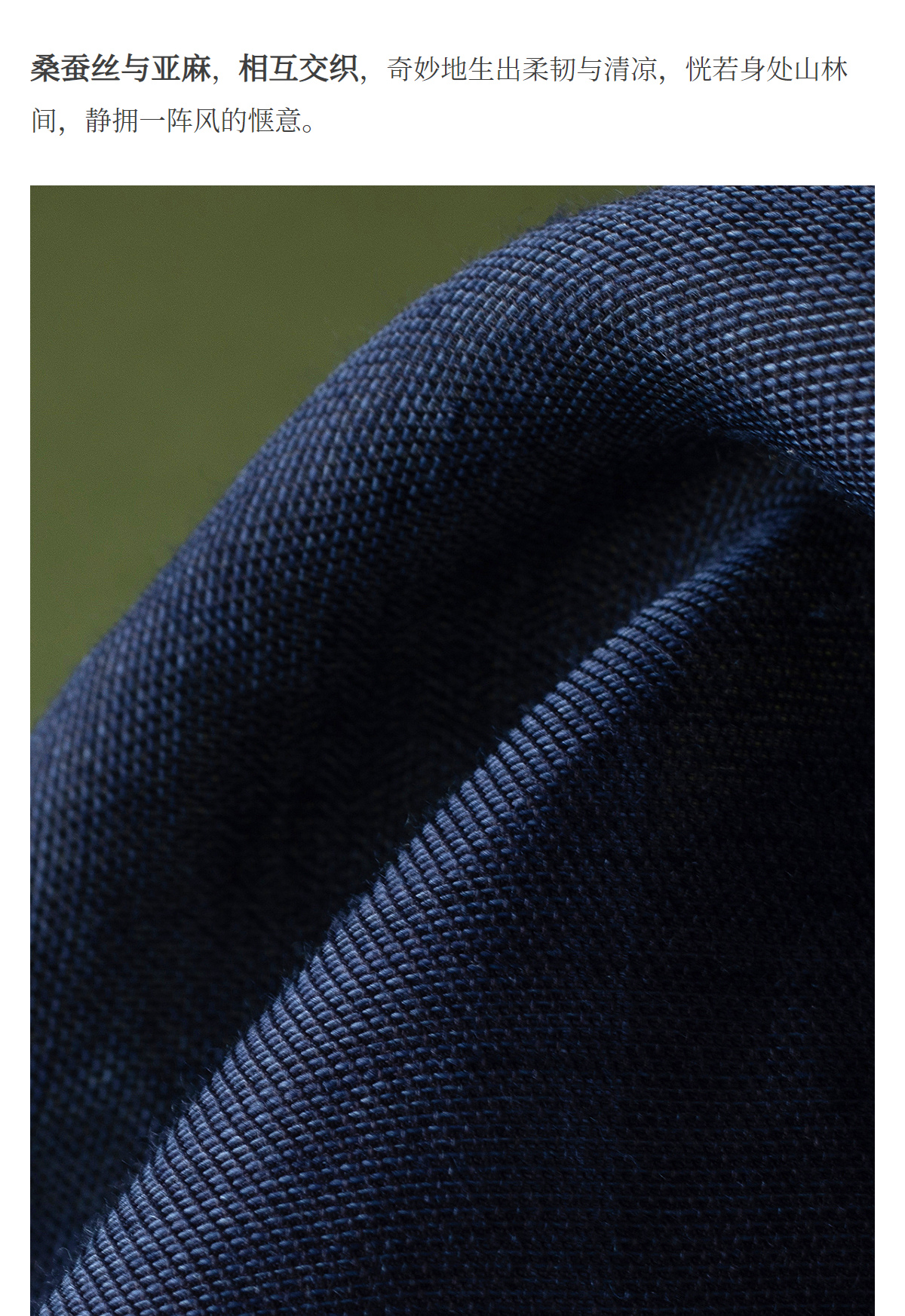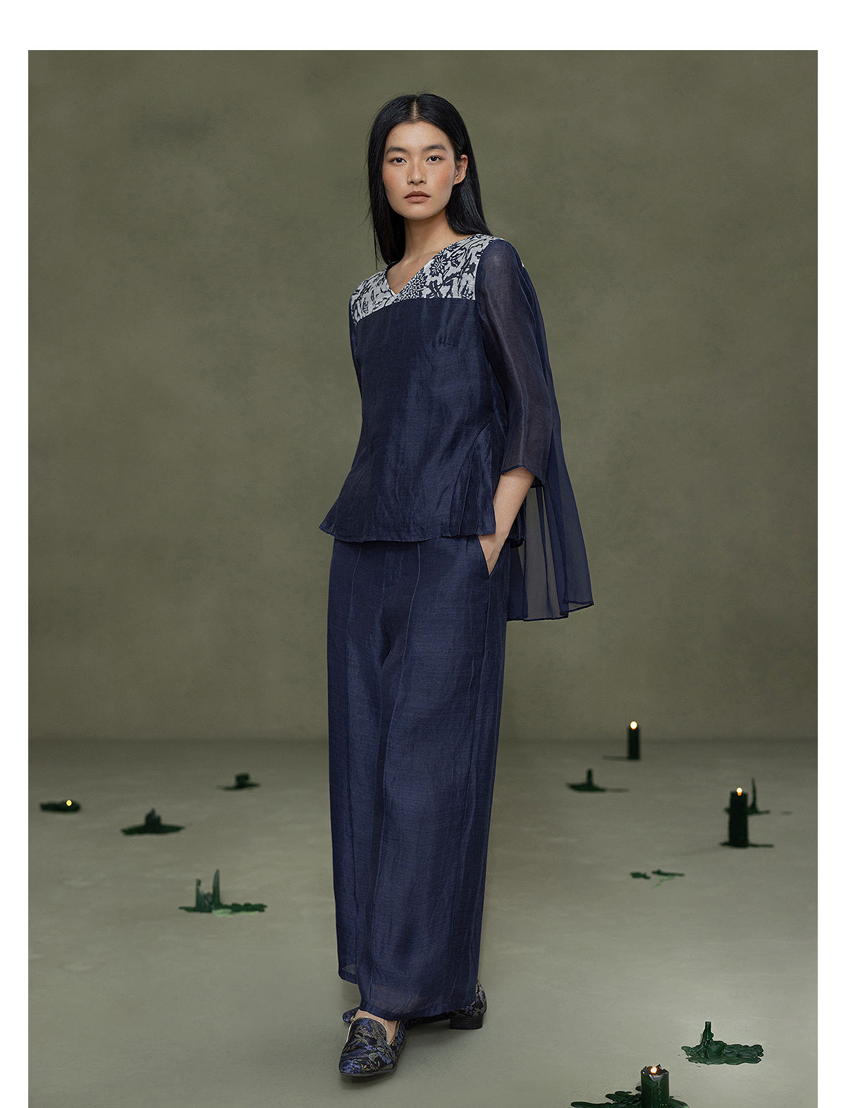 【林栖设计小店】山林抚风|藏青色丝麻绣花宽松百搭2026春新款阔腿裤子1961098