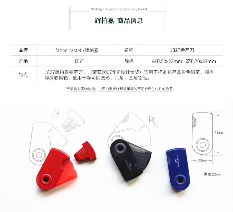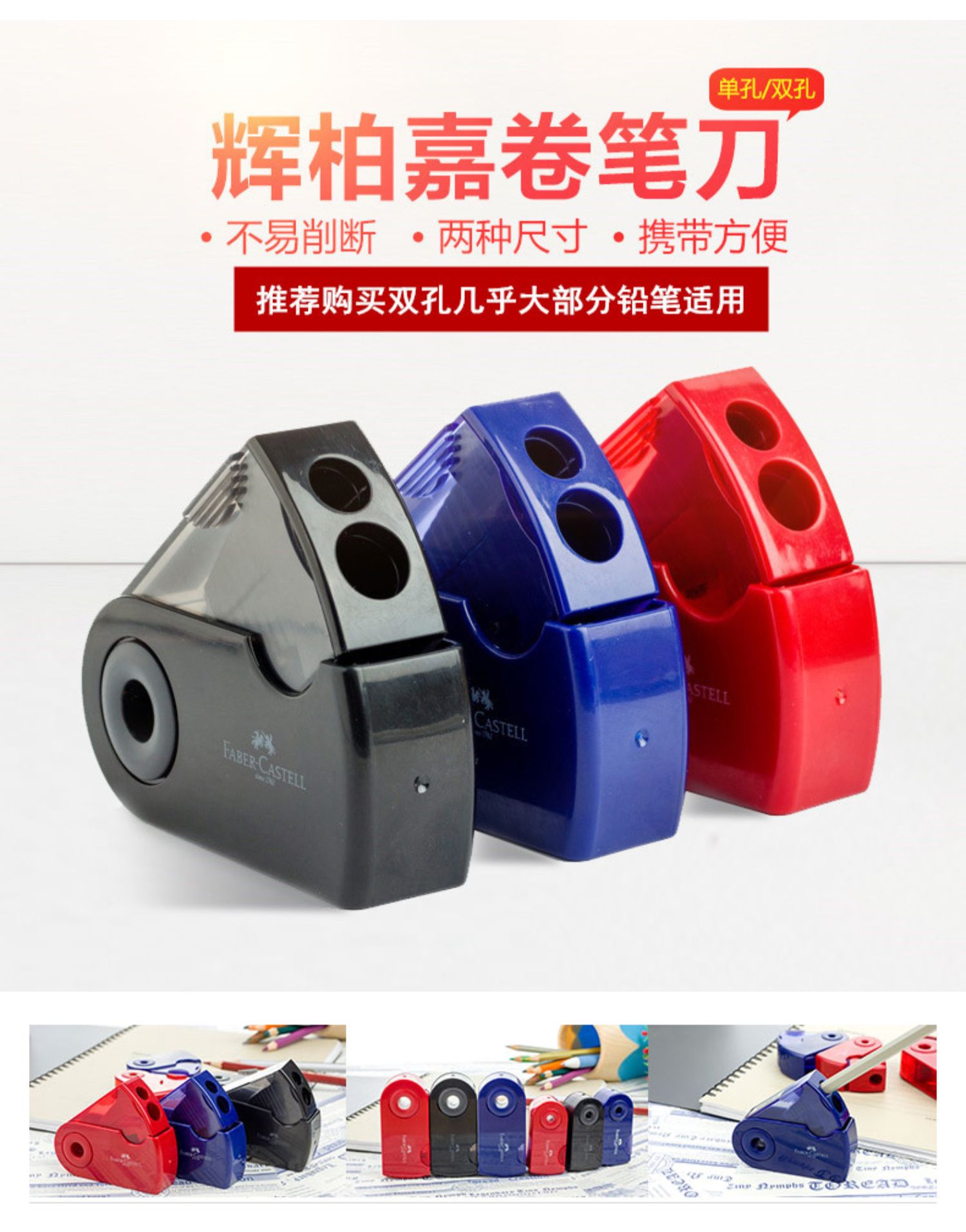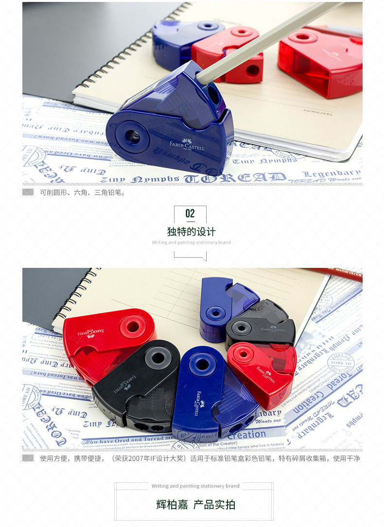 德国辉柏嘉卷笔刀手动素描美术生专用速写小学生彩铅炭笔小迷你便携式削笔器铅笔刀耐用转笔刀儿童双孔刨笔刀