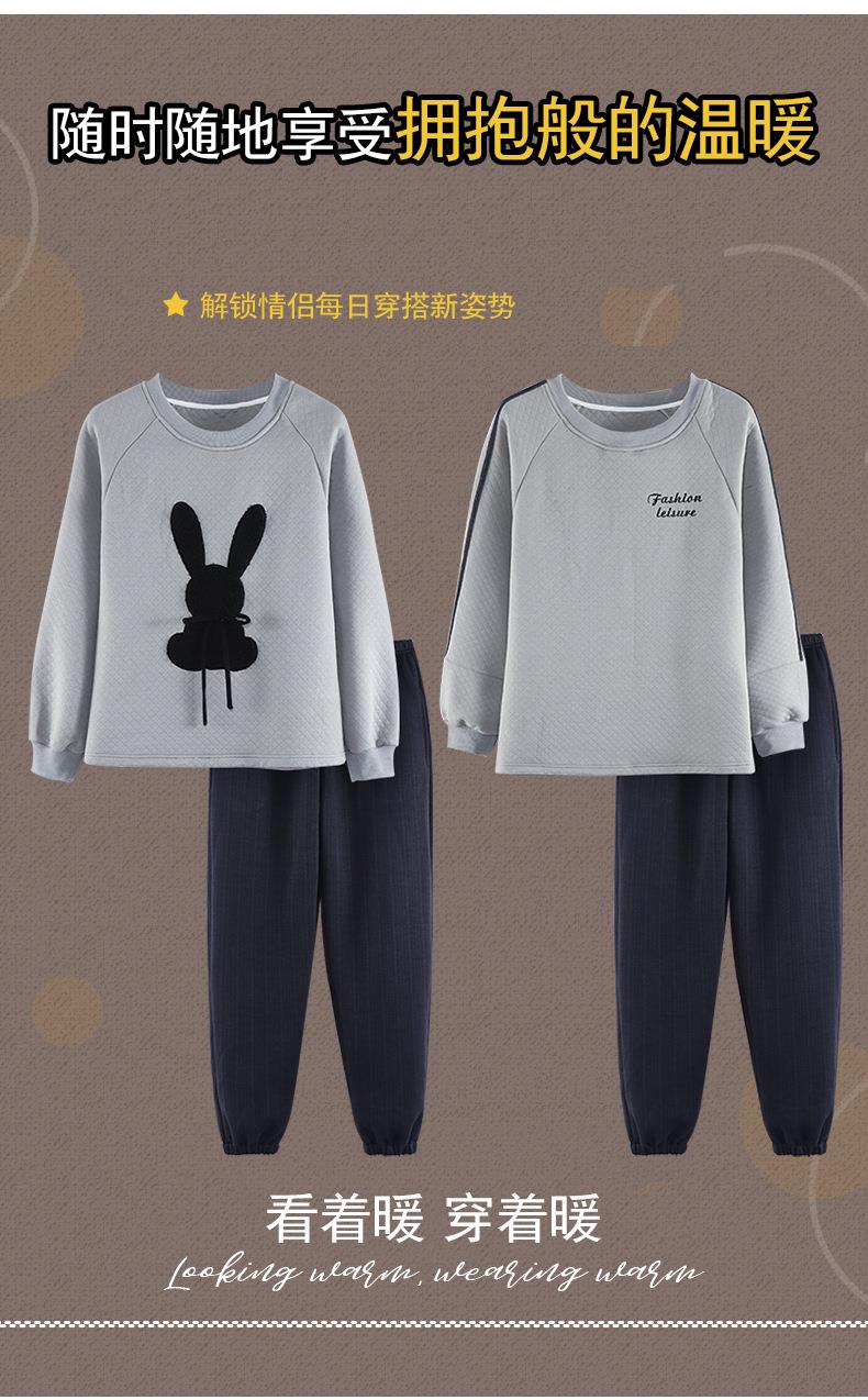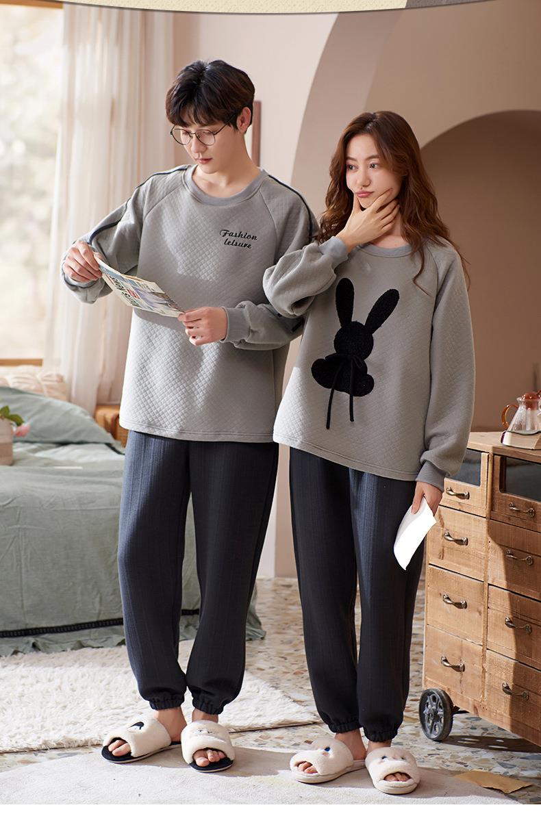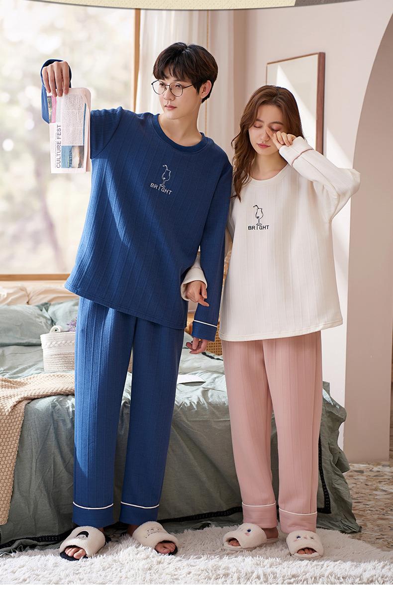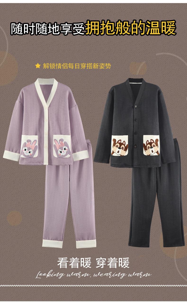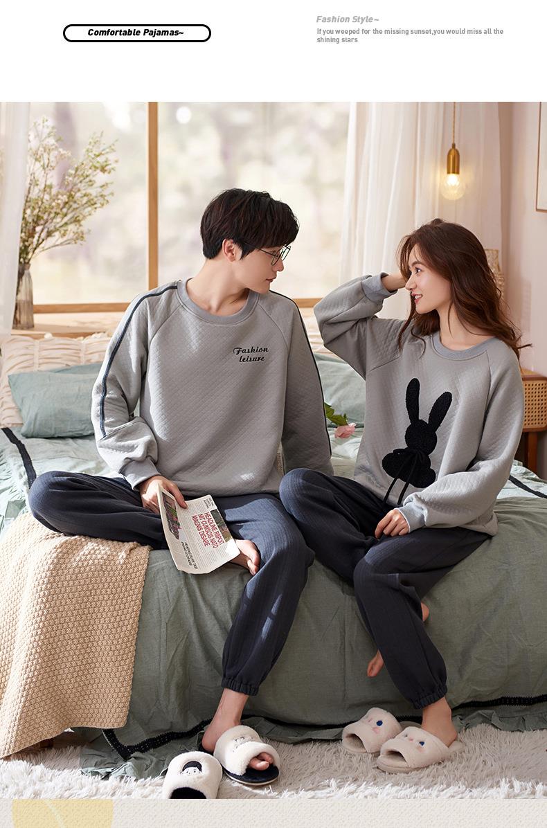 秋冬季情侣睡衣保暖加厚三层夹层空气棉睡衣女家居服套装韩版