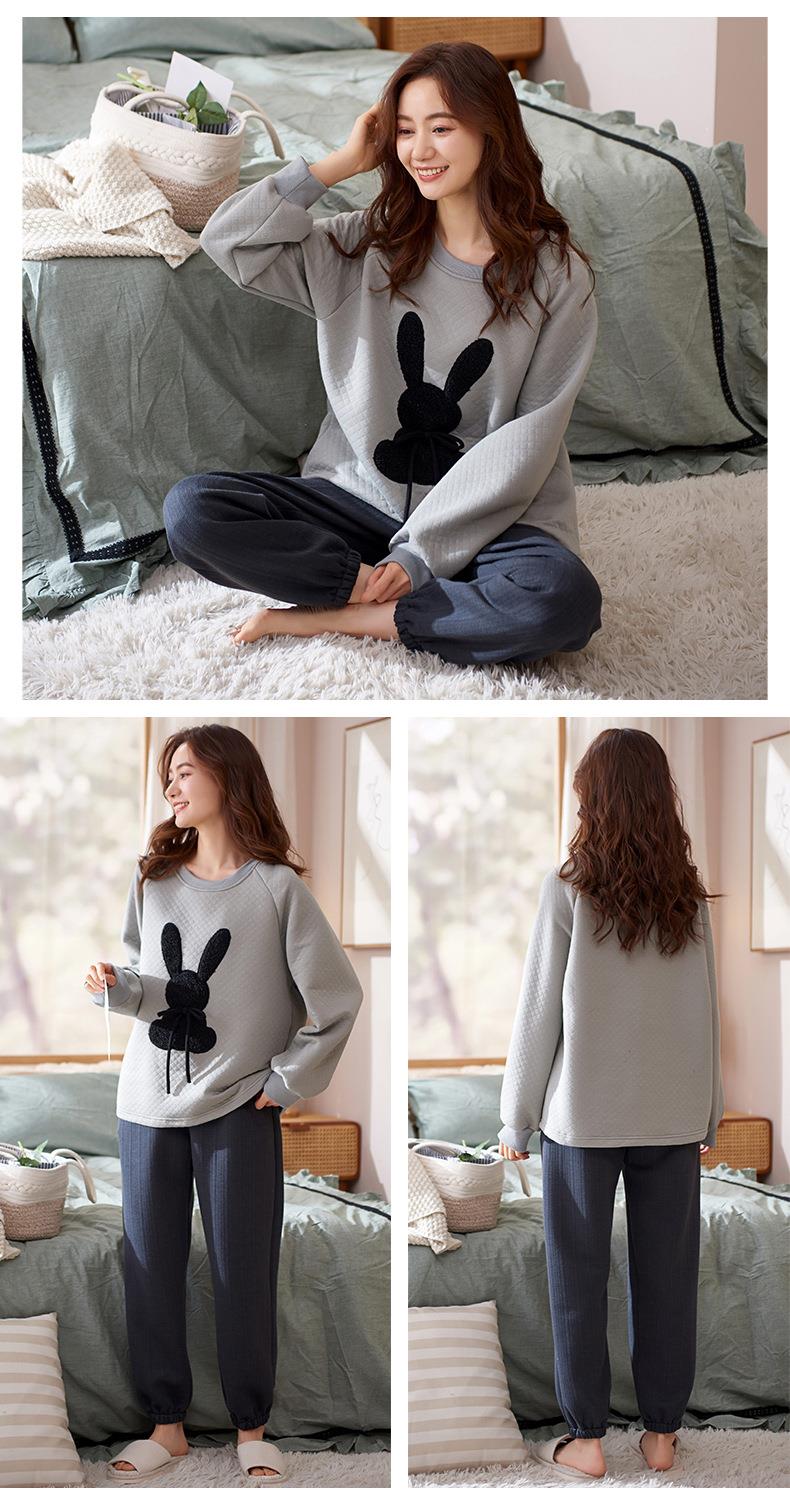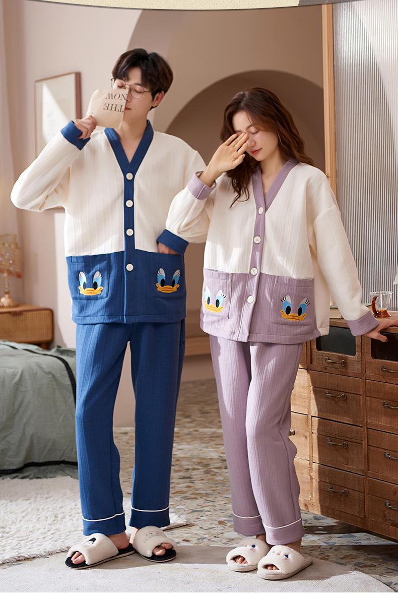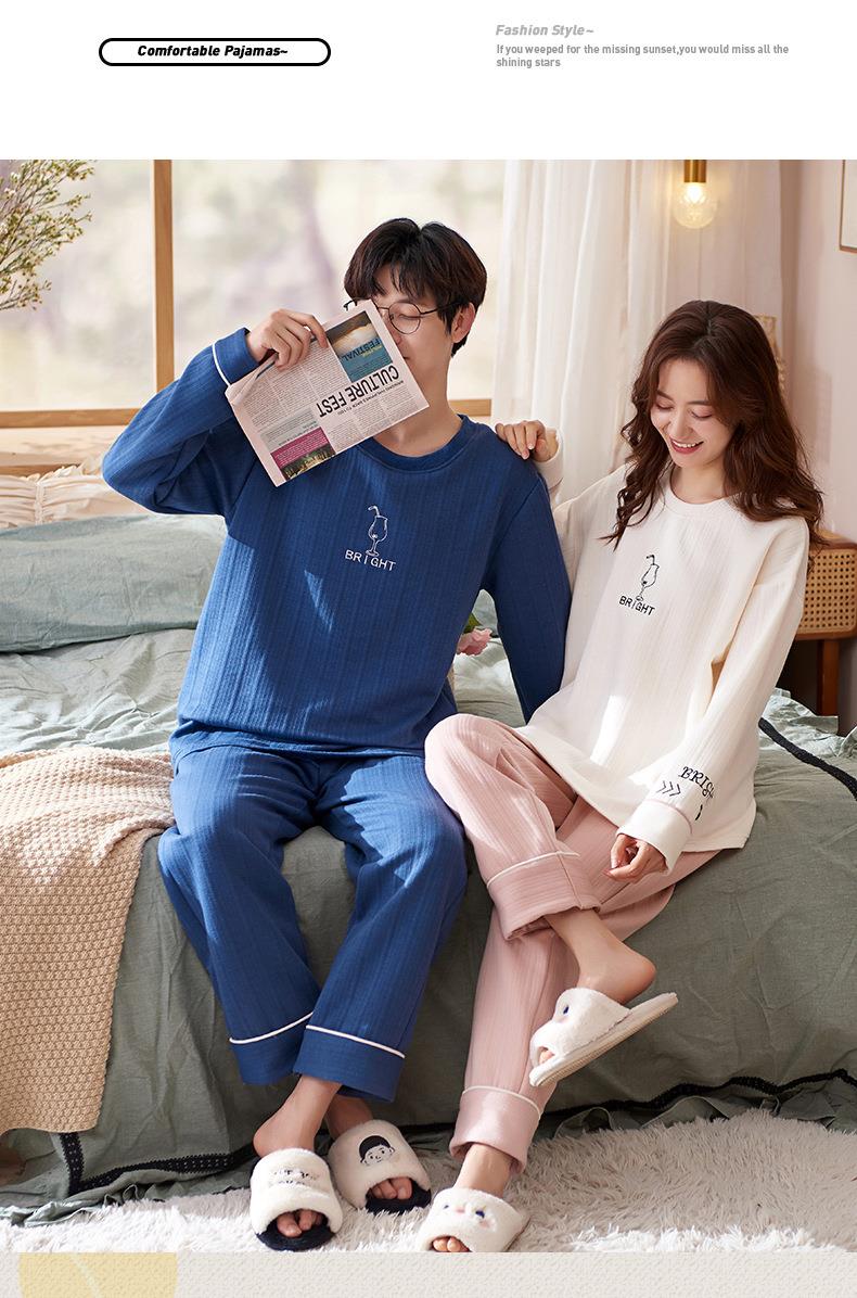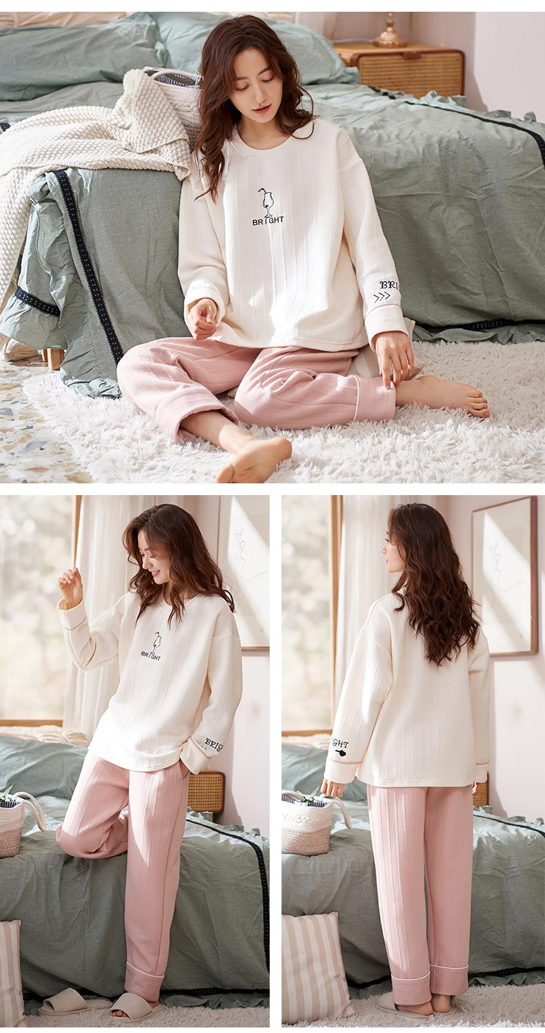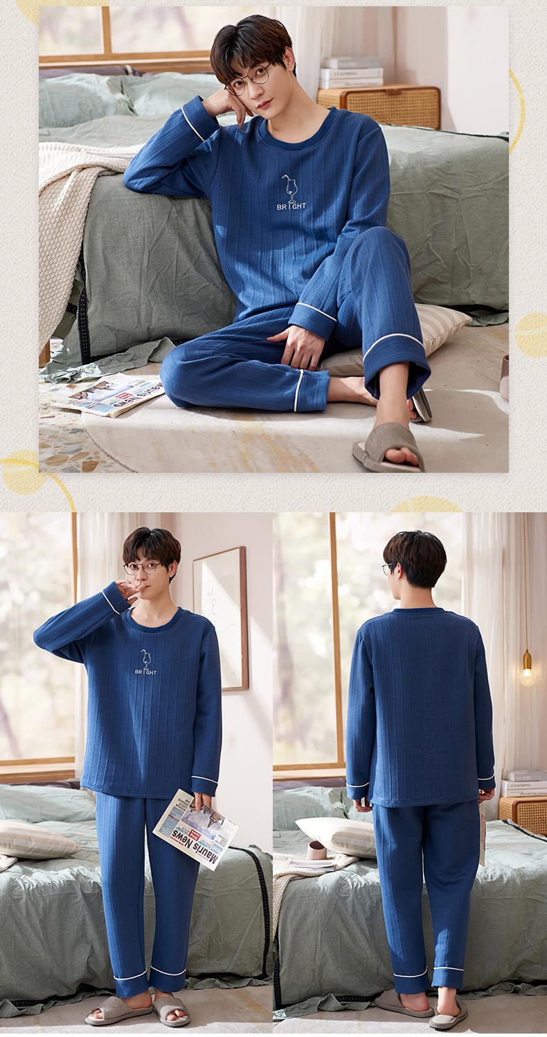 秋冬季情侣睡衣保暖加厚三层夹层空气棉睡衣女家居服套装韩版