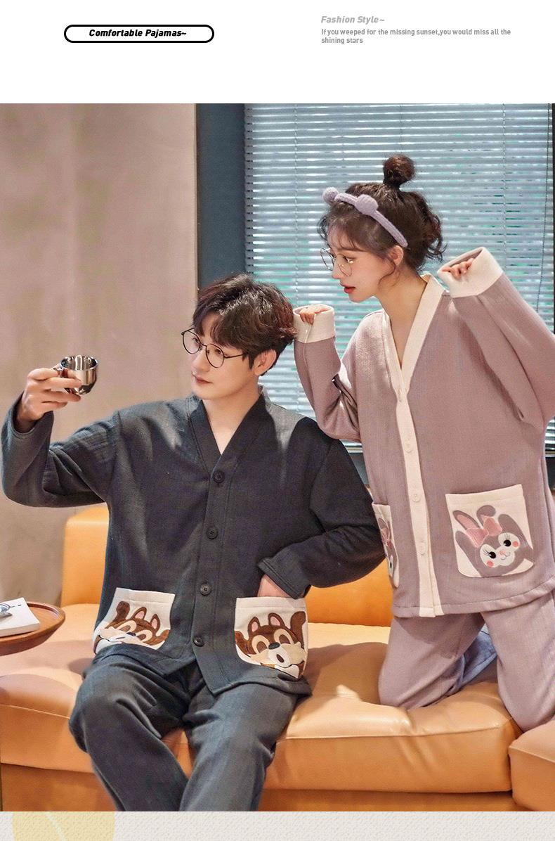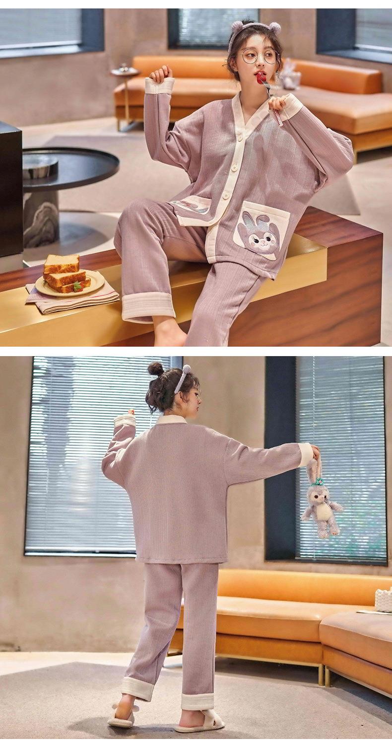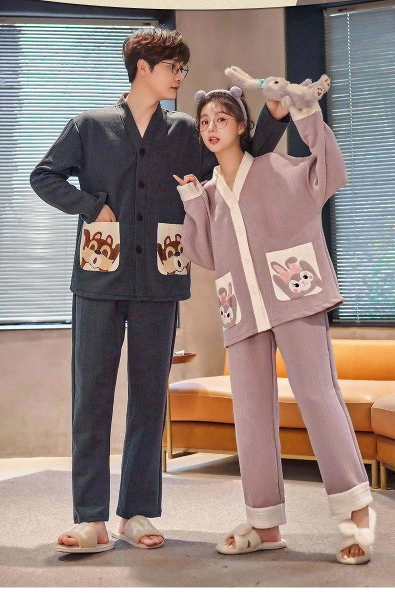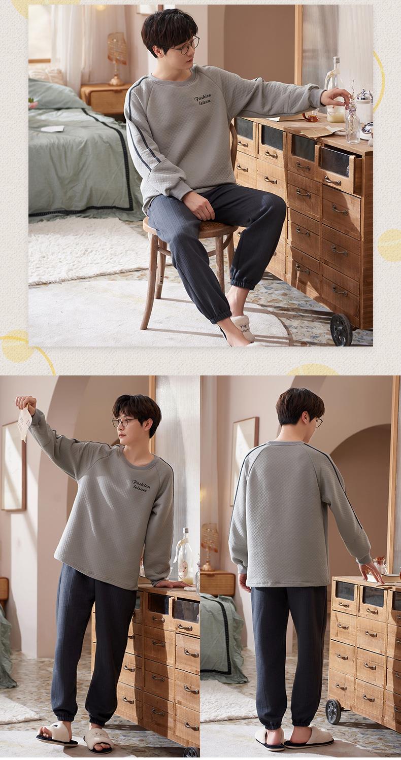 秋冬季情侣睡衣保暖加厚三层夹层空气棉睡衣女家居服套装韩版