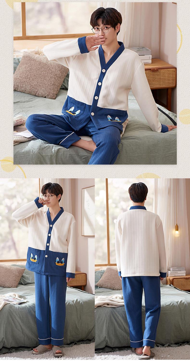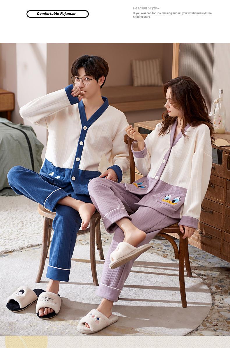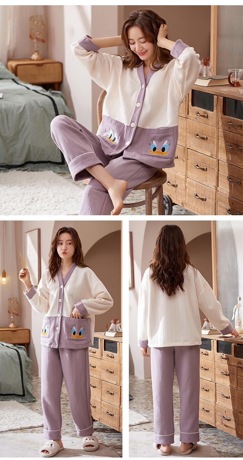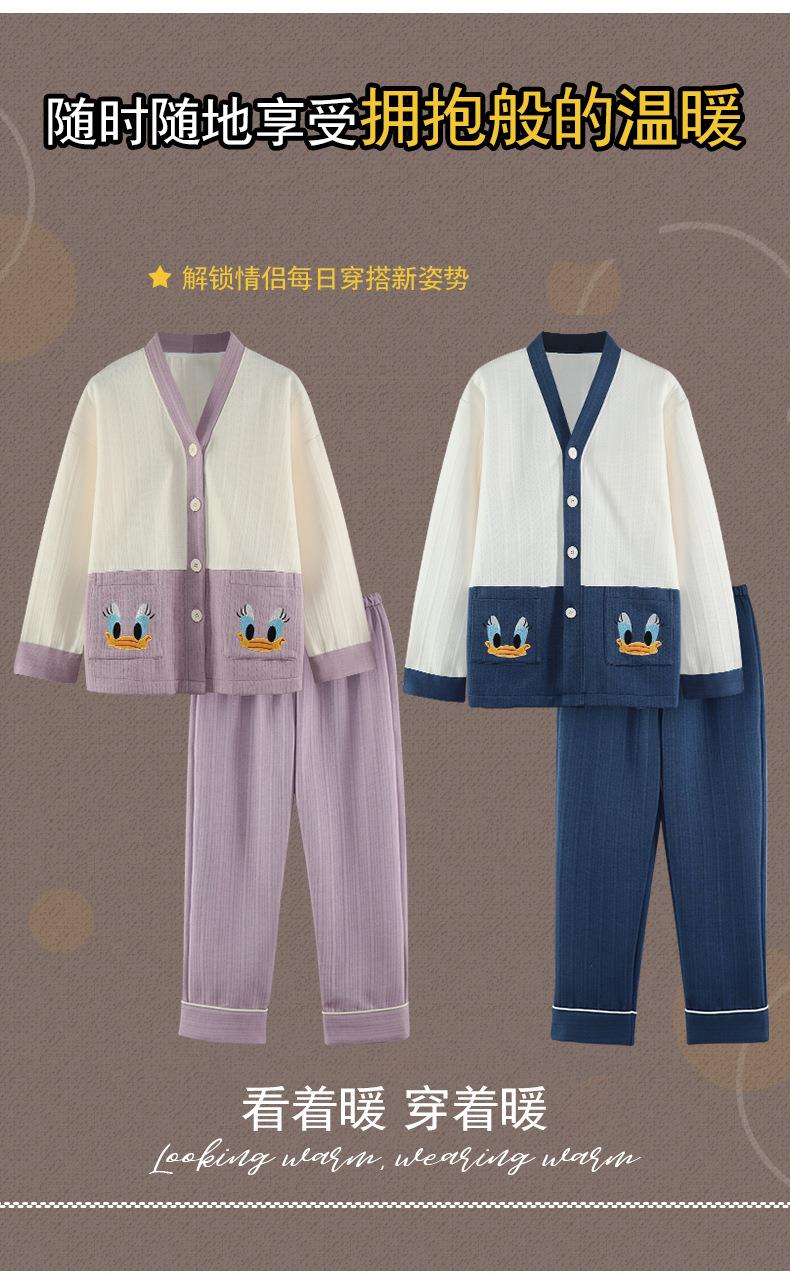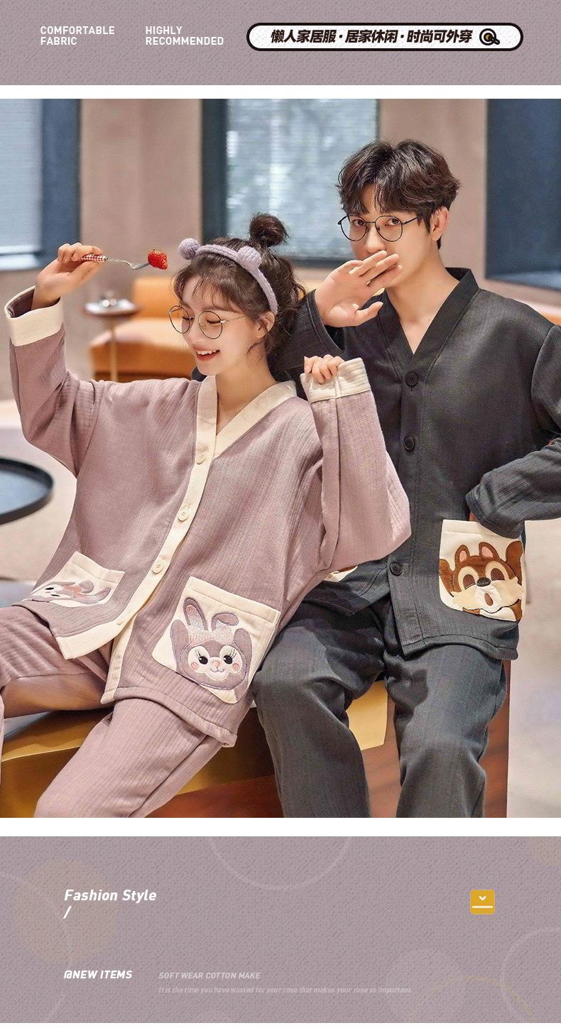 秋冬季情侣睡衣保暖加厚三层夹层空气棉睡衣女家居服套装韩版