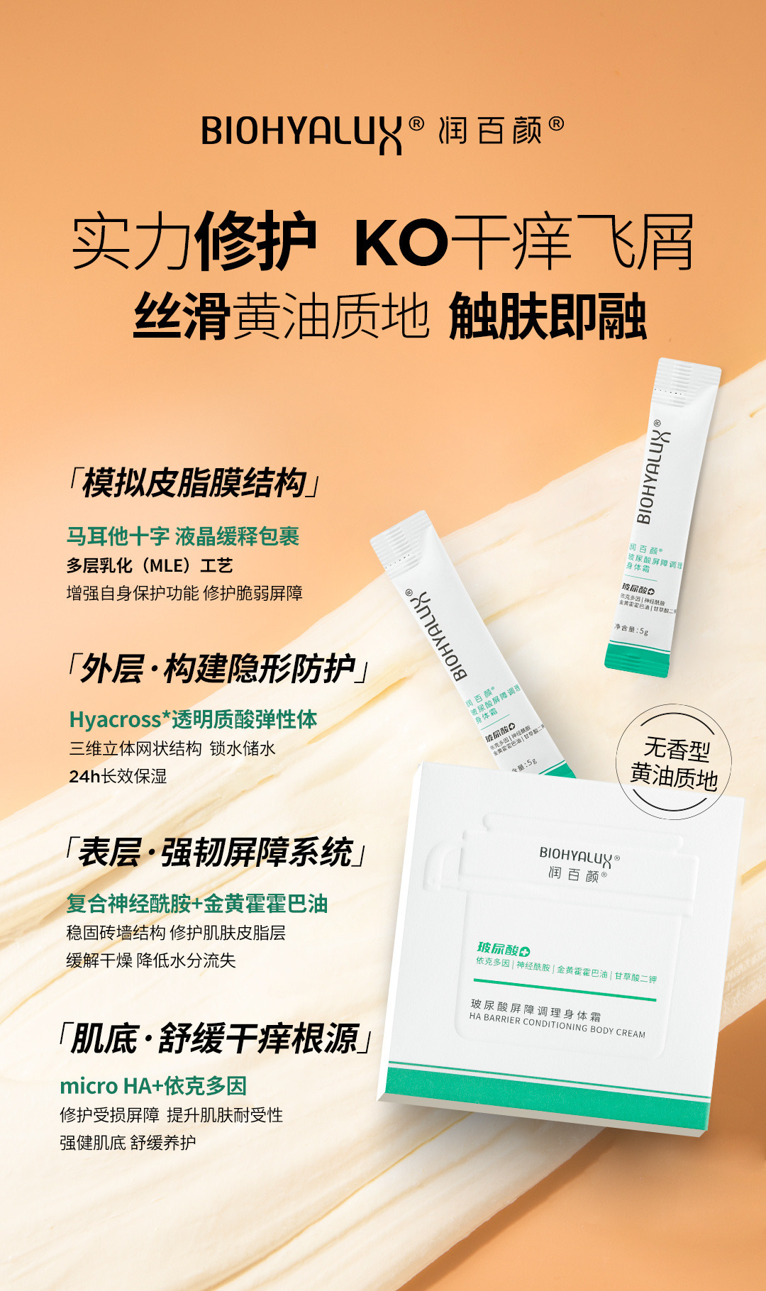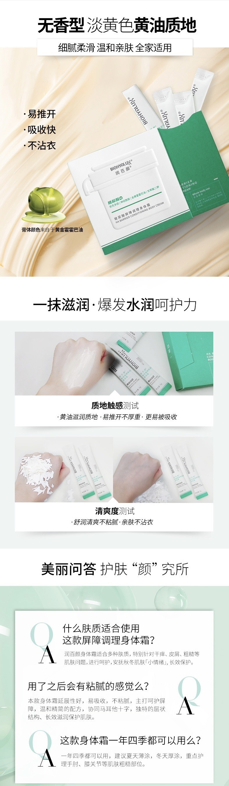 【品名】润百颜玻尿酸屏障调理身体霜