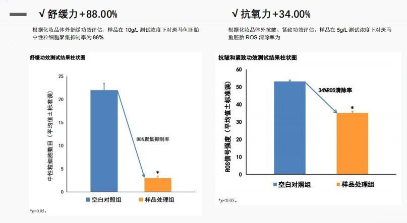 有效清除ROS,修护UV造成的细胞损伤,增进肌肤抵御光老化的能力,保湿抗氧,增进肌肤弹嫩平滑